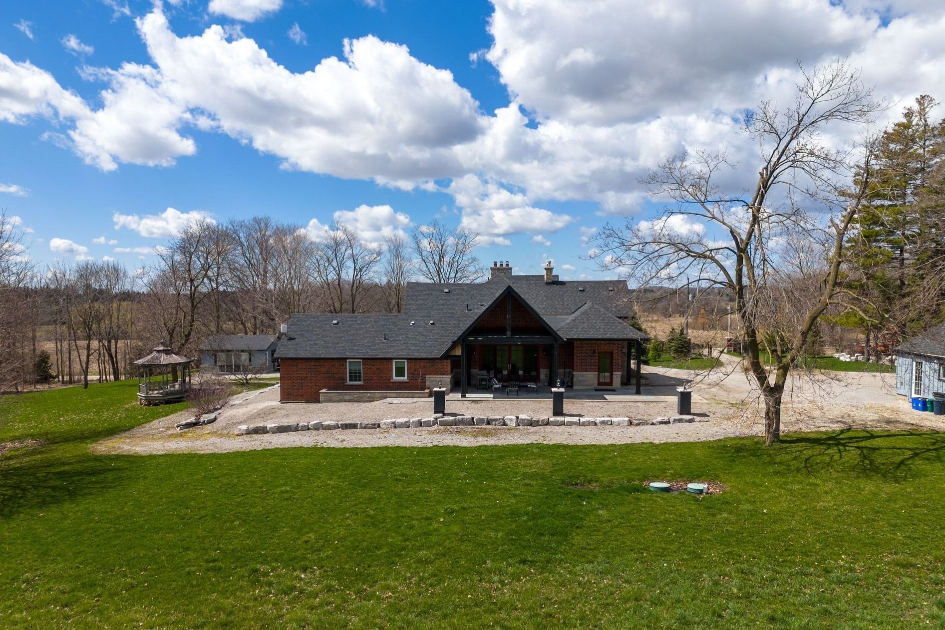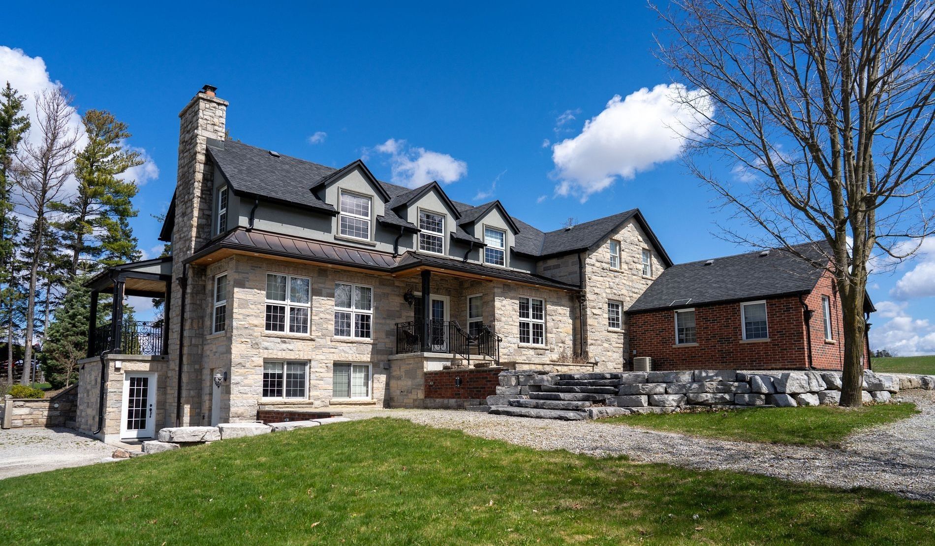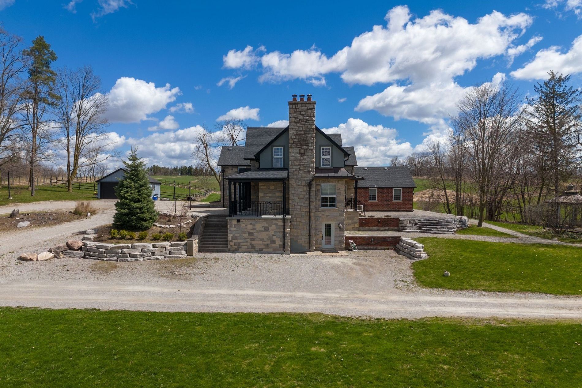 Welcome to 12355 Mill Rd, Kleinburg. A gated 5-acre estate offering privacy, scenic beauty, and refined living. This 4,000+ sq ft of living space of home features 5 bedrooms, 6 bathrooms, and a versatile layout ideal for multi-generational families. Separate guest house provides added flexibility for extended living or guests. Enjoy sunrise and sunset views from covered porches overlooking the grounds. Unique design elements and timeless character throughout. Fully finished top-to-bottom with a self-contained lower level.Rare opportunity with futuredevelopment potential (see attached; inquire with listing agent).