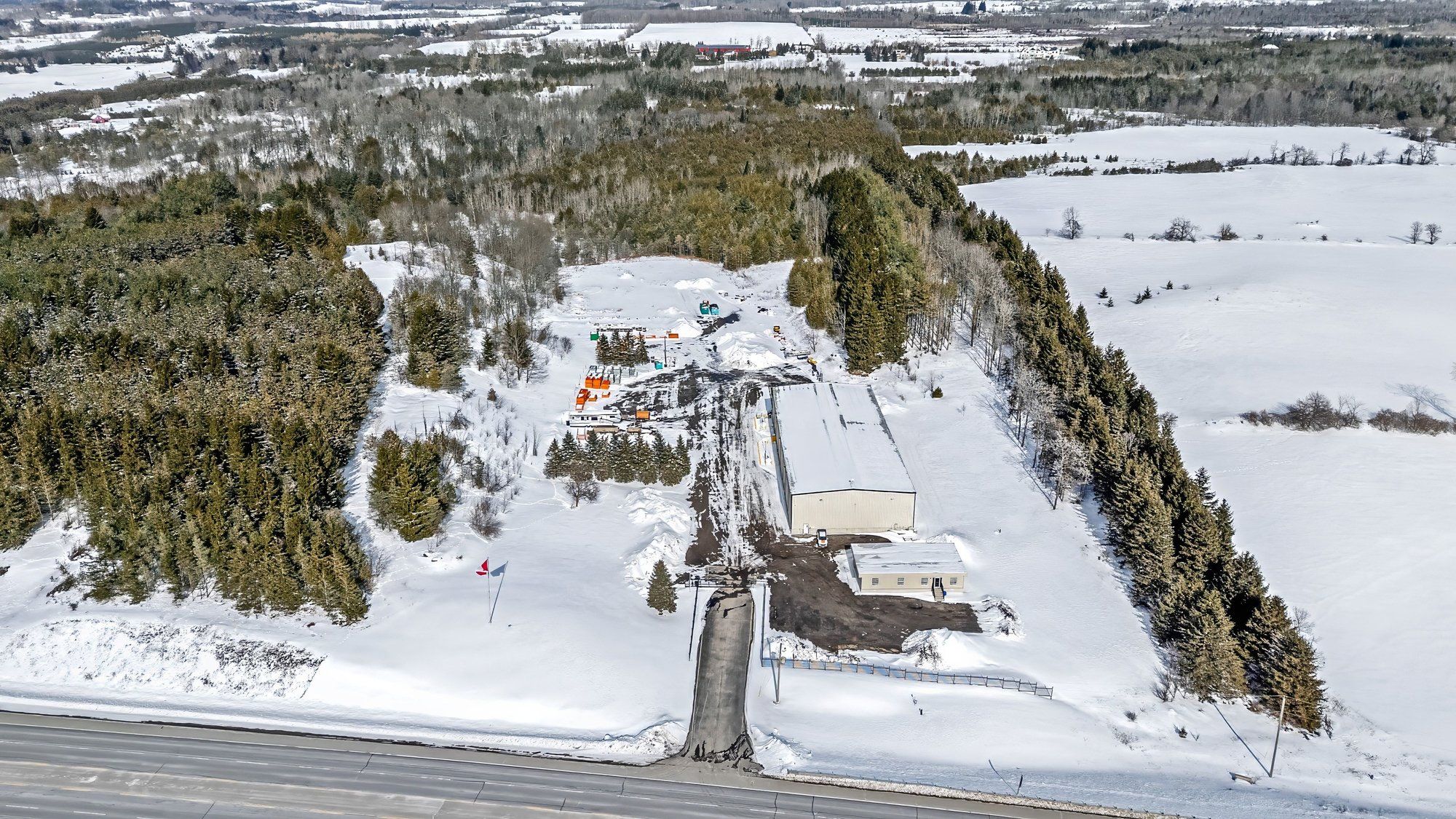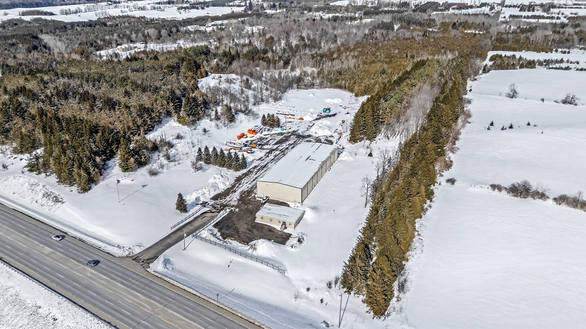 Prime 15-Acre Agricultural-Commercial/Industrial Opportunity. Strategically positioned along the Highway 10 corridor in Caledon, this 15-acre secured property features a 16,000 SF industrial building with approximately 7.5 acres of level table land with a significant area of gravel-based yard ideally suited for agricultural equipment storage, agri-tourism, nursery, and more! Zoned A2-595, permitted uses include a broad range of agriculture-related commercial and industrial uses, including: Agriculture-related Commercial Use, Agriculture-related Industrial Use, Cannabis or Industrial Hemp Use, Nursery and Horticultural Operations, Farm Equipment Storage Building, Produce Storage Building, On-Farm Diversified Use, Farm-based Alcohol Production Facility, Accessory Open Storage Area, Farm, Detached Dwelling, Additional Residential Unit. The expansive gravel yard and existing industrial building and office space provide flexibility for agricultural processing and distribution operations, agricultural soil amendment blending and distribution, cannabis or hemp production, horticultural production, and other permitted rural commercial and industrial uses. This site offers direct regional access and substantial yard capacity for a wide range of permitted uses.