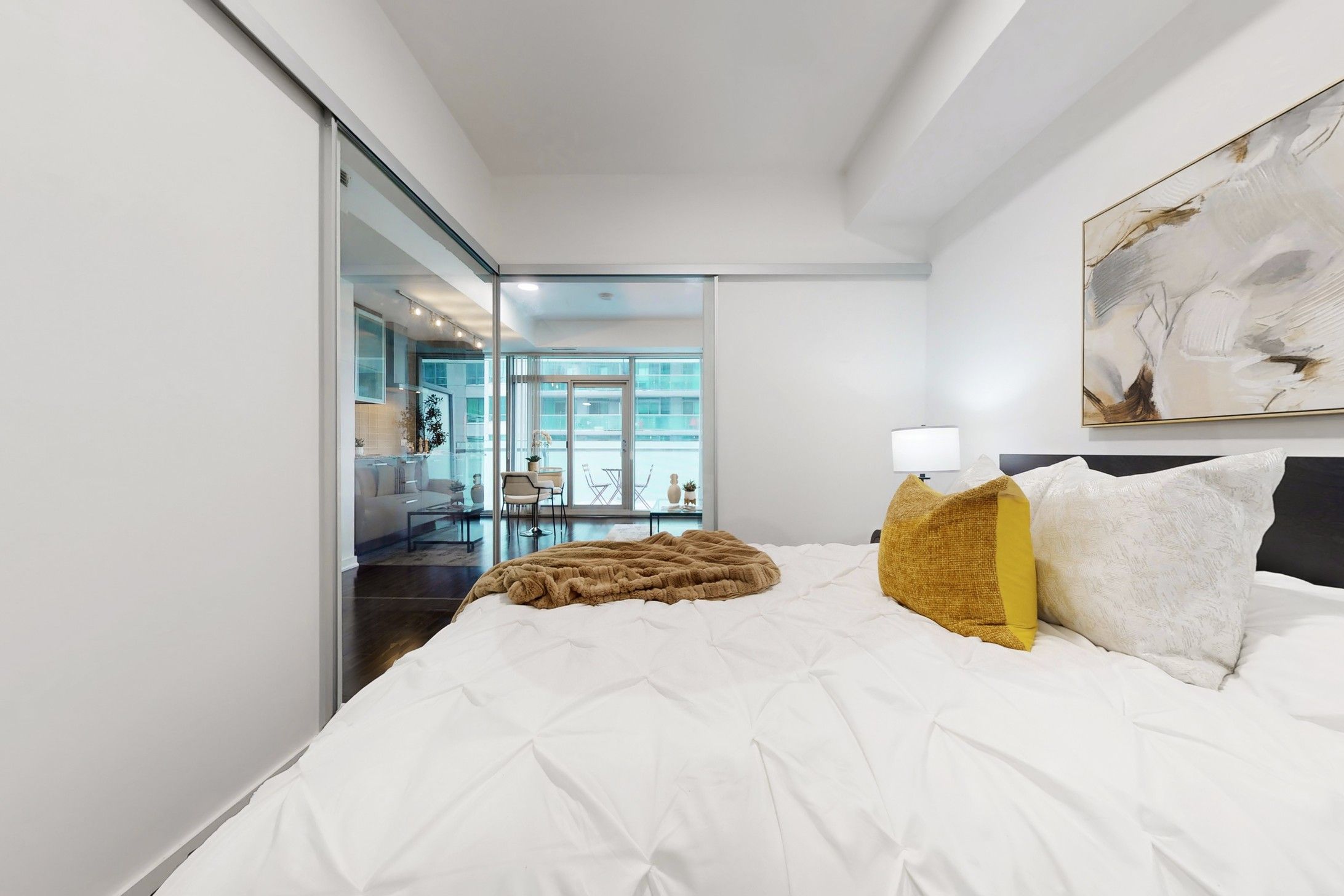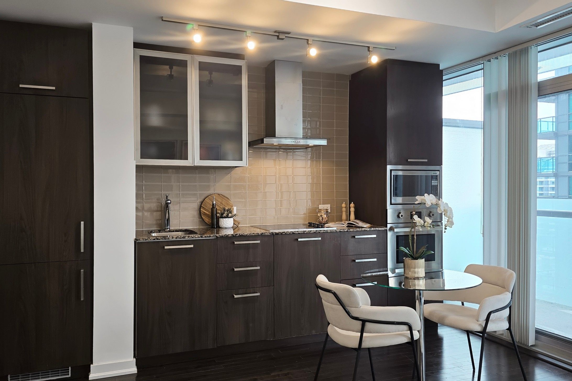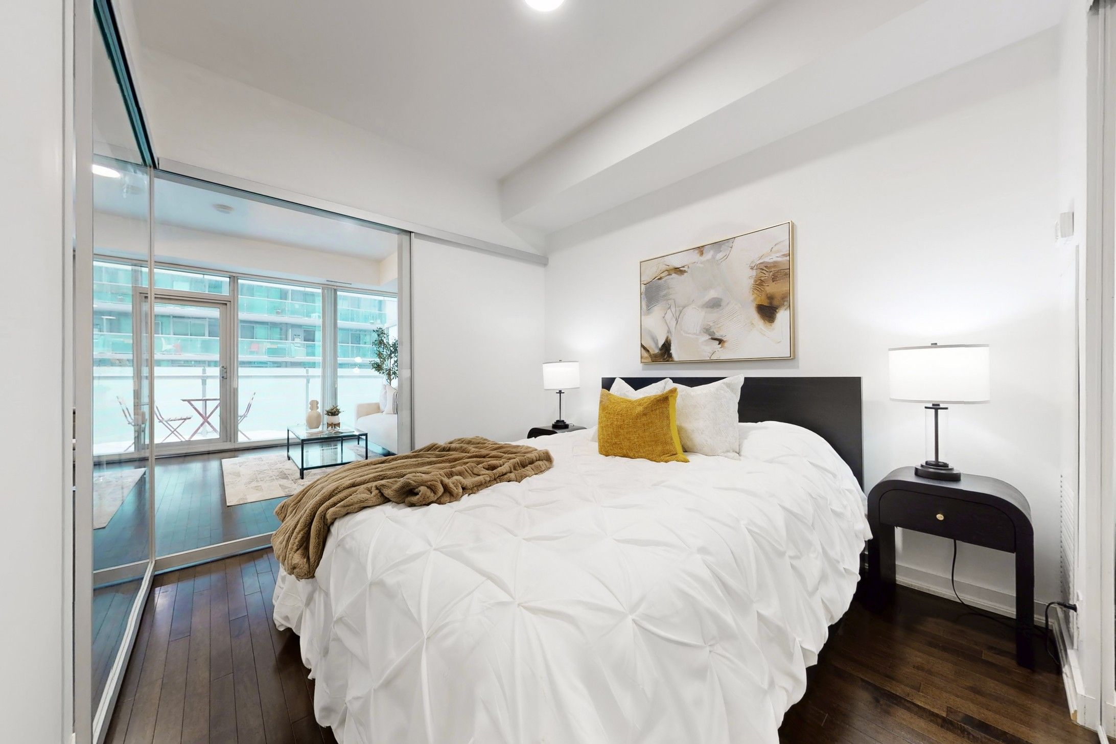 Welcome to your bright and stylish 1+ Den home in one of Toronto's most sought-after downtown towers! This impeccably kept suite features sleek hardwood floors throughout-absolutely no carpet-and a modern kitchen with high-gloss cabinetry, stainless steel appliances, and a contemporary backsplash. The open-concept layout flows seamlessly to a spacious southwest-facing balcony offering beautiful city and partial lake views, perfect for enjoying sun-filled afternoons and evening sunsets. Freshly painted, and move-in ready! This bright 1-bedroom + den condo (532 sqft) features a dedicated office/study, perfect for working from home or flexible living. Thoughtfully upgraded with four new light fixtures, Newer Hardwood Flooring in bedroom, the unit feels open, modern, and inviting. Enjoy a turnkey downtown lifestyle with gleaming floors, clean finishes, and a professionally cleaned space ready for you to move in. Includes one locker for extra storage - parking not included. Prime location at 12 York St, steps to transit, restaurants, shops, and the waterfront, making this a perfect opportunity for first-time buyers, professionals, or investors looking for a functional and stylish downtown home. Super Clean unit!!!