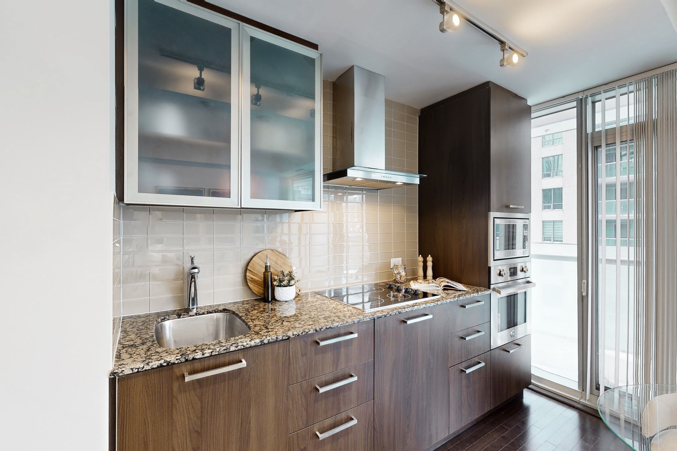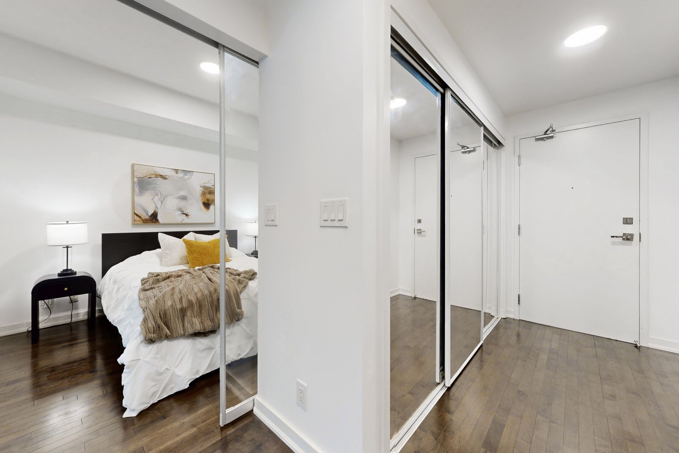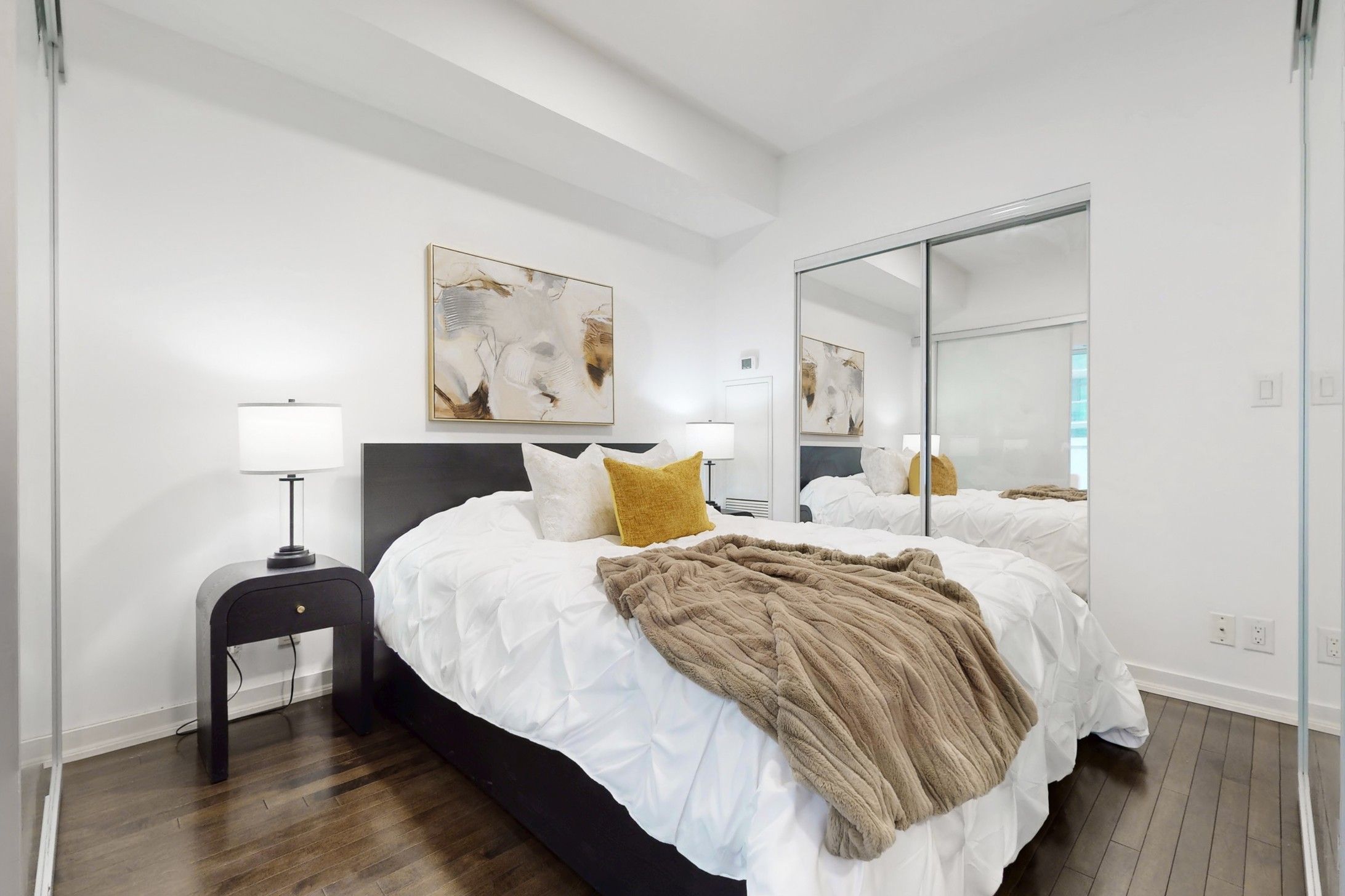 Welcome to your bright and stylish 1+ Den home in one of Toronto's most sought-after downtown towers! This impeccably kept suite features sleek hardwood floors throughout-absolutely no carpet-and a modern kitchen with high-gloss cabinetry, stainless steel appliances, and a contemporary backsplash. The open-concept layout flows seamlessly to a spacious southwest-facing balcony offering beautiful city and partial lake views, perfect for enjoying sun-filled afternoons and evening sunsets. Freshly painted, and move-in ready! This bright 1-bedroom + den condo (532 sqft) features a dedicated office/study, perfect for working from home or flexible living. Thoughtfully upgraded with four new light fixtures, Newer Hardwood Flooring in bedroom, the unit feels open, modern, and inviting. Enjoy a turnkey downtown lifestyle with gleaming floors, clean finishes, and a professionally cleaned space ready for you to move in. Includes one locker for extra storage - parking not included. Prime location at 12 York St, steps to transit, restaurants, shops, and the waterfront, making this a perfect opportunity for first-time buyers, professionals, or investors looking for a functional and stylish downtown home. Super Clean unit!!!
