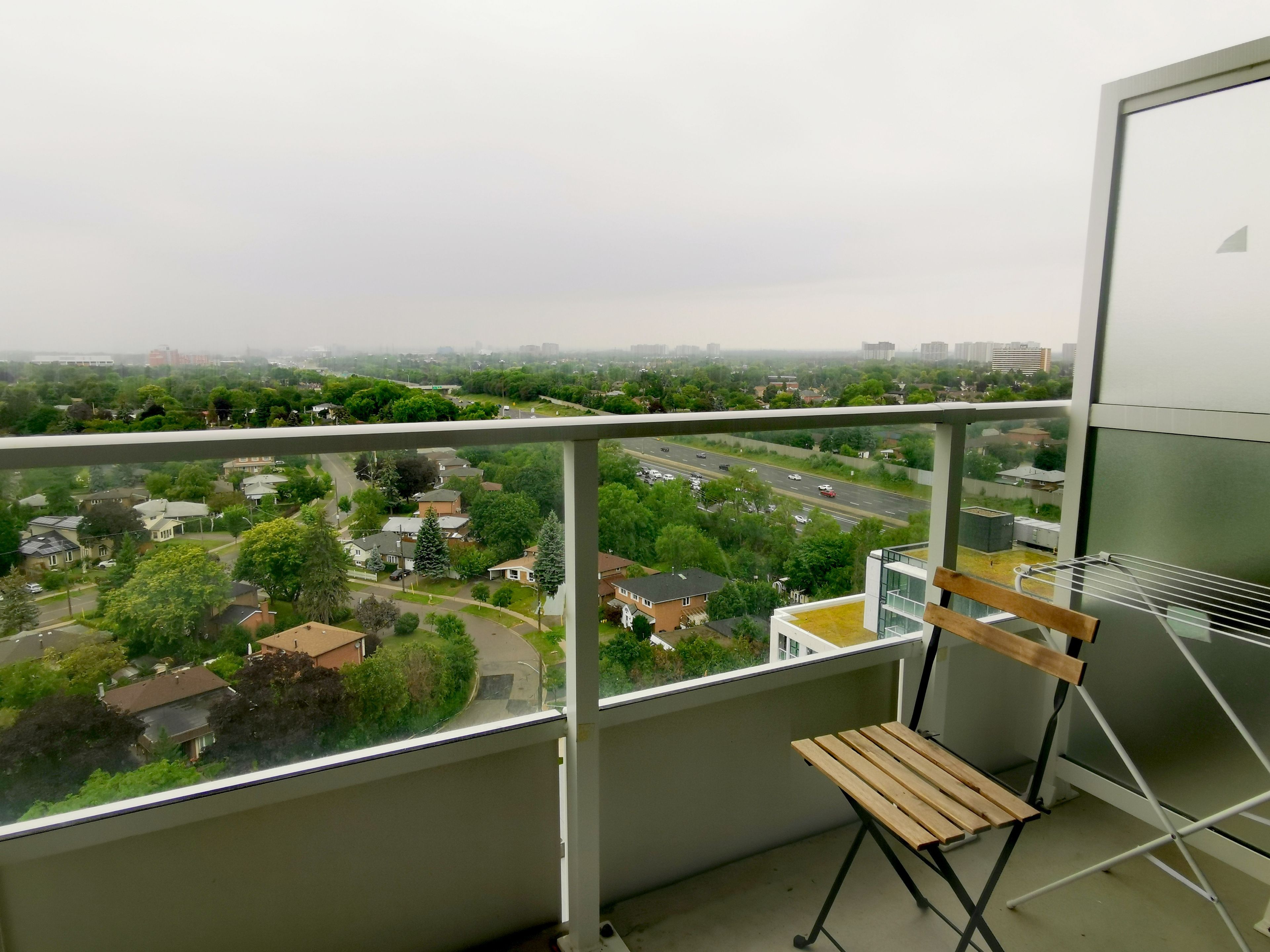 One Bedroom Condo Apartment with panoramic view of the city, Laminate Flooring Throughout & 9' Ceiling. Floor To Ceiling Windows. Modern Kitchen And Quartz Countertop. Fabulous Amenities: Gym, Yoga, Fitness Room, Rooftop Deck, Bbqs, Concierge & More. 1 Parking . Steps To Don Mill Subway Station & Fairview Mall, Students are welcome!