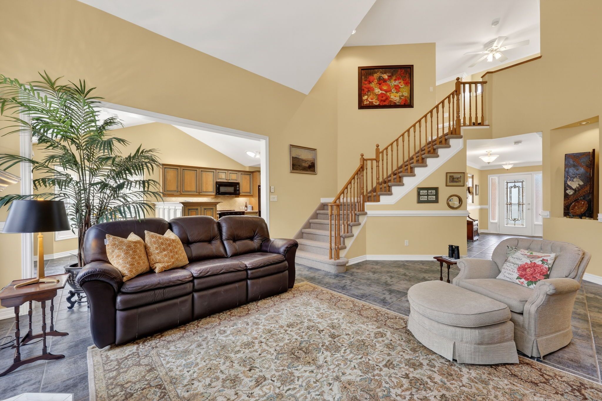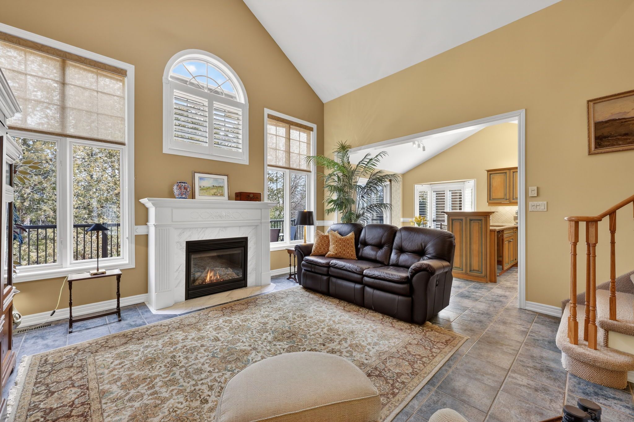 Welcome to 19 Bella Vista Trail, a highly sought-after Monet bungaloft offering 3,505 sq ft of finished living space, tucked away on a quiet dead-end street in Briar Hill. Backing onto the Nottawasaga Golf Course and River, this home delivers exceptional privacy and breathtaking, uninterrupted views - a rare offering in the community. An extra-long, newly completed driveway (2025) accommodates up to four vehicles with ease, in addition to the garage with convenient inside entry. Step inside to a welcoming foyer that opens into a stunning two-storey great room with cathedral ceilings, a gas fireplace, and expansive windows framing the picturesque backyard. A formal dining room provides the perfect setting for hosting. The main floor primary suite offers a private retreat with a walk-in closet and 4-piece ensuite featuring a soaker tub. The kitchen includes a bright eat-in area with walkout to a new oversized deck (2025) complete with two awnings, creating a comfortable outdoor space to take in the views. Upstairs, the loft overlooks the great room and is ideal for a home office or sitting area, alongside an additional bedroom and 3-piece bath. The finished walkout basement extends the living space with a recreation room, wet bar, additional bedroom, 3-piece bath, and ample storage - perfect for guests or multi-generational living. Notable upgrades include new furnace (2025), new washer and dryer (2025), and insulated garage door (2022). Additional features include three gas fireplaces and custom California shutters, blinds, and drapery throughout. Enjoy access to Briar Hill's vibrant adult lifestyle community, with walking trails, a community centre, and close proximity to golf, dining, and amenities. A rare combination of privacy, views, and lifestyle - this is one you won't want to miss.