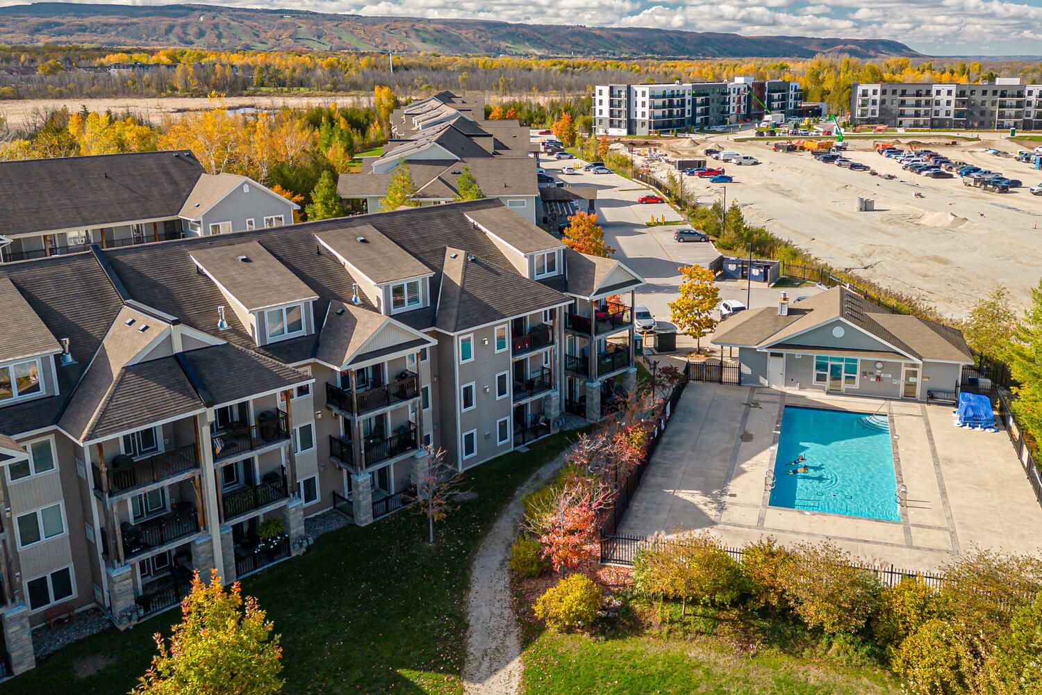Welcome to your perfect four-season retreat in Collingwood! This modern, open-concept 2-bedroom, 2-bath condo offers effortless main-floor living with no stairs-ideal for those seeking convenience, comfort, and a carefree lifestyle. Thoughtfully designed, this popular floor plan features neutral, timeless finishes and a bright, airy layout that flows seamlessly from the kitchen through to the living and dining areas. The inviting great room includes a cozy gas fireplace for those crisp winter evenings and walkout access to a private patio-perfect for morning coffee or après-ski relaxation. The spacious kitchen offers plenty of counter space and open sightlines that make entertaining easy. Both bedrooms are a good size, with the primary suite featuring an ensuite bath and closet space. Enjoy the convenience of an in-suite laundry room and an oversized locker ideal for bikes, skis, or outdoor equipment. Set in one of Collingwood's most desirable condo communities, this property is designed for year-round enjoyment. In summer, take advantage of the heated outdoor saltwater pool, scenic walking trails, and quick access to Georgian Bay just across the road. In winter, you're only minutes from Blue Mountain's world-class ski slopes, cozy cafés, and boutique shopping in downtown Collingwood. Additional amenities include an exercise room, kayak storage, and plenty of visitor parking. With affordable condo fees that include water and sewer, this low-maintenance home offers unbeatable value for those seeking a weekend getaway, full-time residence, or smart investment in a thriving four-season community. Experience the best of Collingwood living-where golf, skiing, trails, and waterfront adventures are all at your doorstep. Move in and start enjoying the relaxed, active lifestyle you've been dreaming of!