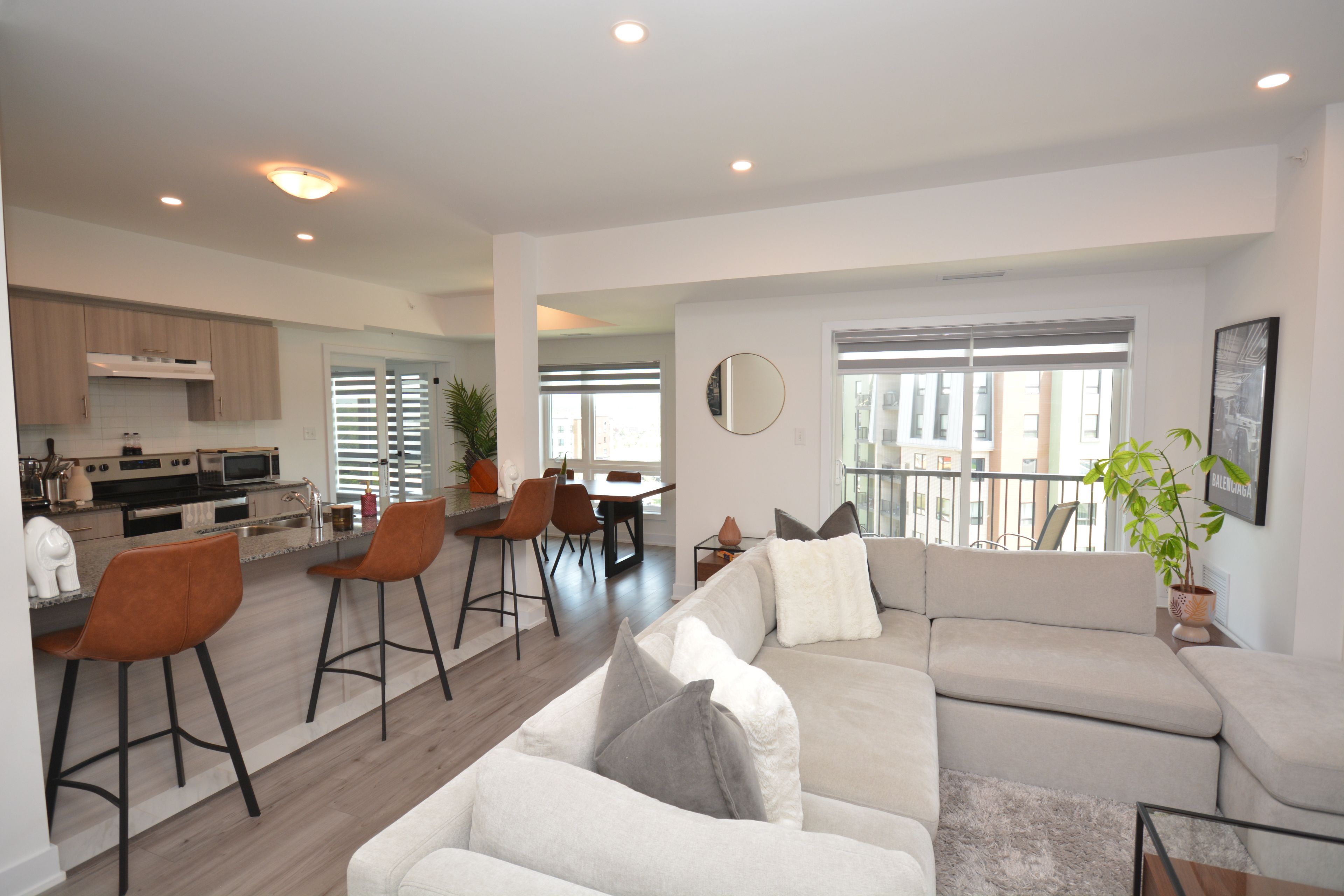 Client RemarksWelcome to this stunning corner unit Condo, Located in The Turmeric Building at Bistro 6 - Culinary Inspired Condo Living. It is Surrounded By Protected Land & Community Trails In South-Barrie! This beautiful East Exposure unit Offers 1267 Sq Ft with 3 Beds and 2 Bath, 9' Ceilings, and open concept style. Many upgrades including Laminate flooring in the LV/DN area, S/S appliances, Granite counters in the kitchen and baths, modern backsplash, Pot lights, Glass Door Standing Shower in the primary bath, gas hookup behind the stove in the kitchen, and BBQ hook-up on the balcony. besides all of that, this unit is barrier-free design, one of a few available in this community. Endless Amenities are Offered Including Spice Library, Basketball Court, Yoga Retreat, Outdoor Kitchen, and Ontario's first Kitchen Library (similar to a traditional library except instead of books you get the best-in-class kitchen tools that an at-home chef needs). **EXTRAS** An absolute dream for anyone that loves to cook! This community is conveniently located minutes from the GO Station, Park Place Shopping Centre, Tangle Creek Golf Course, & minutes away from downtown Barrie & the beautiful waterfront. Showings anytime. Photos from when the unit was occupied.