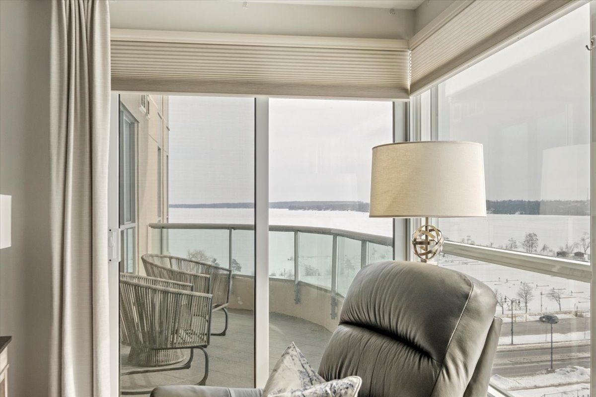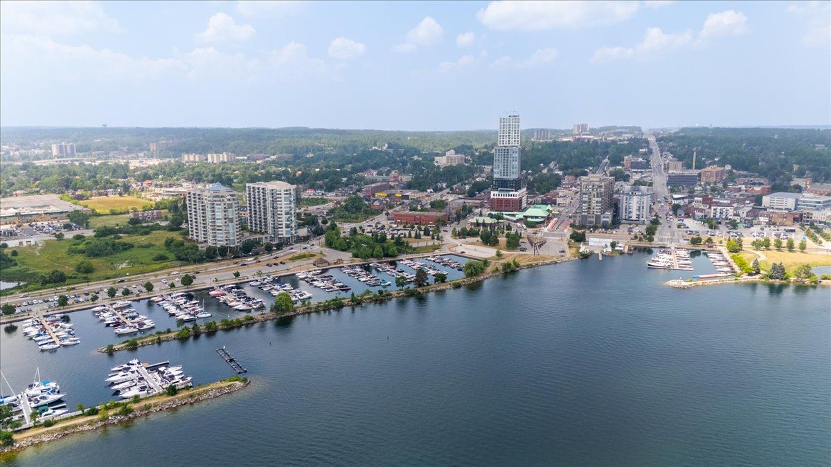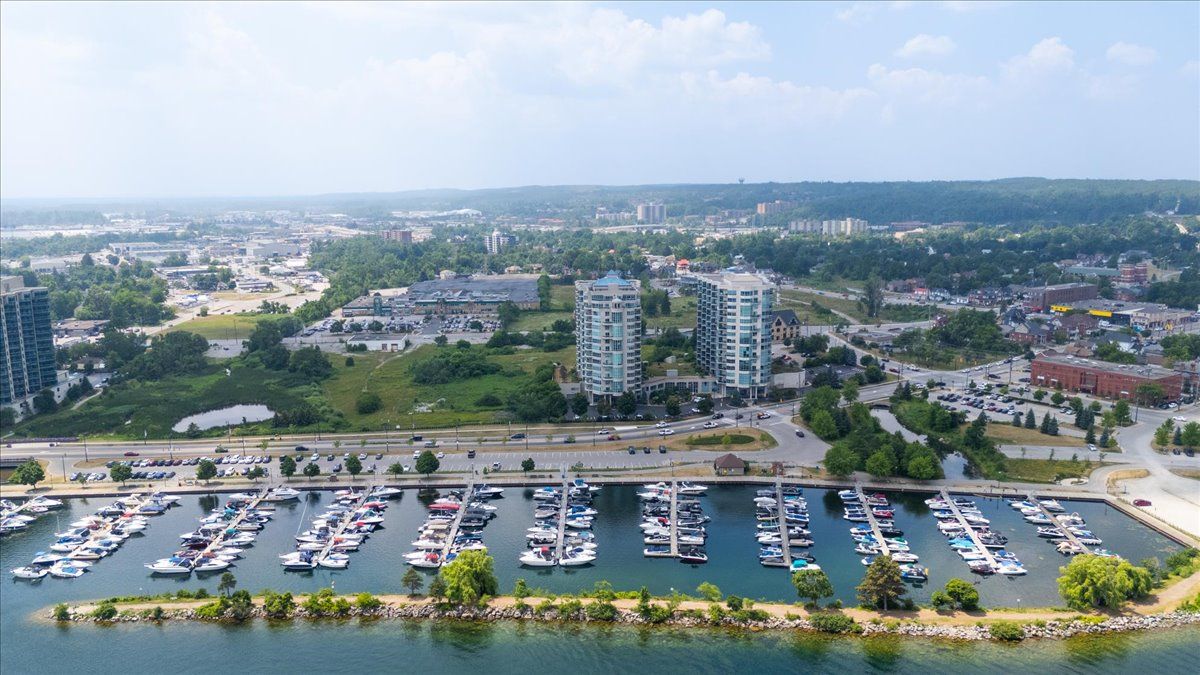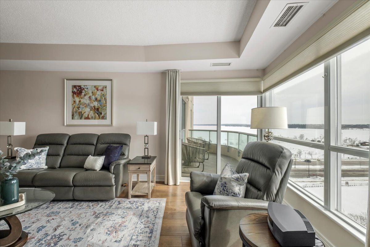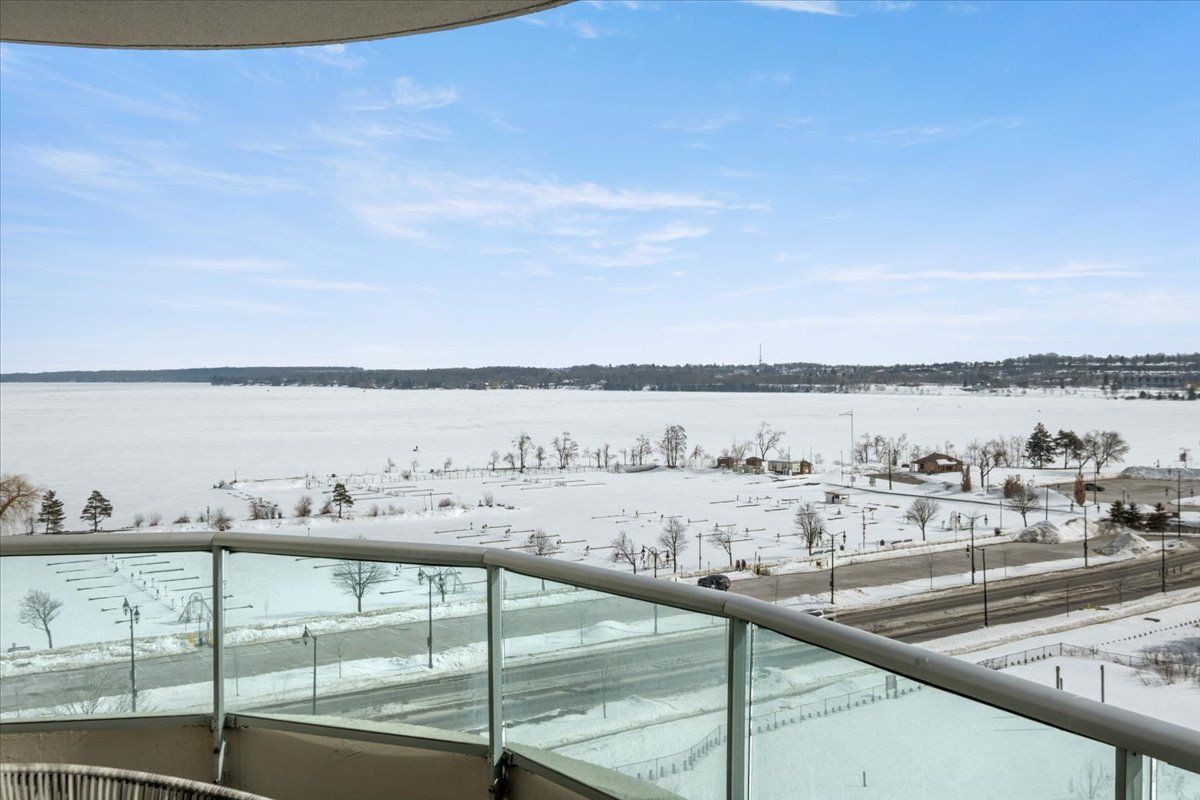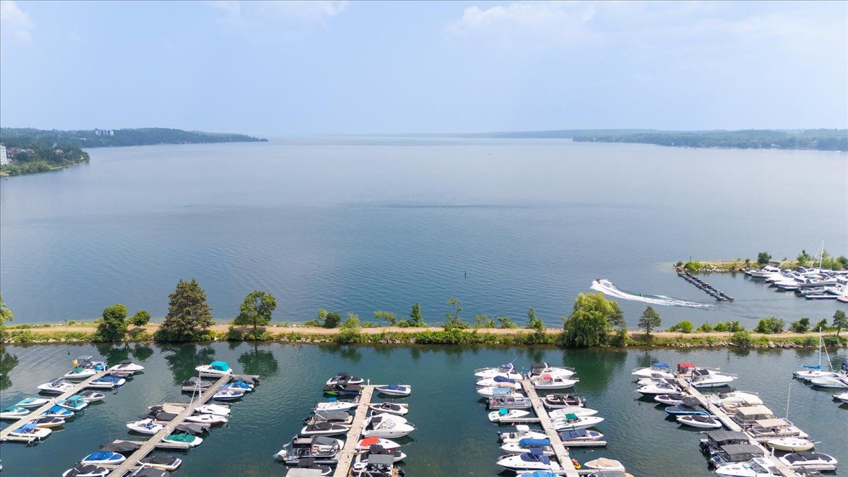 Wake up each day to the beauty of the waterfront in this beautifully renovated 2-bedroom, plus den, 2-bathroom condo overlooking Kempenfelt Bay in Barrie. designed with both comfort and style in mind, this spacious suite offers modern finishes , an open-concept layout, and plenty of room everyday living and entertaining. The updated kitchen features contemporary cabinetry, quality quartz countertops, and ample workspace, flowing seamlessly into the bright living and dining areas, Sleek stainless steel appliances, loads of storage, undermount lighting. Large windows fill the home with natural light and showcase glimpses of the water and vibrant waterfront surroundings. Custom power Hunter Douglas blinds throughout, luxury hardwood floors, upgraded lighting throughout. The generous primary bedroom includes a private 4 piece en-suite with large walk-in shower, while the second bedroom and versatile den provide flexible space for guests, a home office, or hobby room. Whether you're enjoying your morning coffee or winding down after a long day, water front living creates a peaceful backdrop to daily life. Located steps from Barrie's scenic shoreline, residents can enjoy more than 5km of waterfront trails, parks, beaches, and the lively downtown district just moments away. Kempenfelt Bay and the surrounding waterfront are one of the city's most popular attractions for both residents and visitors. The renovated condo offers the perfect balance of modern comfort, generous space, and an unbeatable waterfront lifestyle in the heart of Barrie. Wonderful amenities include indoor pool, hot tub, sauna, fully equipped exercise room, party room, games room, guest suites, library and a host of wonderful social activities. steps to the GO train, 5 minutes to Hwy 400, shopping and so much more !