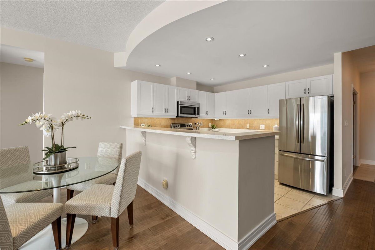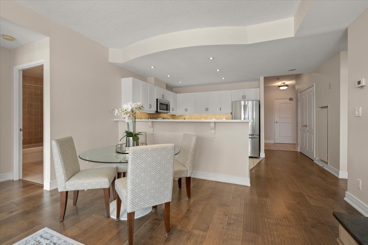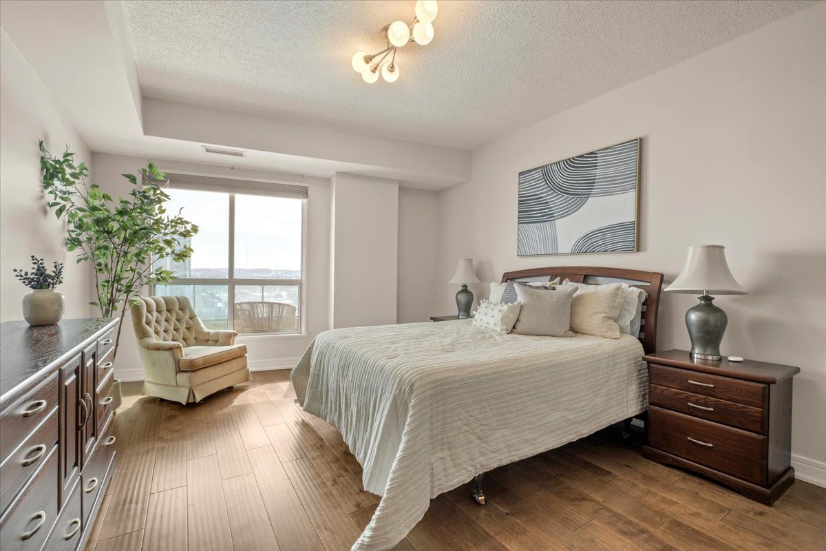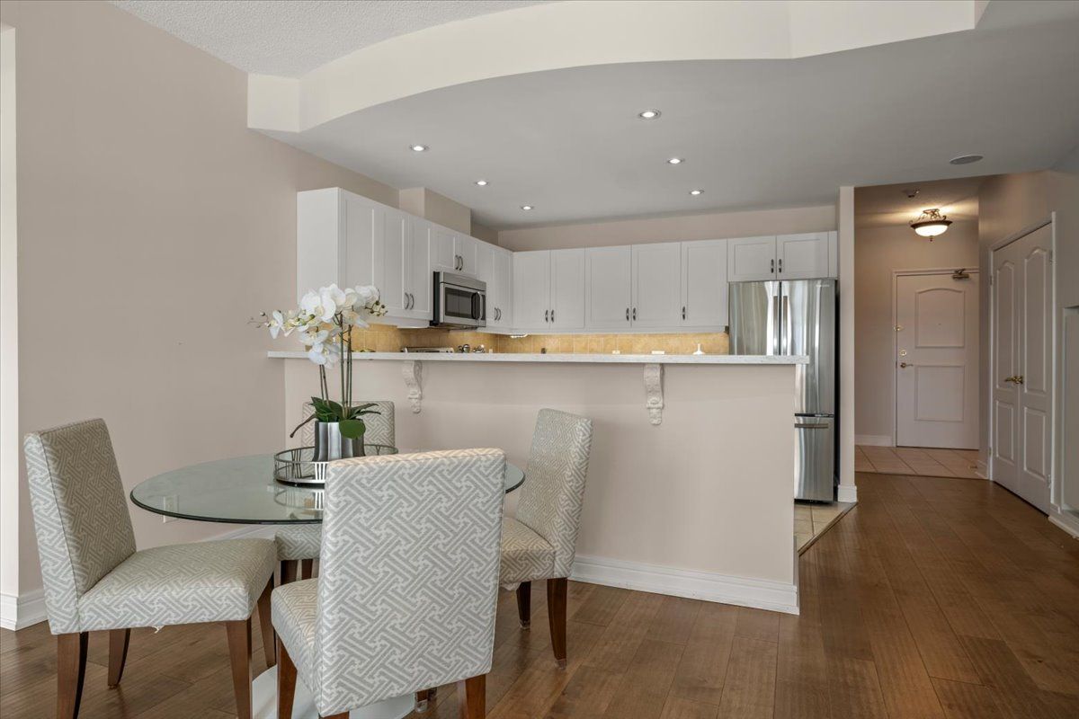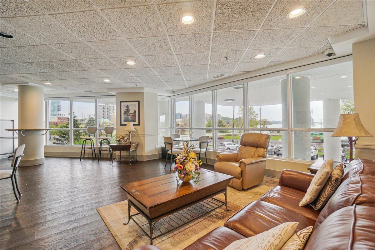 Wake up each day to the beauty of the waterfront in this beautifully renovated 2-bedroom, plus den, 2-bathroom condo overlooking Kempenfelt Bay in Barrie. designed with both comfort and style in mind, this spacious suite offers modern finishes , an open-concept layout, and plenty of room everyday living and entertaining. The updated kitchen features contemporary cabinetry, quality quartz countertops, and ample workspace, flowing seamlessly into the bright living and dining areas, Sleek stainless steel appliances, loads of storage, undermount lighting. Large windows fill the home with natural light and showcase glimpses of the water and vibrant waterfront surroundings. Custom power Hunter Douglas blinds throughout, luxury hardwood floors, upgraded lighting throughout. The generous primary bedroom includes a private 4 piece en-suite with large walk-in shower, while the second bedroom and versatile den provide flexible space for guests, a home office, or hobby room. Whether you're enjoying your morning coffee or winding down after a long day, water front living creates a peaceful backdrop to daily life. Located steps from Barrie's scenic shoreline, residents can enjoy more than 5km of waterfront trails, parks, beaches, and the lively downtown district just moments away. Kempenfelt Bay and the surrounding waterfront are one of the city's most popular attractions for both residents and visitors. The renovated condo offers the perfect balance of modern comfort, generous space, and an unbeatable waterfront lifestyle in the heart of Barrie. Wonderful amenities include indoor pool, hot tub, sauna, fully equipped exercise room, party room, games room, guest suites, library and a host of wonderful social activities. steps to the GO train, 5 minutes to Hwy 400, shopping and so much more !