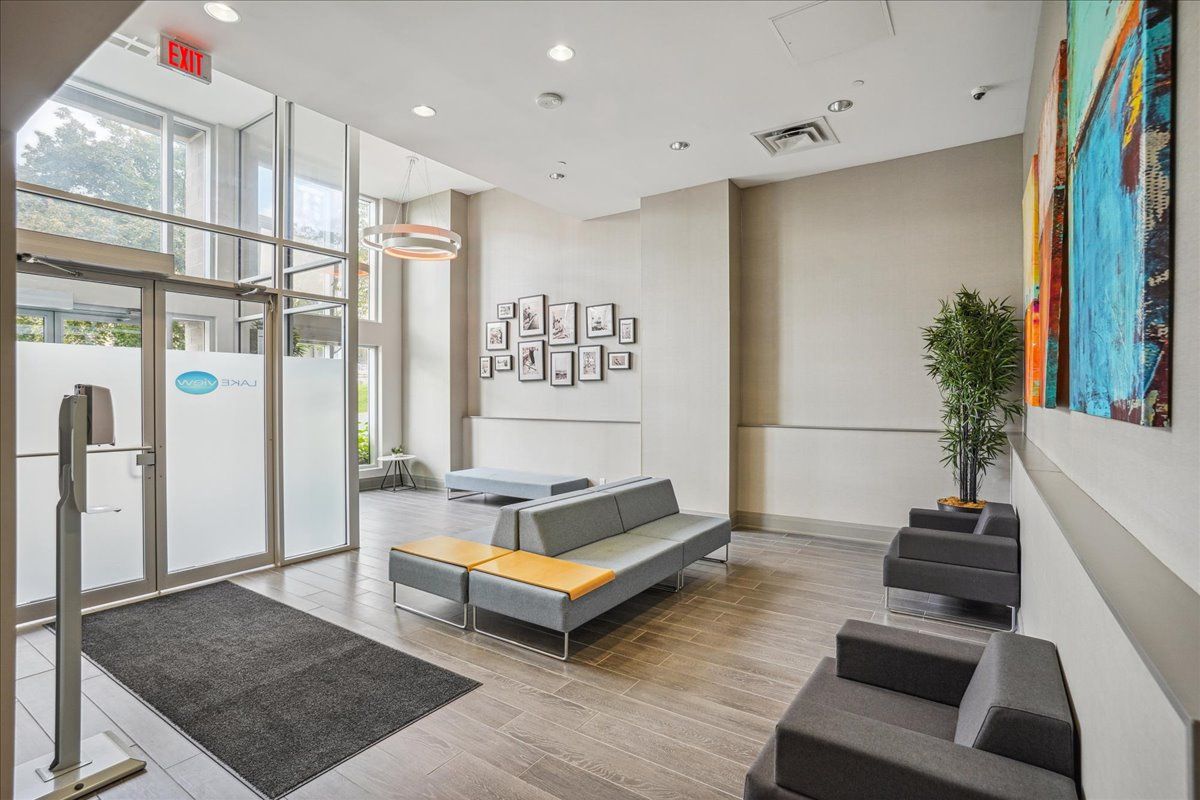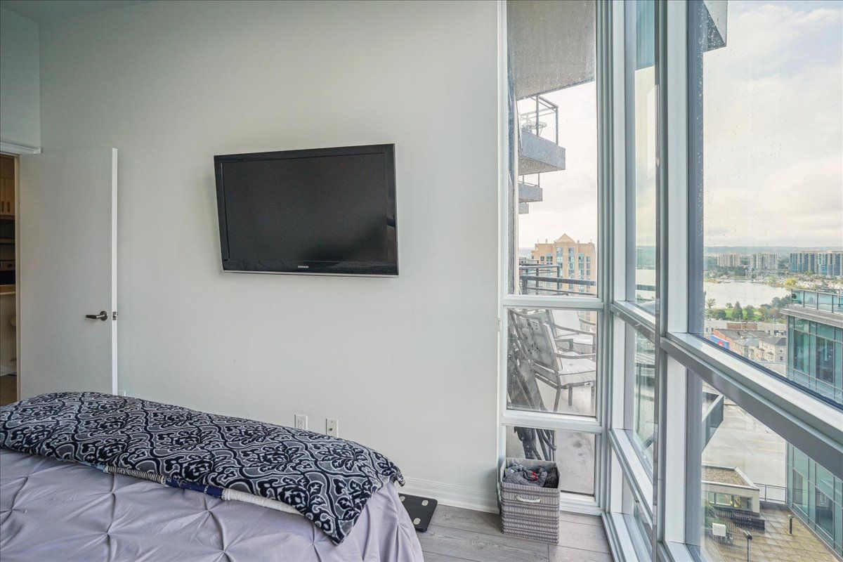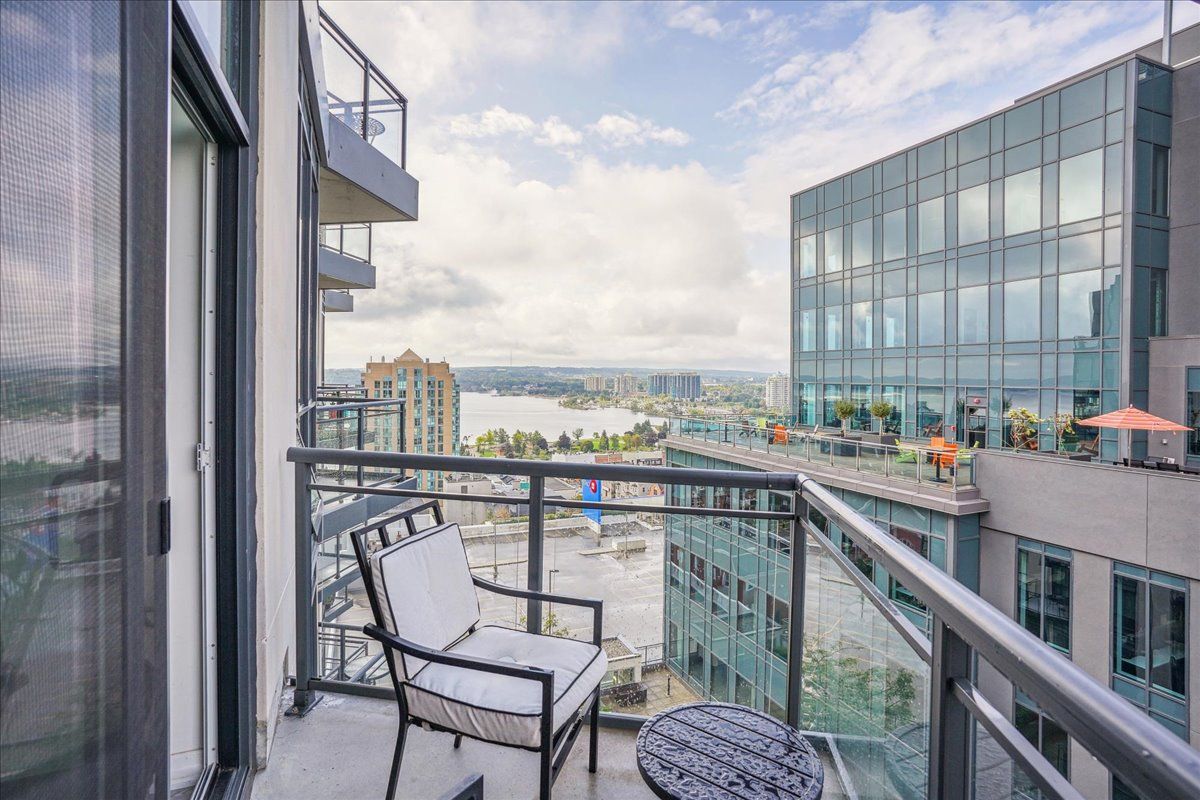 Spacious and bright Penthouse suite, 1 bedroom plus Den, 1 bathroom 651 Sq Ft Cyan Model at Lakeview Condos. Lovely suite, with 9 ft ceilings, large windows with beautiful view of Kempenfelt Bay. Nice size living dining room combo, and walk out to your private balcony, perfect space to enjoy your coffee while enjoying the view. Kitchen has full height cabinets, stainless steel appliances, quartz counters and breakfast bar with seating. Full 4 piece bathroom with tile tub surround, vanity and modern lighting. Ensuite laundry, lots of storage cabinets, large den perfect for office space or a guest room. Secure building with wonderful amenities including a party room, exercise room and a large 3rd floor outdoor terrace with a community barbecue, lounges, and ample tables and chairs. Wonderful space to enjoy and entertain. Pet friendly building. Steps to Barrie's waterfront parks, beaches and entertainment. Shopping nearby, transit, Go Train, banks and more. Perfect for a working professional.