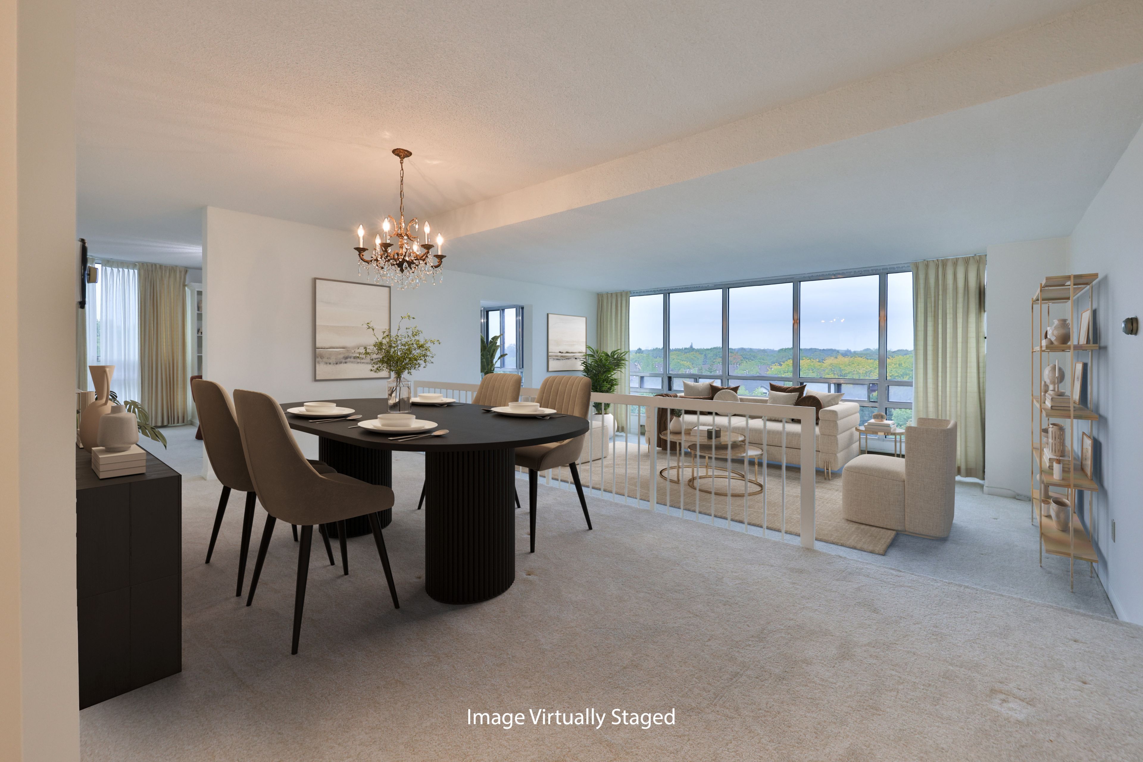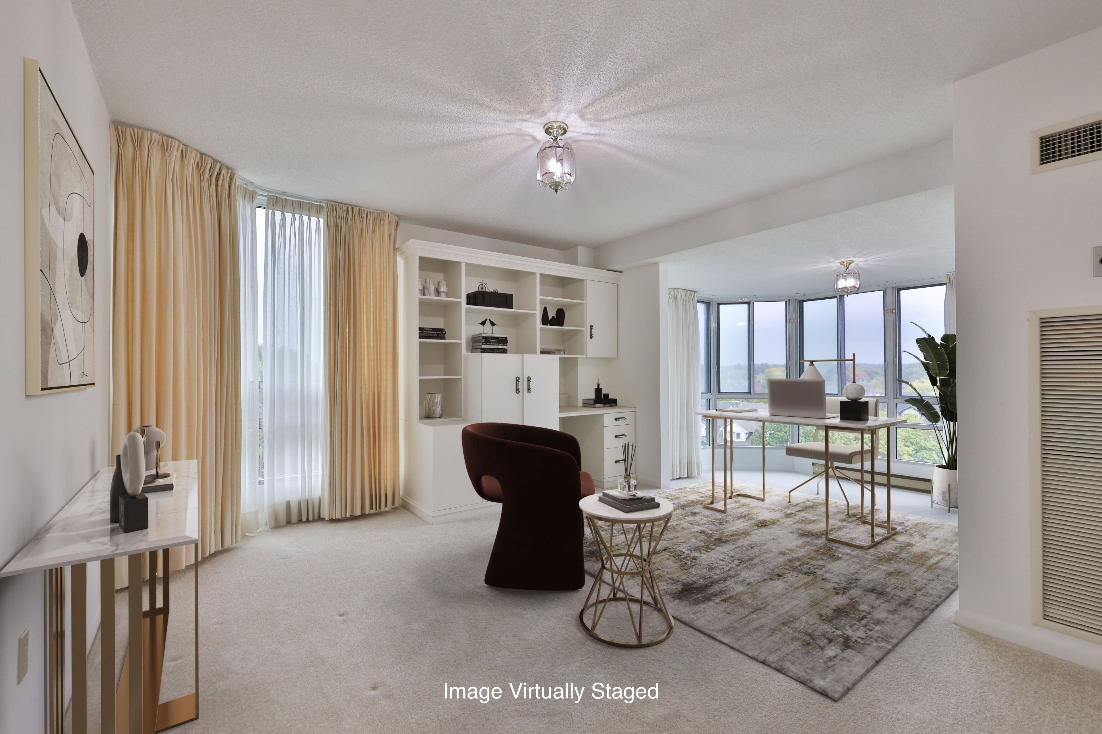 Step into a life of refined elegance and experience the warmth and sophisticated luxury that define this exceptional lakeside home. This stunning 1830 sq ft corner suite offers a rare opportunity to enjoy breathtaking, unobstructed views of Lake Ontario and the Toronto skyline through floor-to-ceiling windows that energize the condo with bright, natural light. The spacious open-concept layout features a large eat-in kitchen, a formal dining area which flows into the spacious living room anchored with soothing lake views, a separate office/den, and a bright solarium-perfect for relaxing. The primary suite includes two double closets and a full 4-piece ensuite bath. To further appreciate this executive home, enjoy the video above then click the "More Information" button below to enjoy a 3D walkthrough of the suite. The Ennisclare community enjoys access to exceptional resort-style amenities including an indoor pool and hot tub, sauna, fitness centre with organized activities, tennis and squash courts, games room, golf practice area, billiards, library, media room, woodworking and art studios, a party room with kitchen, a lakefront clubhouse, car wash, and 24-hour security. Set amid beautifully landscaped grounds with scenic walking trails along the lake, this exceptional condo is just steps from Bronte Harbour, the marina, waterfront parks, boutique shops and fine dining.