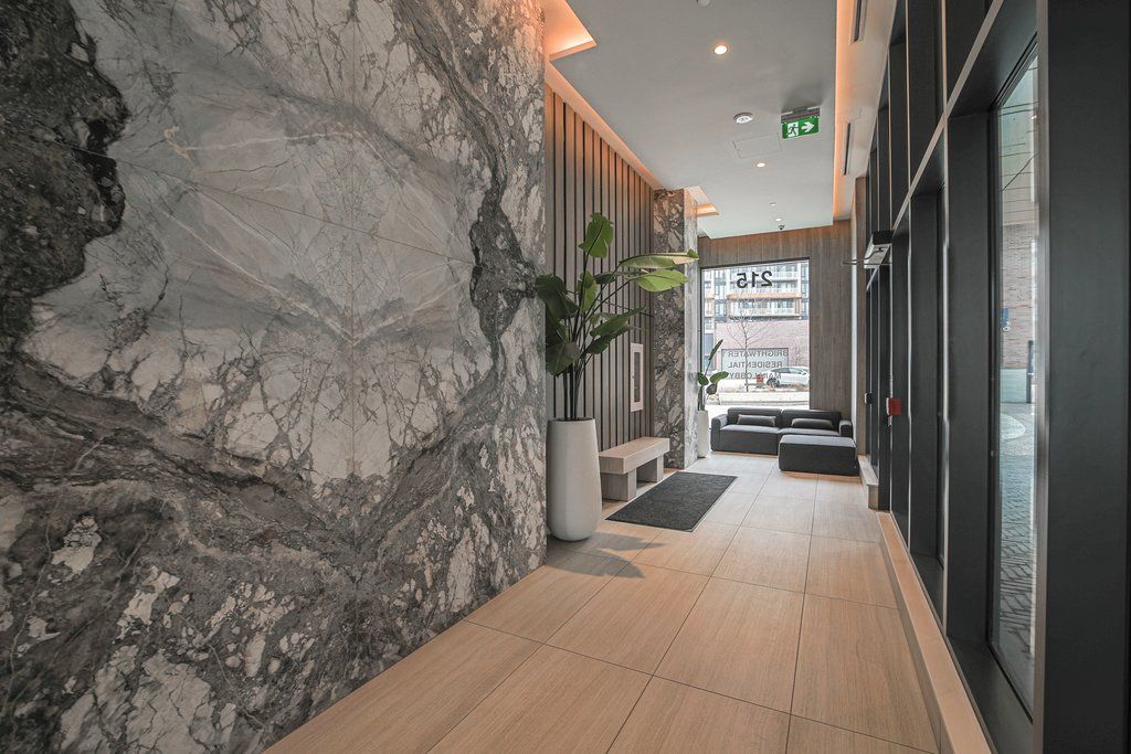 Discover 207-215 Lakeshore Rd W., a stunning 1-bedroom plus den, 1-bath condo in Brightwater I. This boutique unit blends contemporary finishes with an open-concept design and abundant natural light from floor-to-ceiling windows. The modern kitchen features stainless steel appliances, sleek cabinetry, and a movable 5-foot island ideal for cooking and entertaining. The living area opens to a 114 sq. ft. private balcony, perfect for outdoor lounging. The flexible den works well as a home office or dining nook, and the roomy primary bedroom offer sample storage with large mirrored closets. A stylish four-piece bathroom completes the suite. Included are an underground EV parking stall and a private locker for added convenience and value. Located in one of Mississauga's most desirable neighborhoods, you're steps from Farm Boy, Loblaws, Cobs, the LCBO, banks, salons, and top restaurants. Enjoy waterfront trails, scenic parks, and Port Credit's vibrant main strip within walking distance. Commuting is easy with Brightwater's shuttle to Port Credit GO, nearby public transit, and quick access to the QEW. Don't miss this opportunity to move into waterfront living at Brightwater.