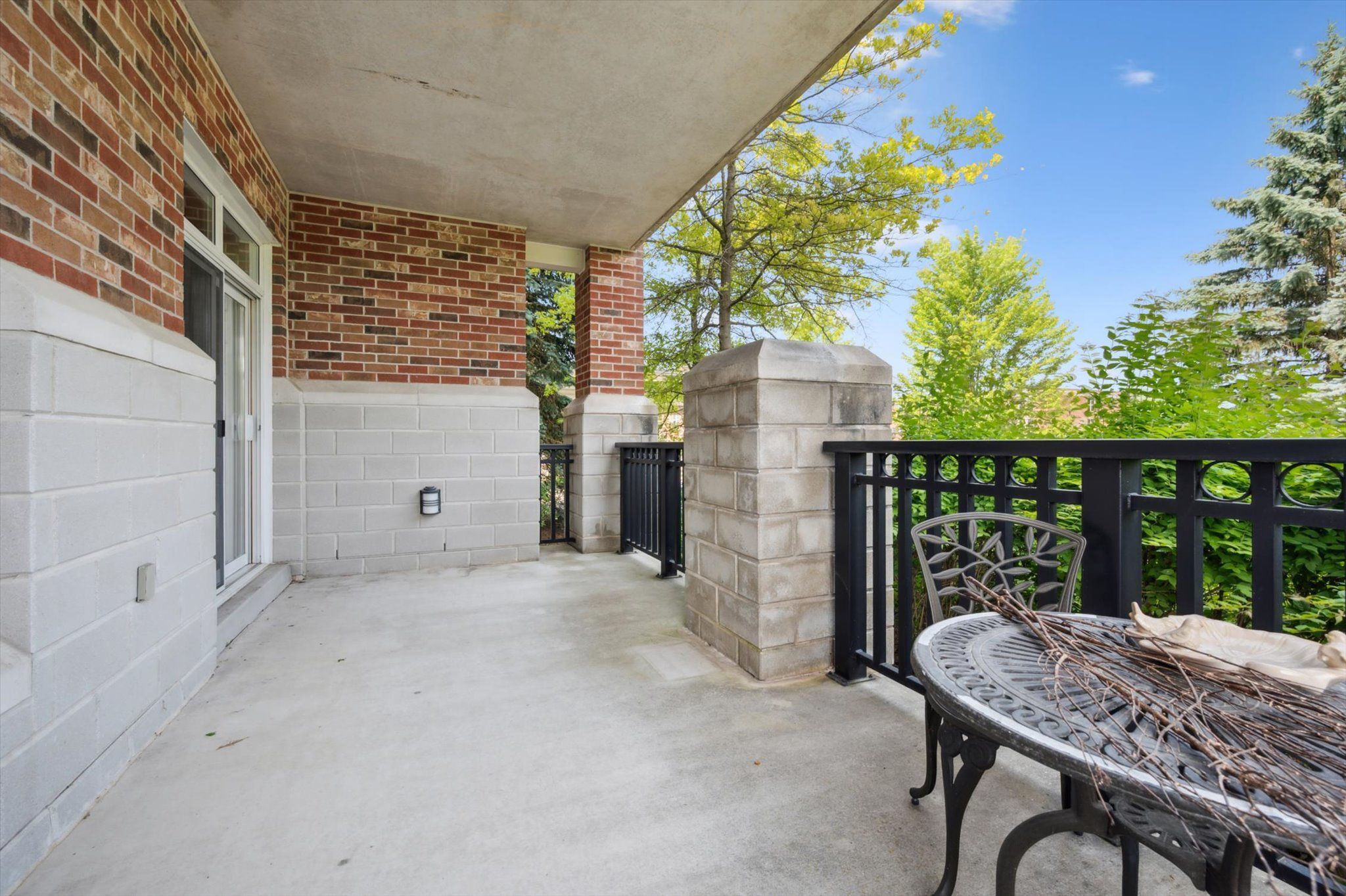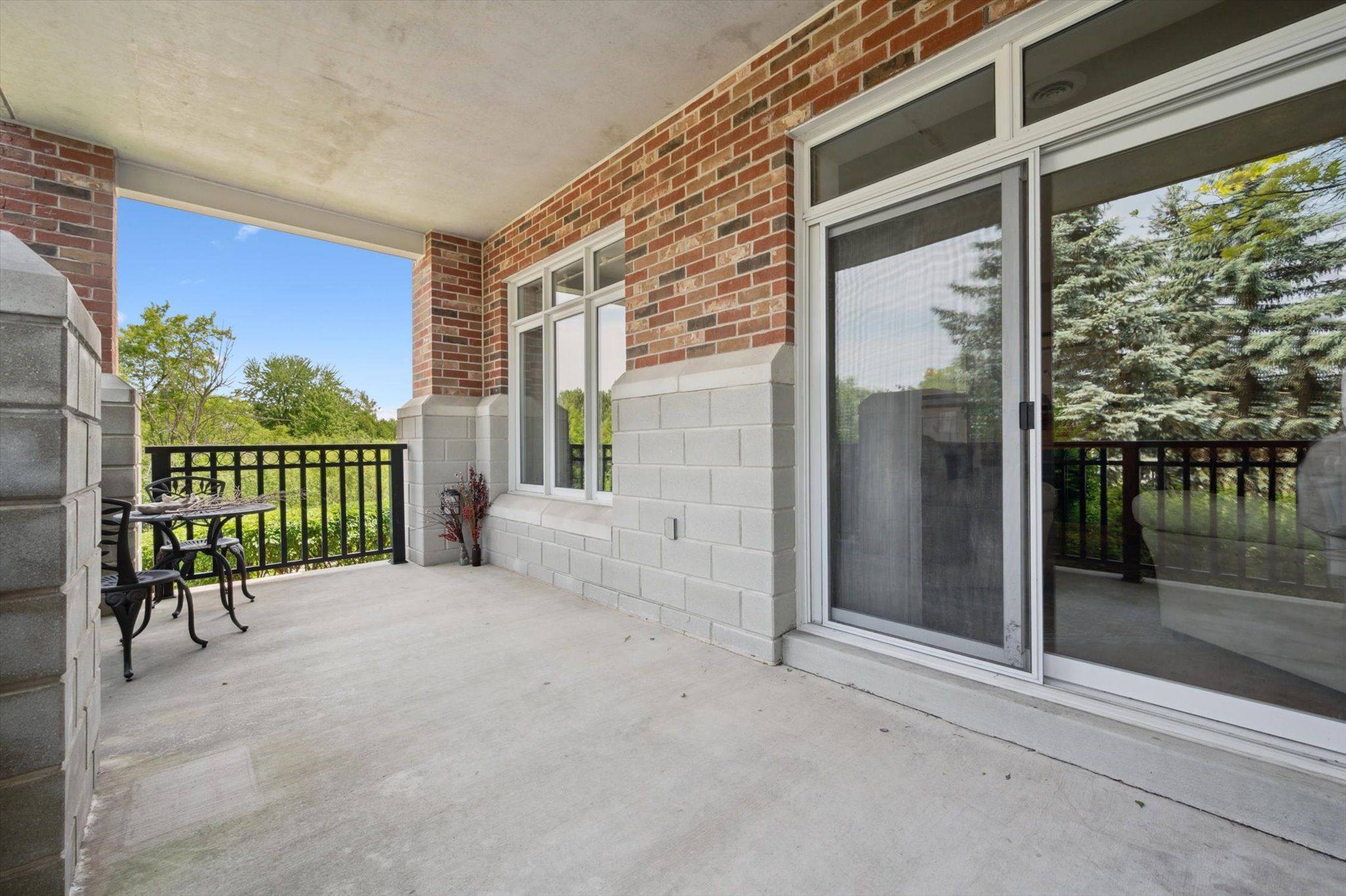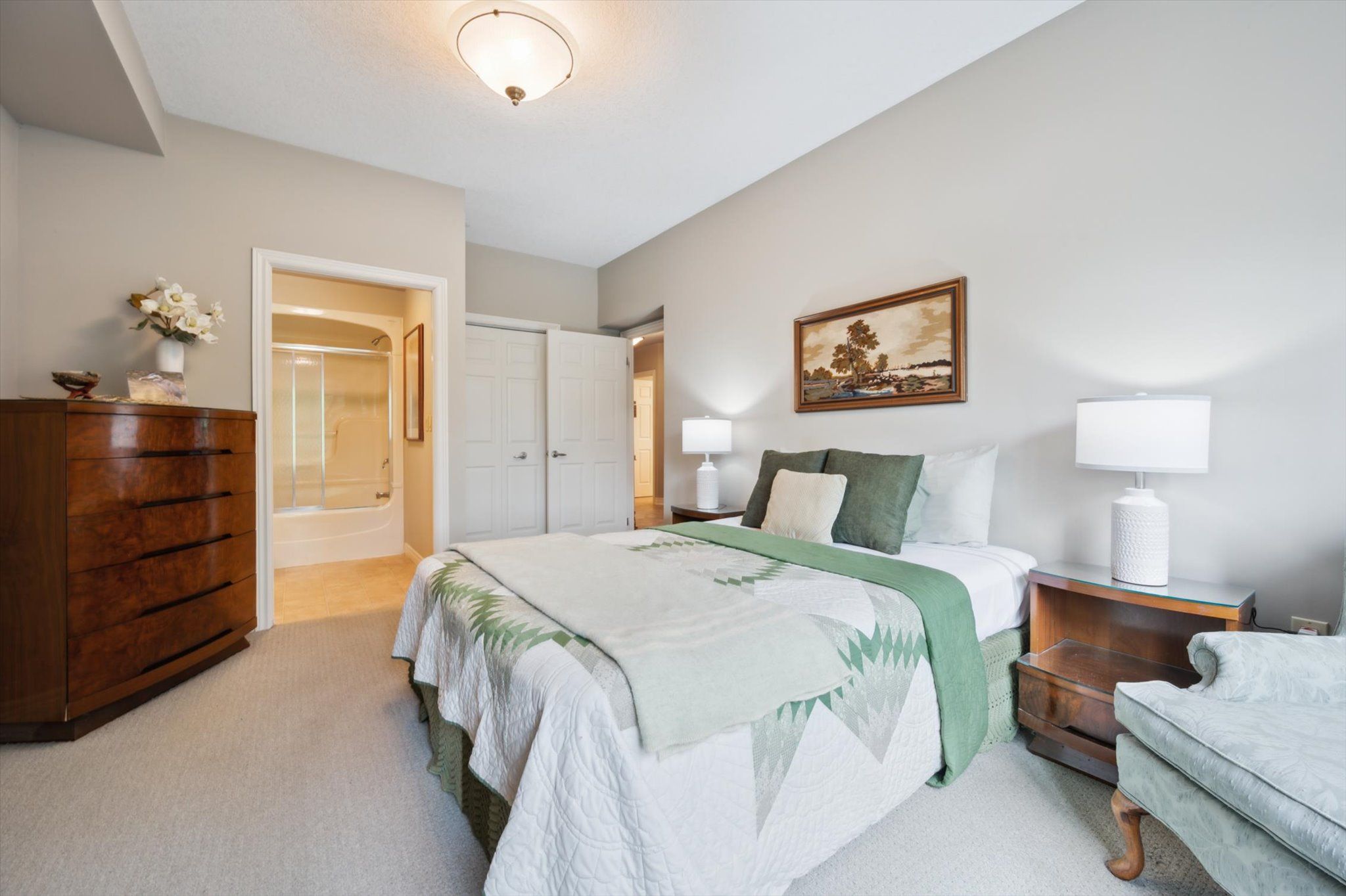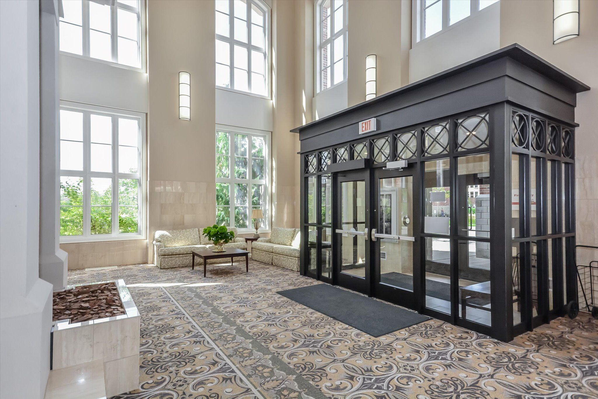 Great opportunity to enjoy retirement living at The Village By The Arboretum in Guelph, Premier 55+ Adult Lifestyle Community. This bright corner unit is on the ground floor with 2 private balconies surrounded by trees with windows on three sides. For the environmentally conscious, you will appreciate the natural controls for cooling in the summer and protection in the winter. For easy access, the underground parking location is right beside the elevator, ride up and Unit 112, is steps away on the first floor. Inside, this unit of 1492 sq ft, features an open concept design, living and dining area surrounded by bright windows and patio doors opening onto one of the balconies. The second balcony faces east. Open this set of patio doors and enjoy your morning coffee from the breakfast area as the sun rises. The primary bedroom offers a ensuite 4 piece bath and a large walk in closet, with window views to the east. The second bedroom can be used as a TV room so you can watch the setting sun from the large bright windows. You'll also find a separate den with two entrances, in-suite laundry, and ample closet space throughout. Additionally, there is a conveniently located large exclusive locker for more storage. As a resident of The Village, you'll have full access to the 28,000+ sq ft Village Centre, a welcoming centre to meet your neighbours with many activities available; an indoor pool, sauna, hot tub, fitness rooms, tennis & pickleball courts, billiards, library, and over 100 resident-led clubs and classes. Besides planning for the future, living in this very special ground floor condo, being surrounded by trees and songbirds outside your door, creates a new lifestyle with new memories.