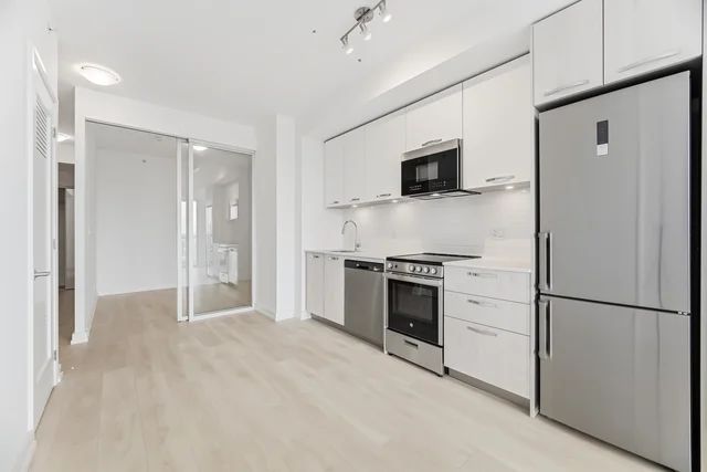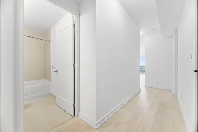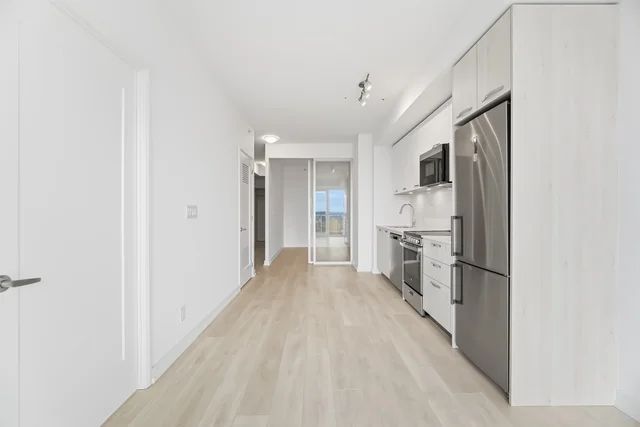 Brand new, never lived in. This modern 2-bedroom, 2-bathroom condo offers a smart, functional layout with quality finishes and an open, airy feel. Approximately 9-foot ceilings (as per plan) enhance the living space, while a private balcony or terrace extends your living area outdoors. The contemporary kitchen features soft-close cabinetry, quartz countertops, ceramic tile backsplash, undermount stainless steel sink, under-cabinet lighting, and a stainless-steel appliance package. Laminate flooring runs throughout the principal living areas, complemented by modern doors, chrome hardware, and neutral finishes. Additional conveniences include in-suite laundry with ventless dryer, individually controlled fan-coil system, and separate electricity and water meters.75 James is a newly built urban lifestyle condominium offering exceptional amenities and a welcoming double-height lobby with fireplace feature wall and lounge seating. Residents enjoy access to co-working and tech lounges, gaming and theatre rooms, kids' zone, and event lounges with private dining and bar areas. Wellness amenities include a fitness studio, spin studio, yoga and meditation room, as well as outdoor amenity terraces with BBQs, pergolas, and lounge seating.Ideally located in the heart of downtown Hamilton, within walking distance to Hamilton GO Centre, Gore Park, St. Joseph's Healthcare, and the McMaster University Downtown Centre. Close to transit, waterfront trails, parks, shopping, dining, and cultural destinations-perfect for comfortable, connected urban living.