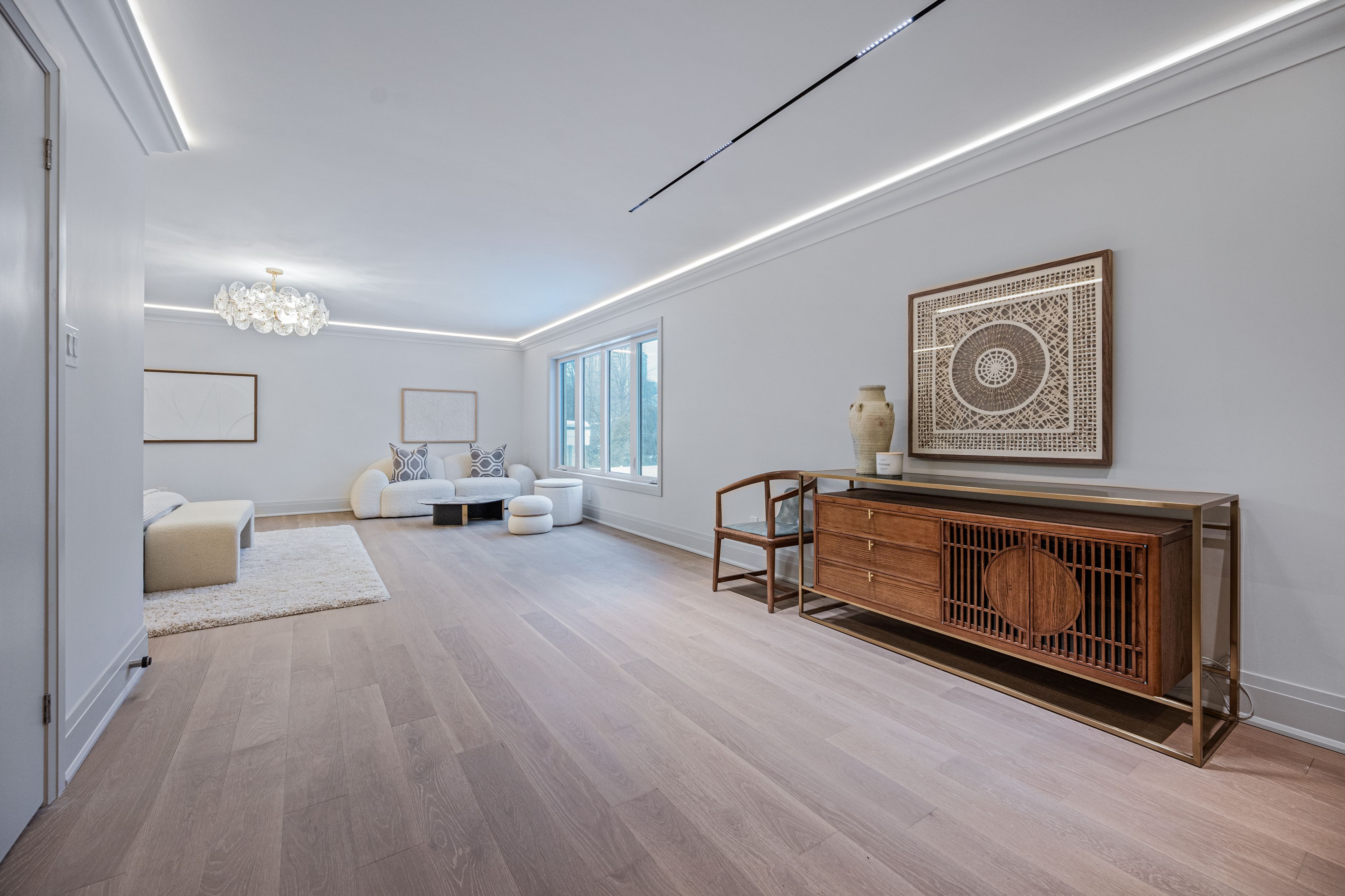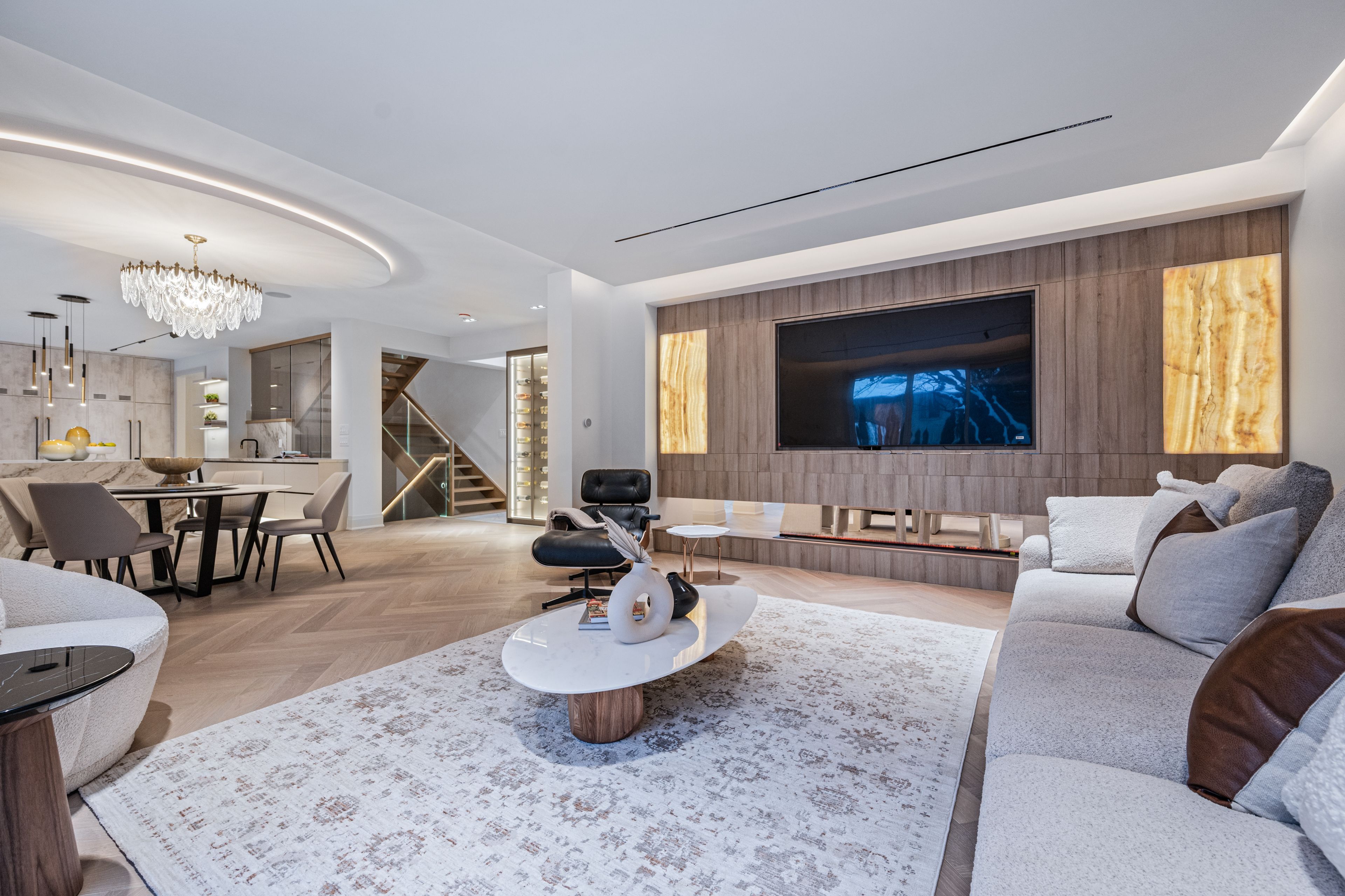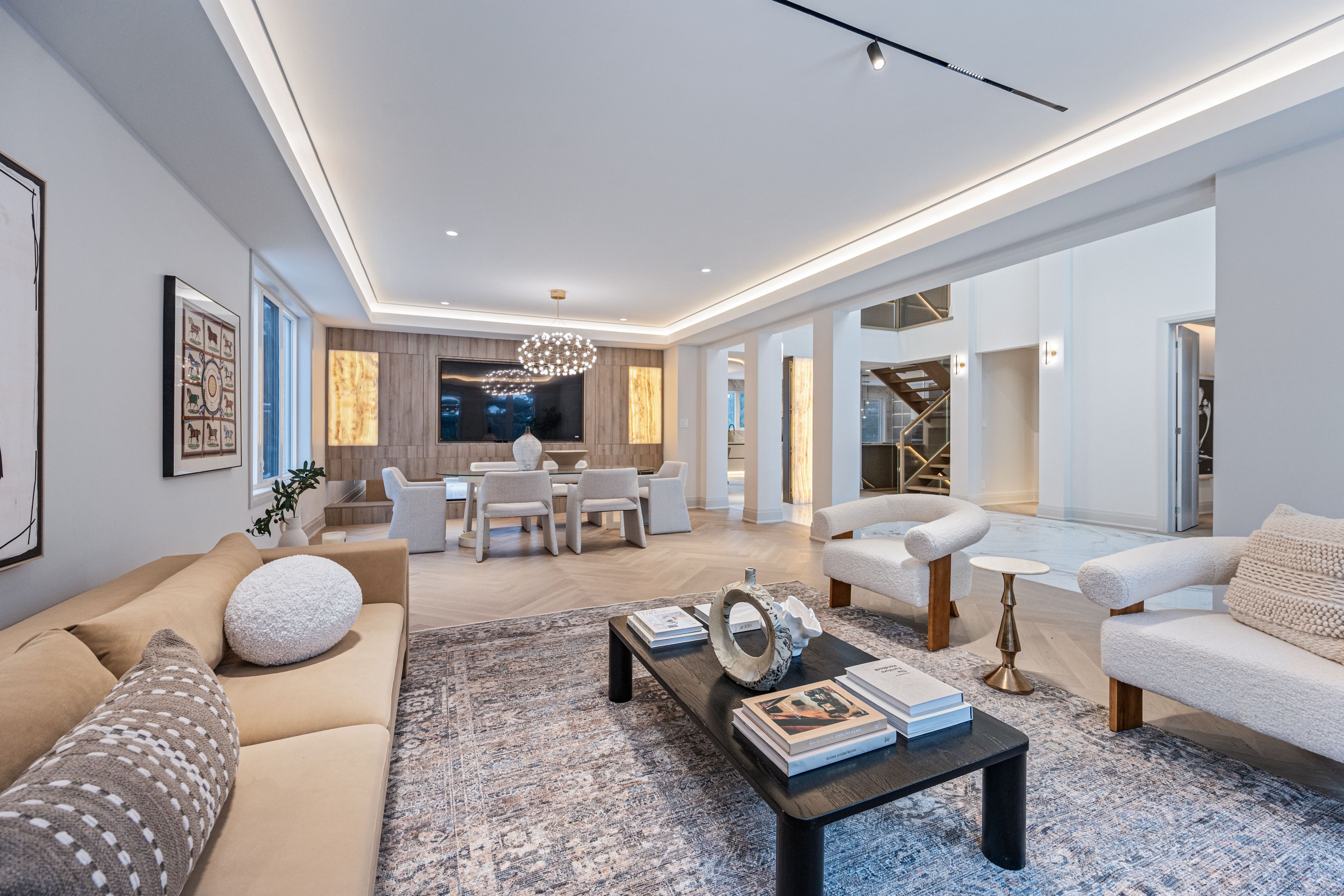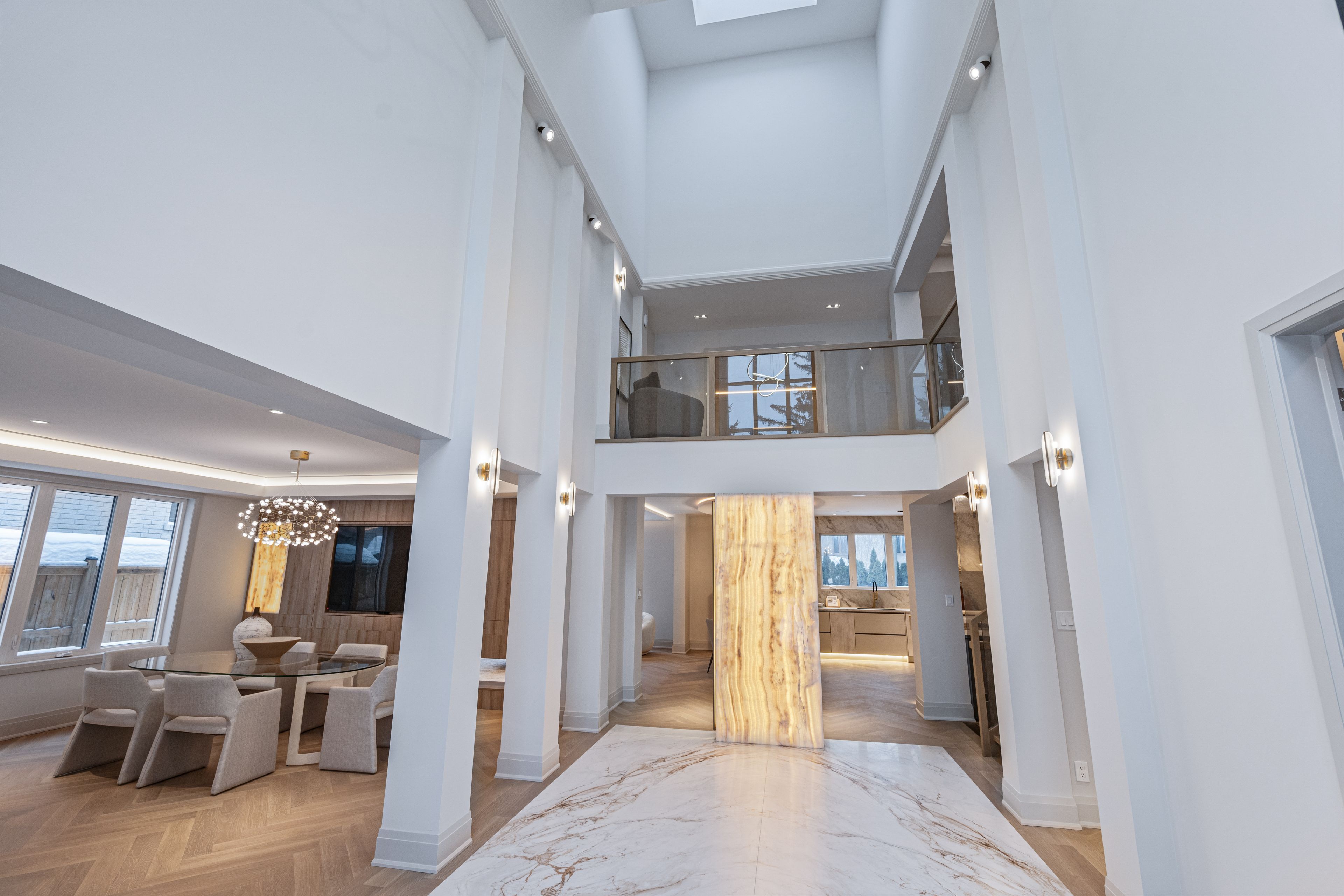 Luxurious Detached Home in Prestigious York Mills / St. AndrewsNestled in the highly sought-after York Mills / St. Andrews neighbourhood, this exceptional detached residence showcases outstanding craftsmanship and refined modern elegance throughout.Step into the grand foyer featuring breathtaking porcelain slab flooring, a dramatic 25-foot ceiling, and a stunning skylight that fills the space with natural light. The expansive living room is highlighted by a sleek, contemporary rotating TV feature wall - a true statement piece.The designer kitchen is a showstopper, appointed with porcelain slab countertops, premium stainless steel appliances, and sophisticated finishes. Hardwood flooring flows seamlessly throughout the home, complemented by a custom-built staircase that enhances the property's modern aesthetic.The second floor offers five spacious bedrooms, each with its own private ensuite, providing ultimate comfort and privacy. The luxurious primary retreat features double-door entry, a custom walk-in closet with built-in shelving, and a spa-inspired 6-piece ensuite.The fully finished walk-up basement includes a nanny suite, sauna, wet bar, and a large recreation room - ideal for extended family living and entertaining.This exceptional home is loaded with exquisite details, high-end finishes, and quality upgrades throughout.Conveniently located close to top-rated schools, shops, York Mills Subway Station, and with easy access to Highway 401.A rare offering in one of Toronto's most prestigious communities.