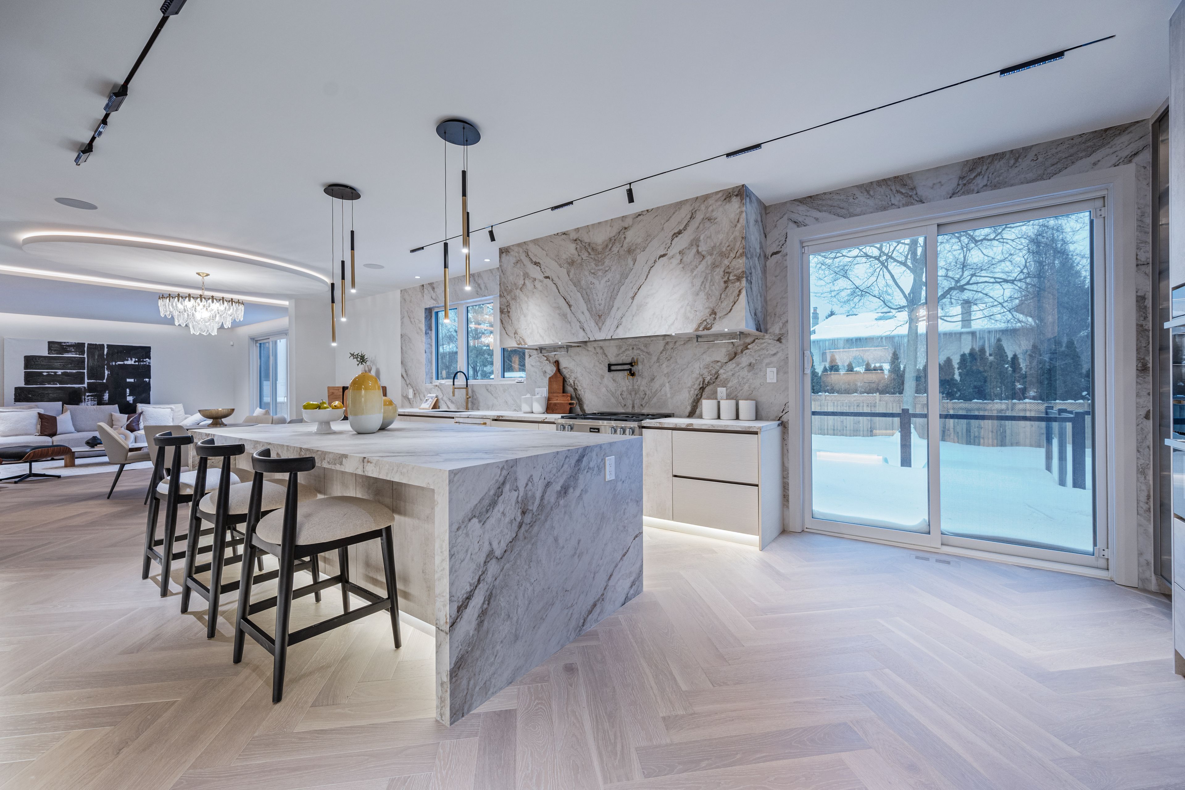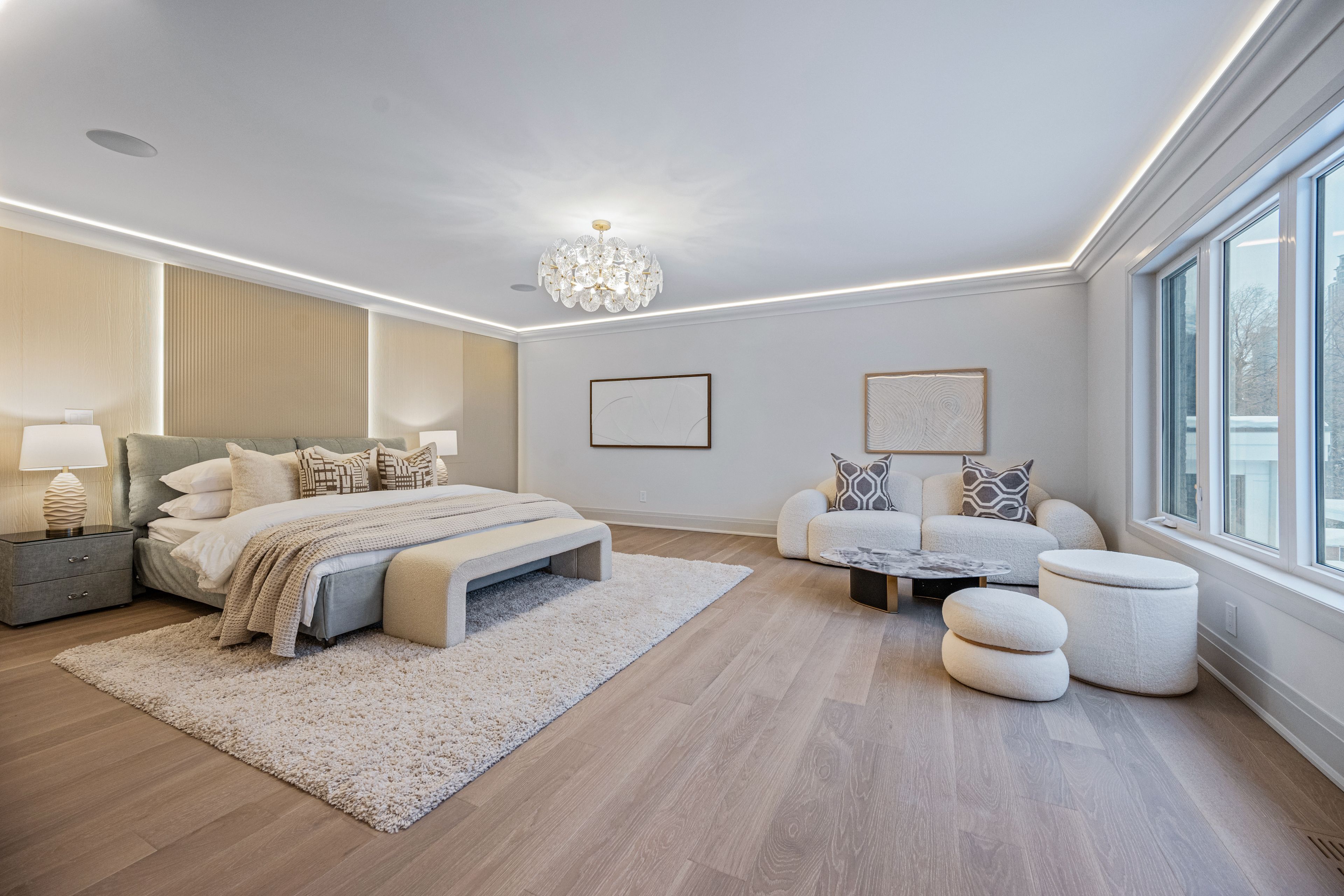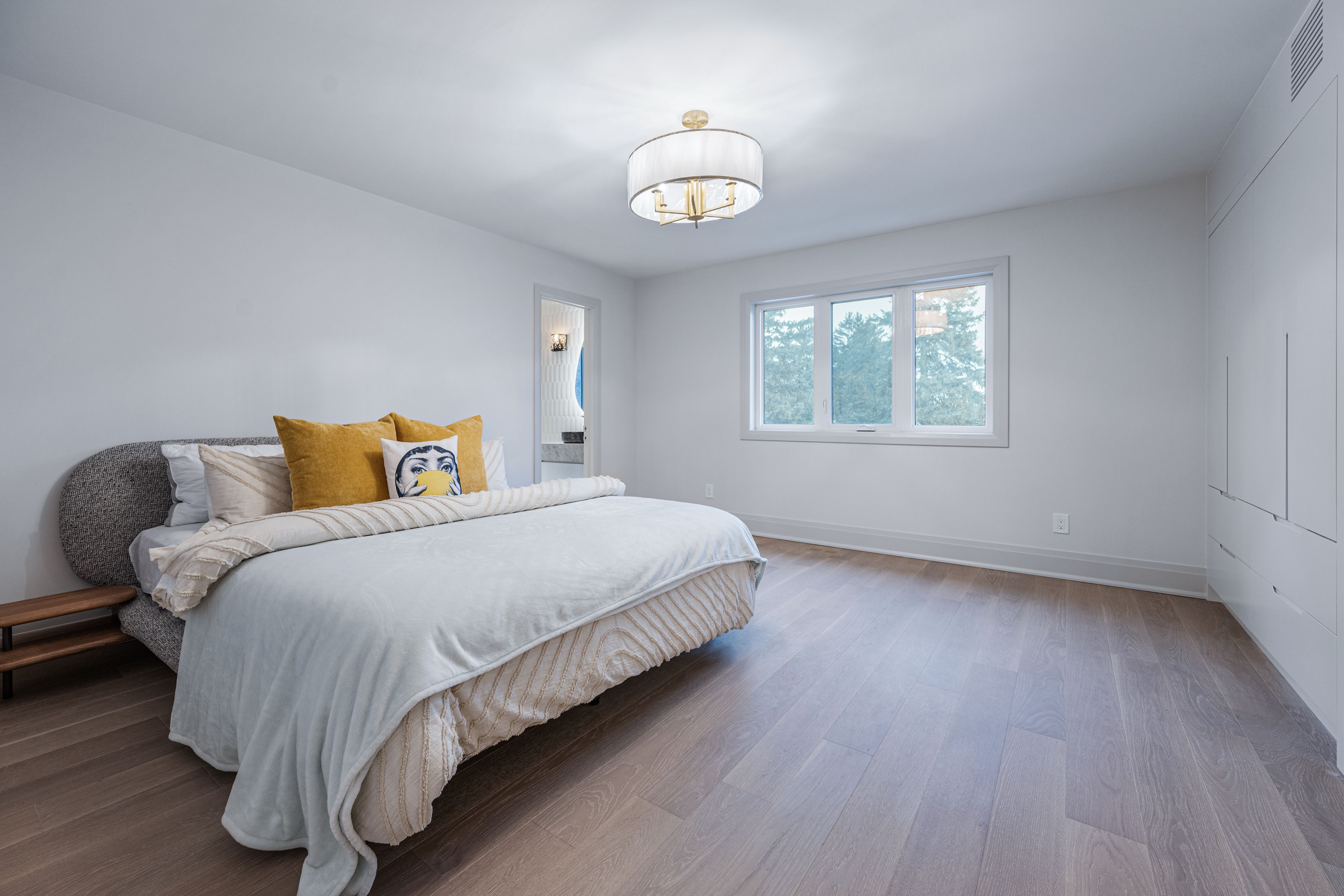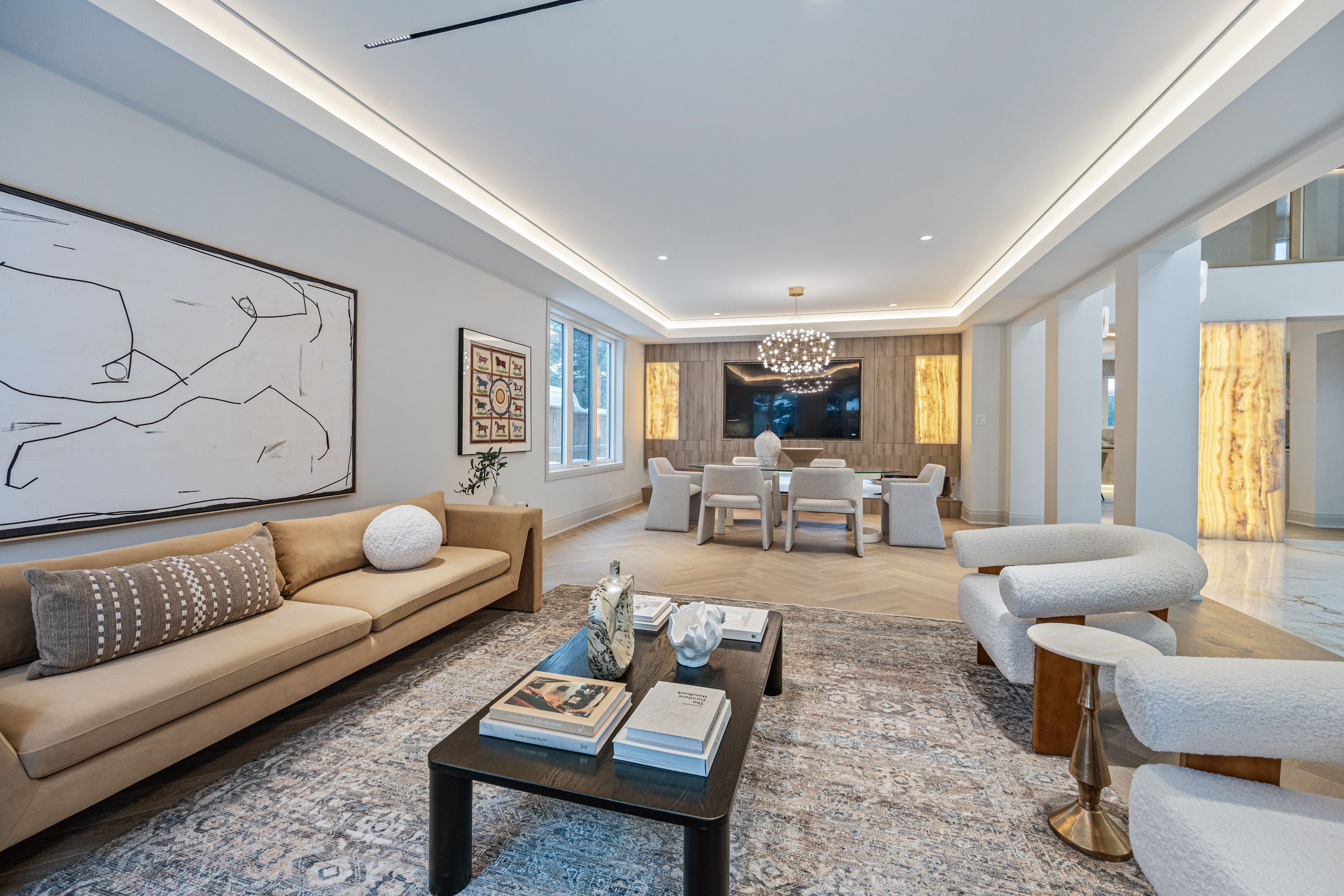 Luxurious Detached Home in Prestigious York Mills / St. AndrewsNestled in the highly sought-after York Mills / St. Andrews neighbourhood, this exceptional detached residence showcases outstanding craftsmanship and refined modern elegance throughout.Step into the grand foyer featuring breathtaking porcelain slab flooring, a dramatic 25-foot ceiling, and a stunning skylight that fills the space with natural light. The expansive living room is highlighted by a sleek, contemporary rotating TV feature wall - a true statement piece.The designer kitchen is a showstopper, appointed with porcelain slab countertops, premium stainless steel appliances, and sophisticated finishes. Hardwood flooring flows seamlessly throughout the home, complemented by a custom-built staircase that enhances the property's modern aesthetic.The second floor offers five spacious bedrooms, each with its own private ensuite, providing ultimate comfort and privacy. The luxurious primary retreat features double-door entry, a custom walk-in closet with built-in shelving, and a spa-inspired 6-piece ensuite.The fully finished walk-up basement includes a nanny suite, sauna, wet bar, and a large recreation room - ideal for extended family living and entertaining.This exceptional home is loaded with exquisite details, high-end finishes, and quality upgrades throughout.Conveniently located close to top-rated schools, shops, York Mills Subway Station, and with easy access to Highway 401.A rare offering in one of Toronto's most prestigious communities.