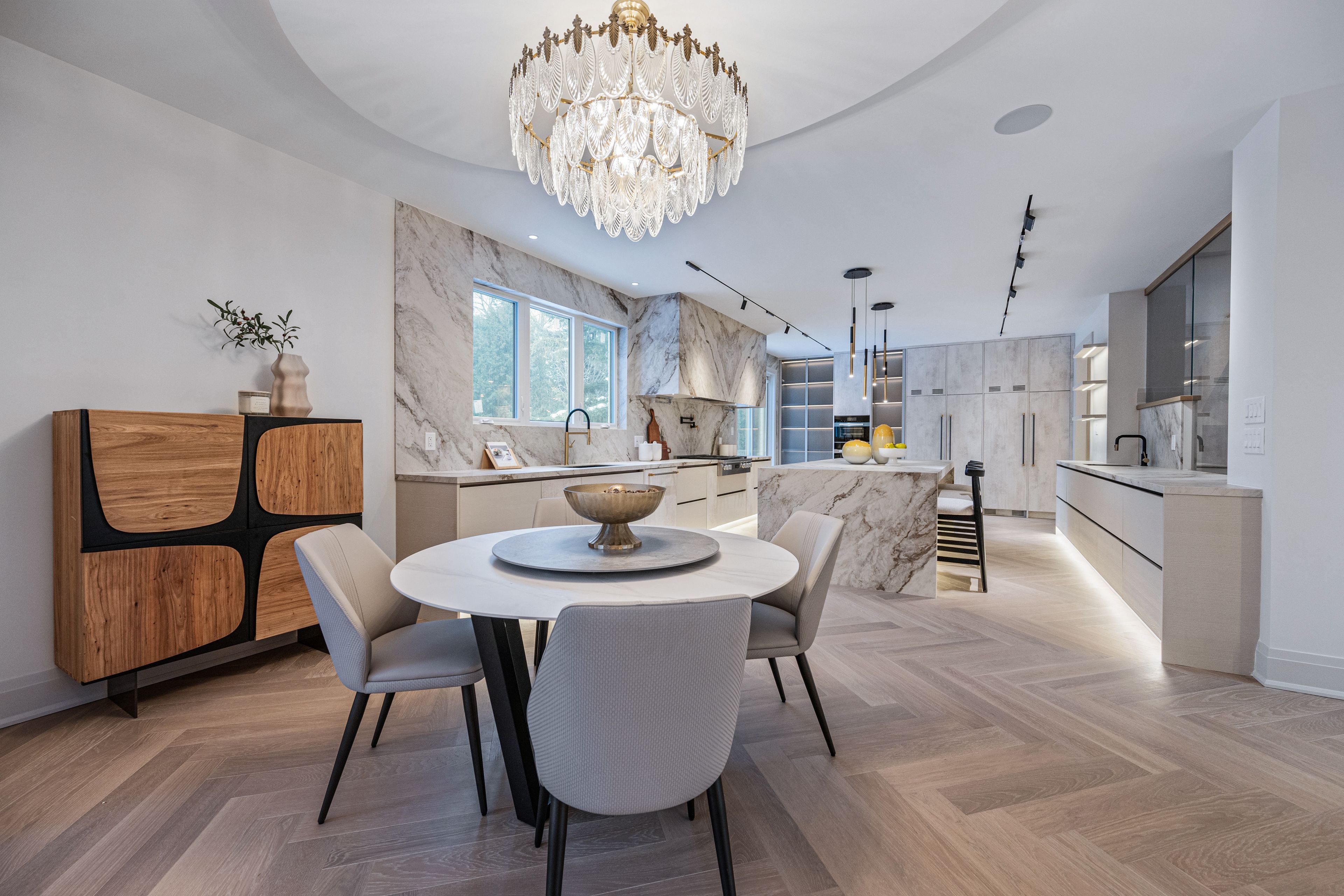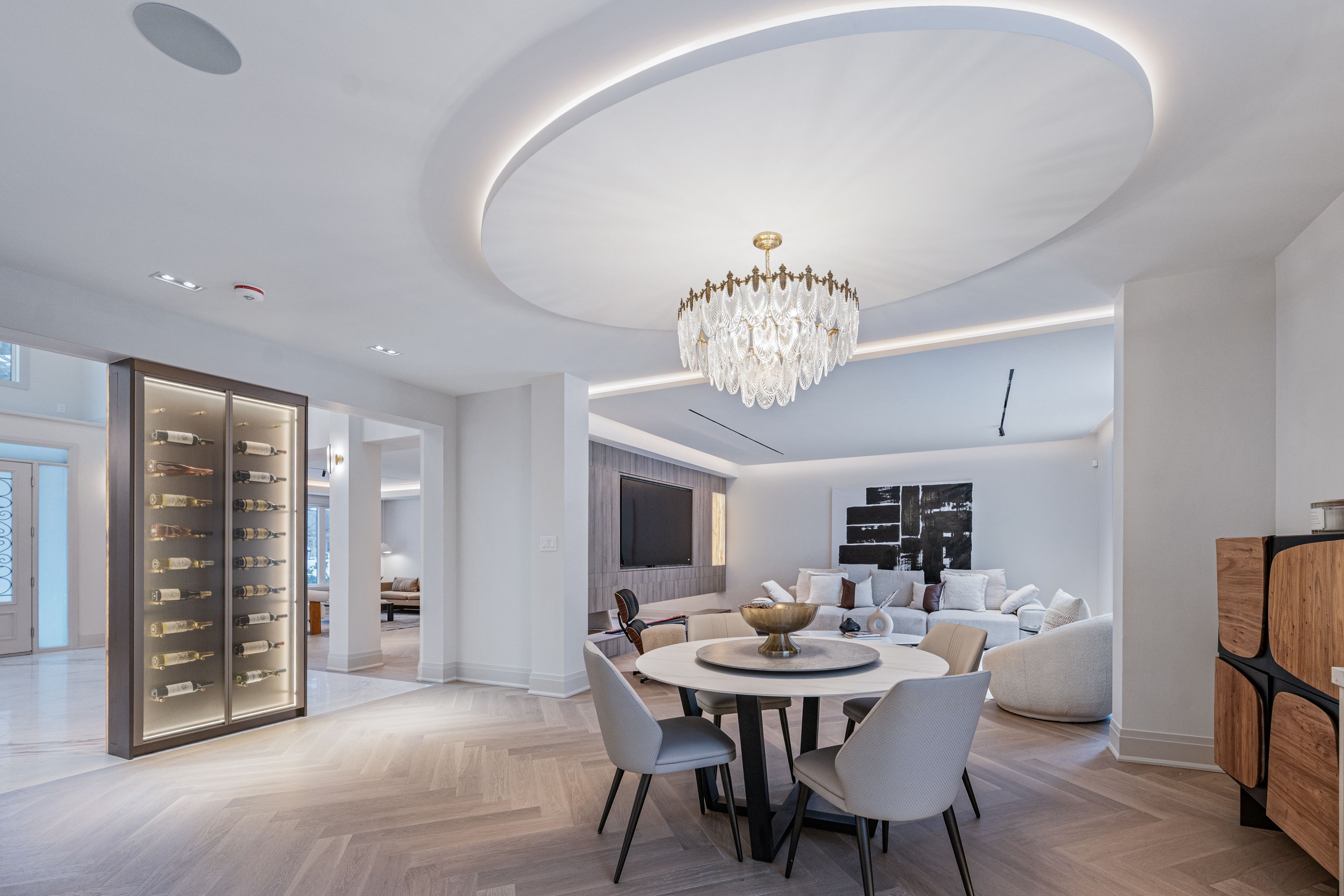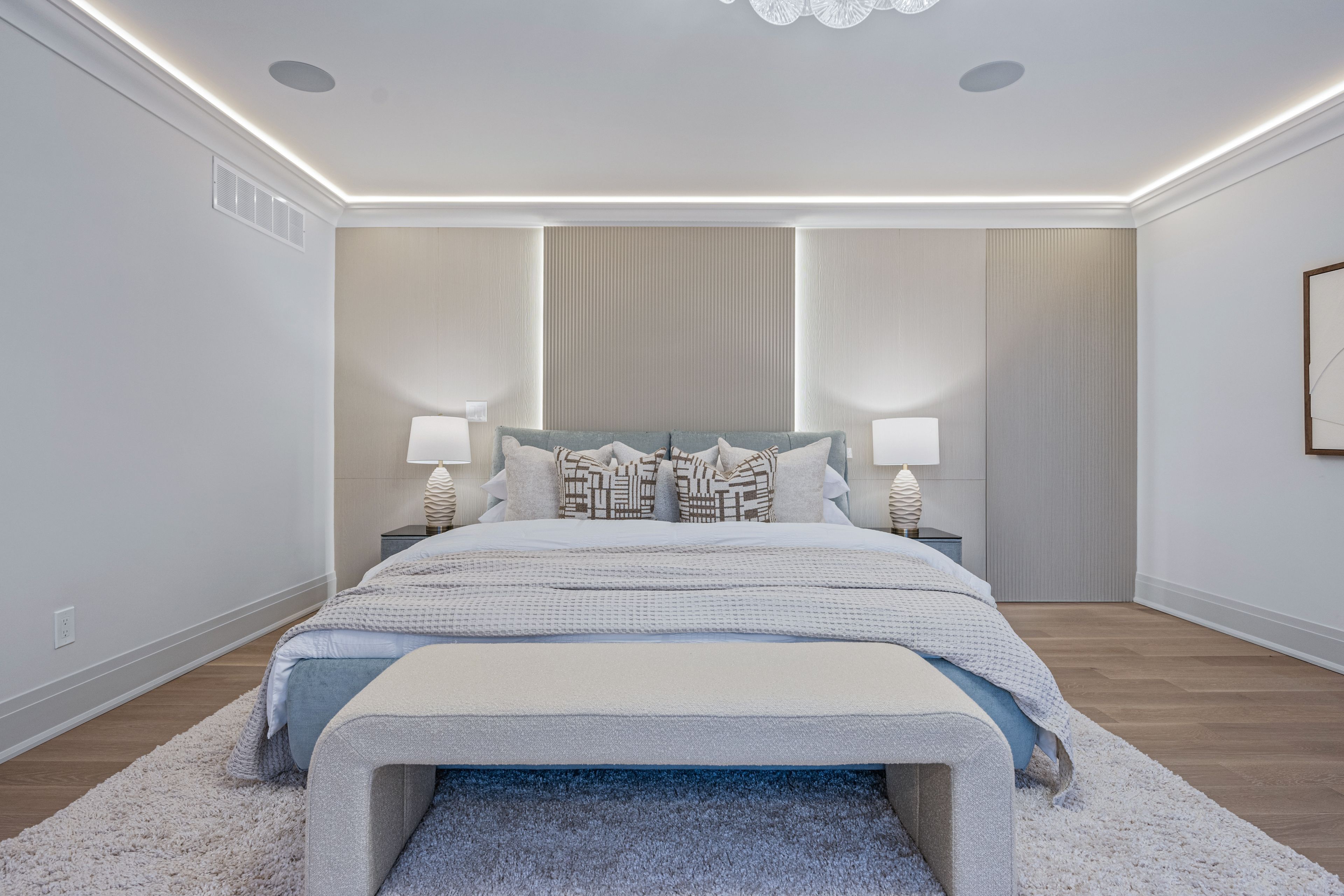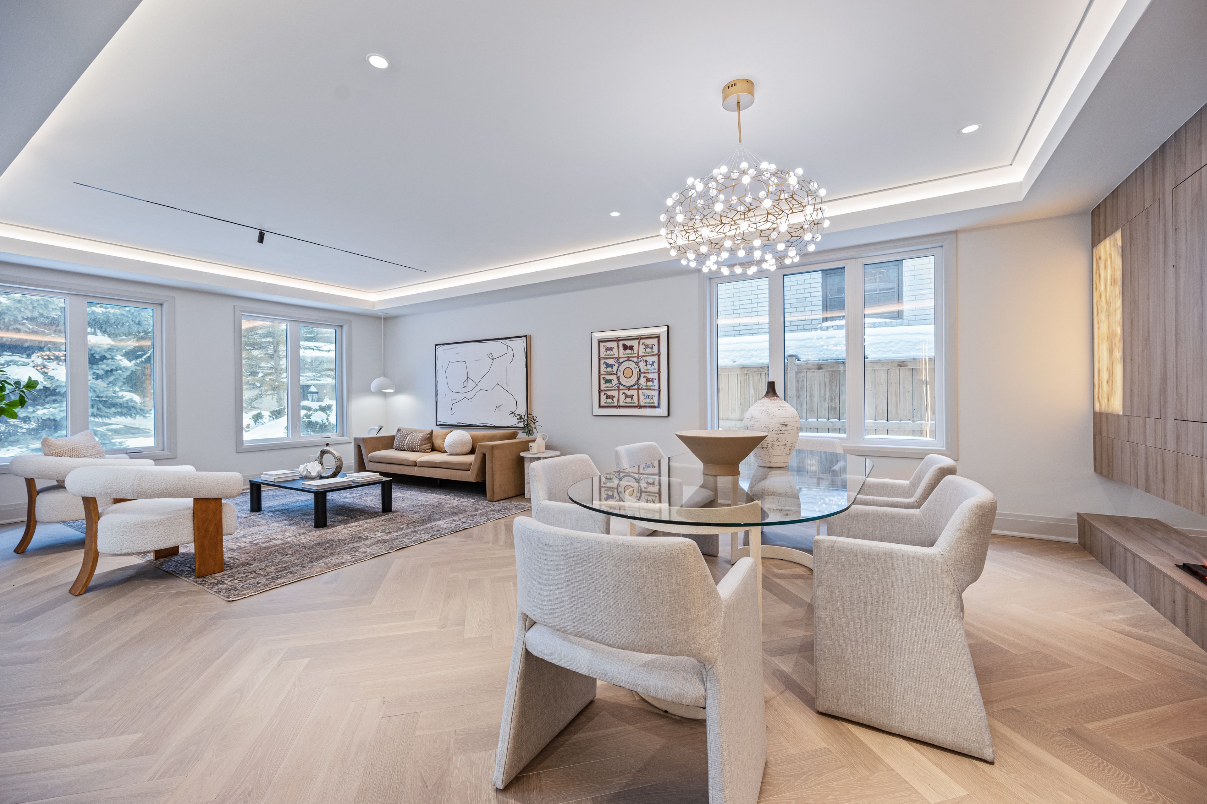 Luxurious Detached Home in Prestigious York Mills / St. AndrewsNestled in the highly sought-after York Mills / St. Andrews neighbourhood, this exceptional detached residence showcases outstanding craftsmanship and refined modern elegance throughout.Step into the grand foyer featuring breathtaking porcelain slab flooring, a dramatic 25-foot ceiling, and a stunning skylight that fills the space with natural light. The expansive living room is highlighted by a sleek, contemporary rotating TV feature wall - a true statement piece.The designer kitchen is a showstopper, appointed with porcelain slab countertops, premium stainless steel appliances, and sophisticated finishes. Hardwood flooring flows seamlessly throughout the home, complemented by a custom-built staircase that enhances the property's modern aesthetic.The second floor offers five spacious bedrooms, each with its own private ensuite, providing ultimate comfort and privacy. The luxurious primary retreat features double-door entry, a custom walk-in closet with built-in shelving, and a spa-inspired 6-piece ensuite.The fully finished walk-up basement includes a nanny suite, sauna, wet bar, and a large recreation room - ideal for extended family living and entertaining.This exceptional home is loaded with exquisite details, high-end finishes, and quality upgrades throughout.Conveniently located close to top-rated schools, shops, York Mills Subway Station, and with easy access to Highway 401.A rare offering in one of Toronto's most prestigious communities.