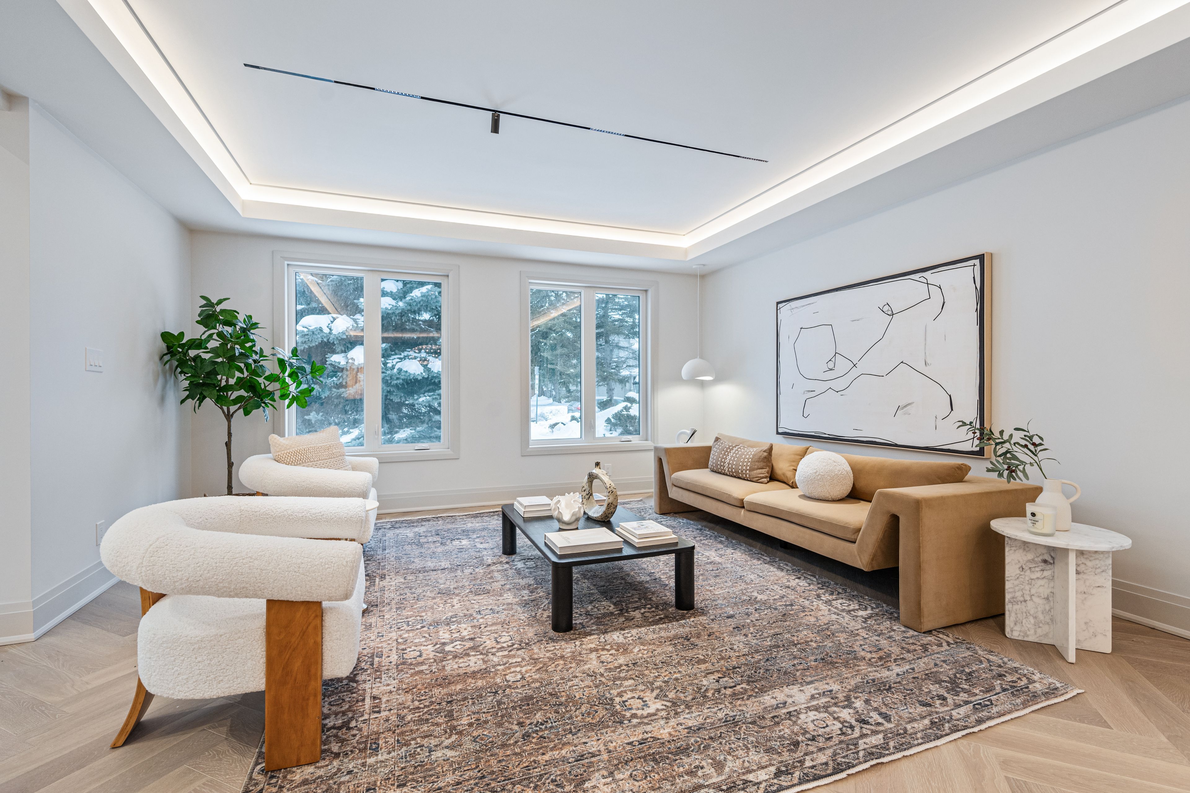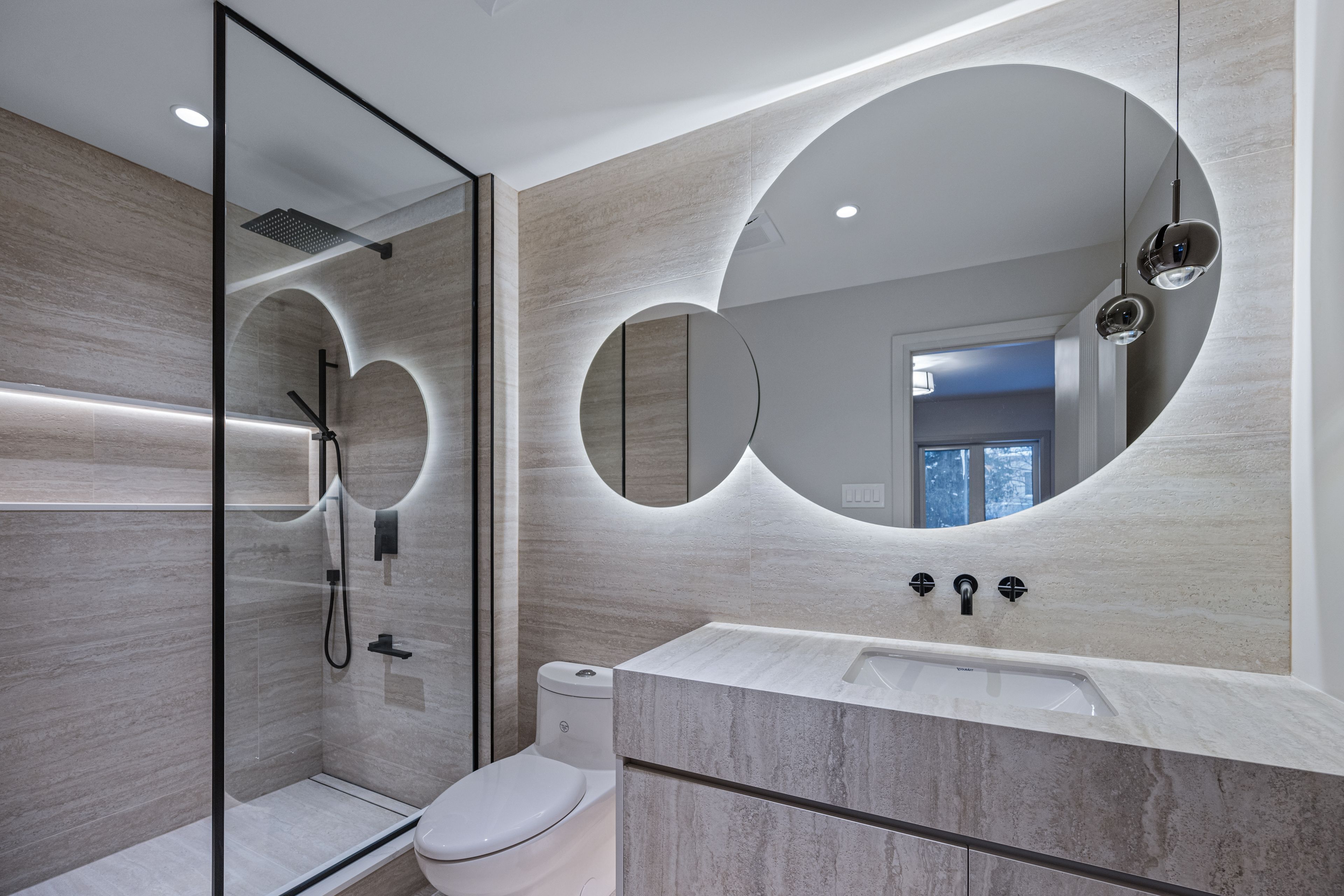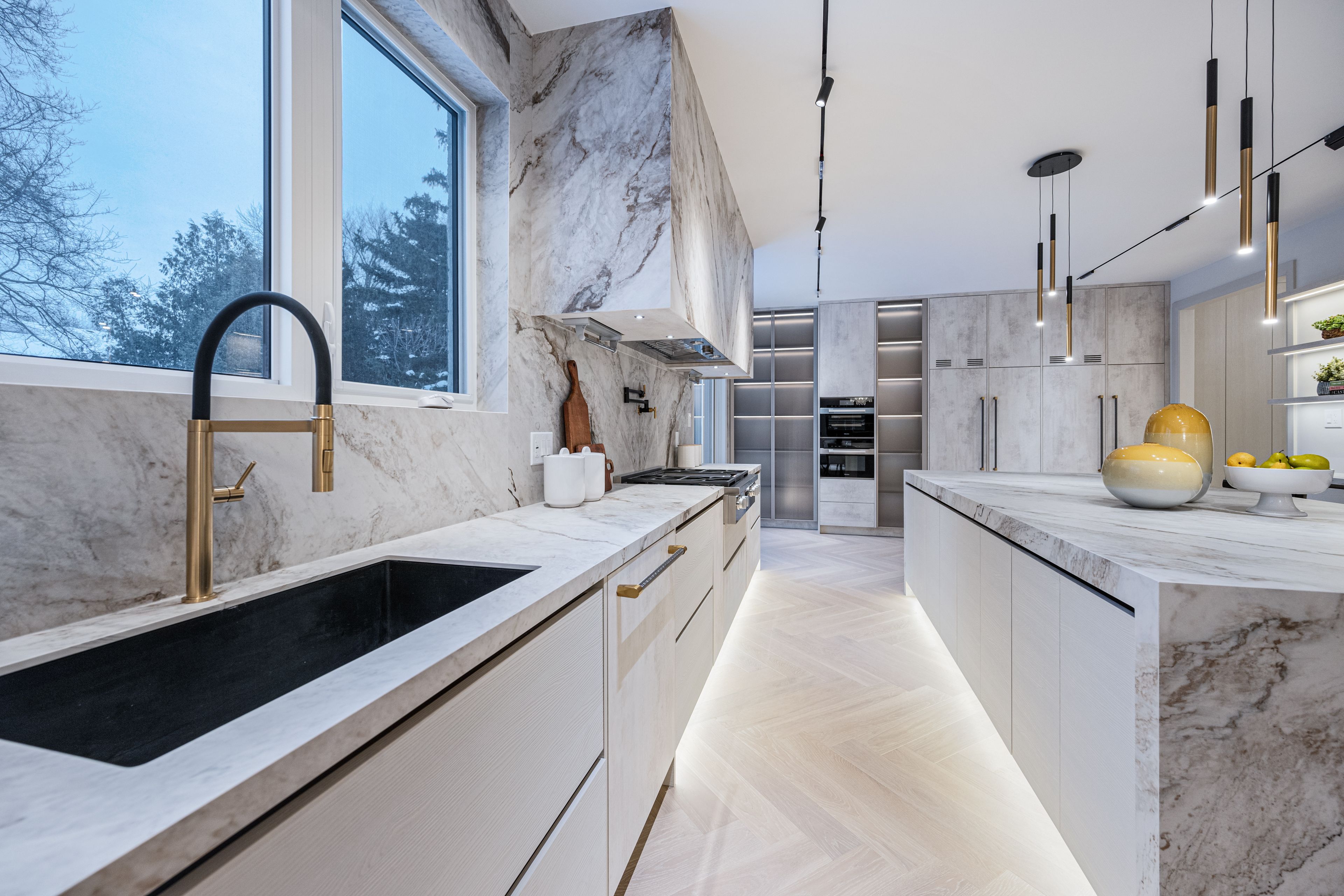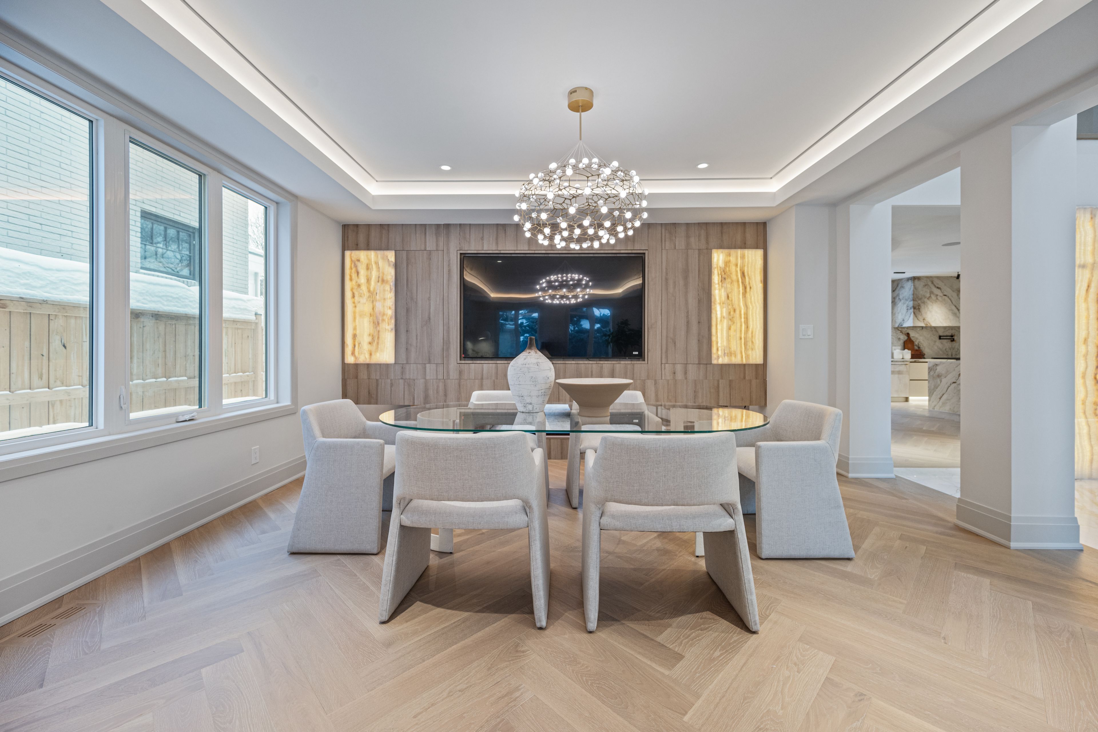 Luxurious Detached Home in Prestigious York Mills / St. AndrewsNestled in the highly sought-after York Mills / St. Andrews neighbourhood, this exceptional detached residence showcases outstanding craftsmanship and refined modern elegance throughout.Step into the grand foyer featuring breathtaking porcelain slab flooring, a dramatic 25-foot ceiling, and a stunning skylight that fills the space with natural light. The expansive living room is highlighted by a sleek, contemporary rotating TV feature wall - a true statement piece.The designer kitchen is a showstopper, appointed with porcelain slab countertops, premium stainless steel appliances, and sophisticated finishes. Hardwood flooring flows seamlessly throughout the home, complemented by a custom-built staircase that enhances the property's modern aesthetic.The second floor offers five spacious bedrooms, each with its own private ensuite, providing ultimate comfort and privacy. The luxurious primary retreat features double-door entry, a custom walk-in closet with built-in shelving, and a spa-inspired 6-piece ensuite.The fully finished walk-up basement includes a nanny suite, sauna, wet bar, and a large recreation room - ideal for extended family living and entertaining.This exceptional home is loaded with exquisite details, high-end finishes, and quality upgrades throughout.Conveniently located close to top-rated schools, shops, York Mills Subway Station, and with easy access to Highway 401.A rare offering in one of Toronto's most prestigious communities.