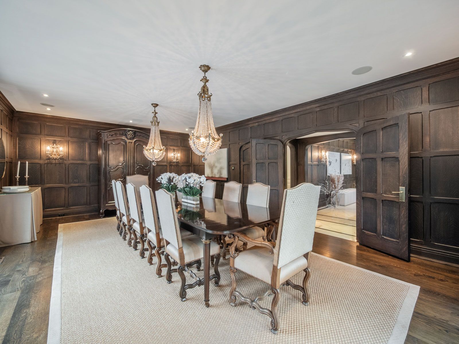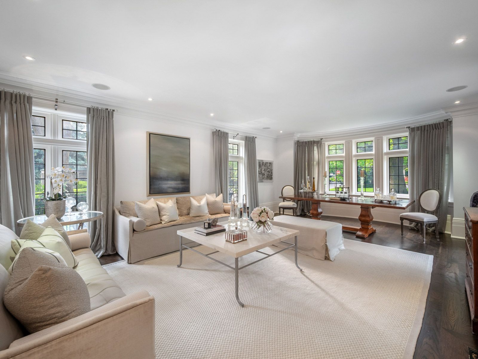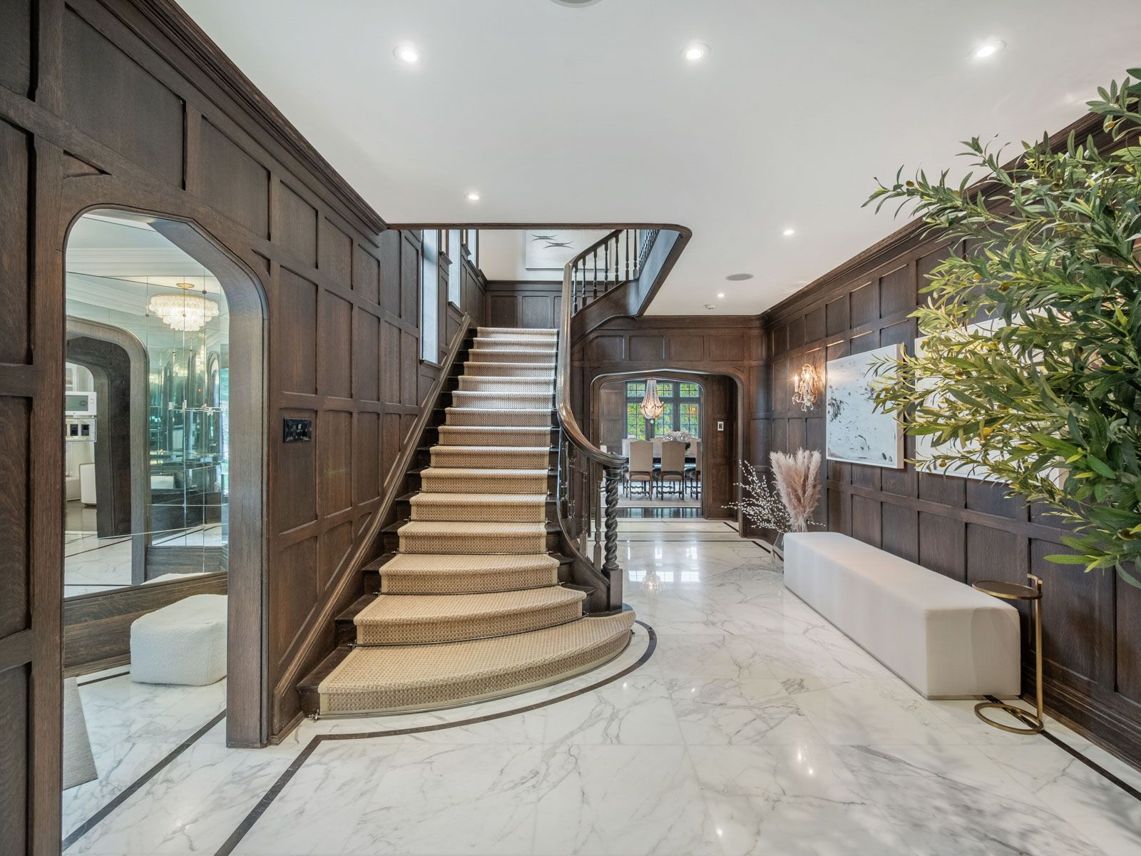 This landmark Tudor residence is located on one of the most prestigious streets in Forest Hill South. Owned by only two families since its original construction, the home has been taken back to the studs and redesigned with an uncompromising commitment to quality. Every element has been elevated blending timeless architectural charm with refined, modern finishes. Offering over 5,000 sq.ft. above grade (plus a fully finished lower level), the home opens with a grand marble-clad foyer framed by classic wood-panelled walls. The main level includes formal living and family rooms, both with gas fireplaces, and an entertainers dream kitchen featuring marble countertops and backsplash, gas-burning stove, oversized island, and top-tier built-in appliances. The formal dining room comfortably seats 12 and connects seamlessly to a private, landscaped backyard terrace. The second level is anchored by a tranquil primary suite with dual walk-in closets, a spa-inspired five-piece ensuite, and a gas fireplace. A second bedroom offers its own ensuite, dressing area, and an adjacent home office. The third floor features three more bedrooms with custom built-ins and a spacious family/rec room. The lower level includes a nanny/in-law suite, custom wine cellar, gym, laundry, storage, and a mudroom with direct access to the built-in two-car garage and private side entrance. Located just moments from Forest Hill Village, top-rated schools, and the area's finest parks and amenities, this is a rare opportunity to own one of Toronto's most iconic and sophisticated homes.