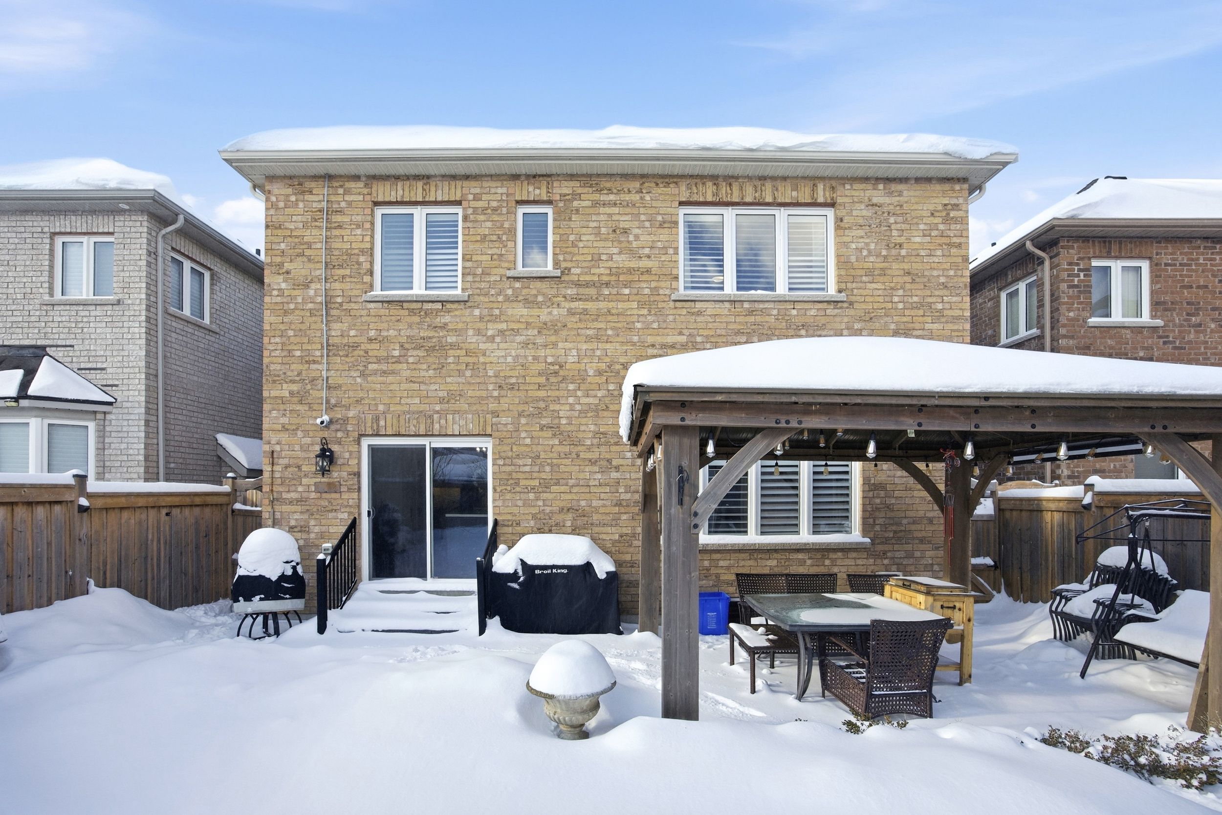 Welcome to this stunning 4+2 bedroom, 5-bathroom detached home with a double car garage, thoughtfully upgraded and impeccably maintained in one of North Oshawa's most desirable family-friendly neighborhoods. Offering over $200,000 in quality enhancements, this home seamlessly blends elegance, comfort, and functionality. Step inside to find rich birch hardwood flooring throughout, complemented by sophisticated waffle ceilings with crown molding and extensive pot lighting that creates a warm, upscale ambiance. The main and lower levels each feature beautifully appointed kitchens with granite countertop on the main and quartz in the second, both with stainless steel appliances-ideal for extended family living or entertaining. The basement comes equipped with a 2 bedroom in-law suite with its own separate entrance and en-suite laundry facilities for added privacy. Two gas fireplaces add both charm and comfort, making the home inviting year-round. Additional features include central vacuum with a convenient kitchen kick plate and a thoughtfully designed layout that maximizes both living and storage space. Outdoors, enjoy a beautifully landscaped backyard complete with a patio set and gazebo-perfect for relaxing or hosting guests in a private, serene setting. Ideally located close to excellent schools, including Jeanne Sauvé for French immersion, as well as shopping, transit, and all essential amenities. This exceptional property offers refined living in a prime location and must be seen to be fully appreciated.