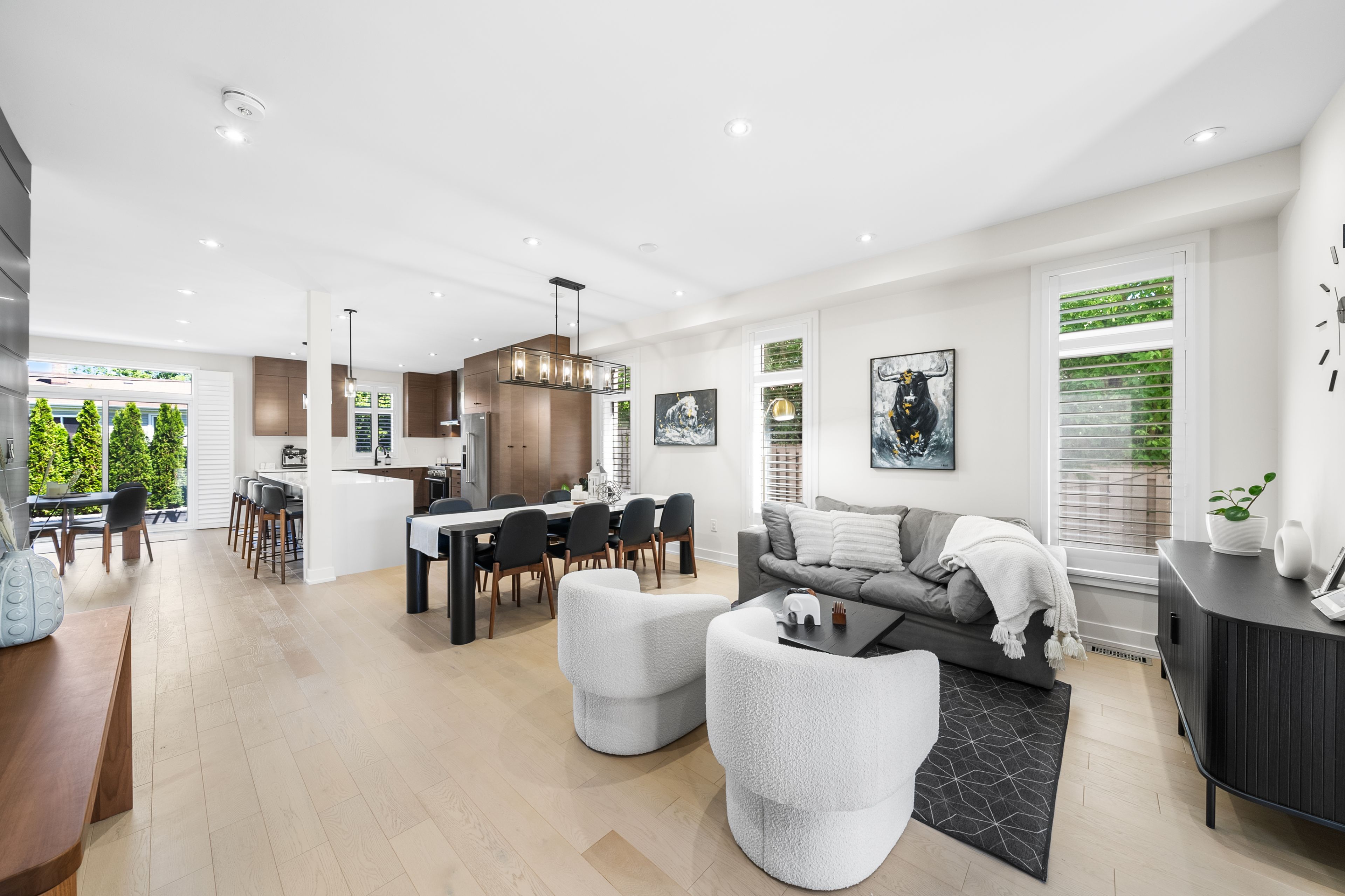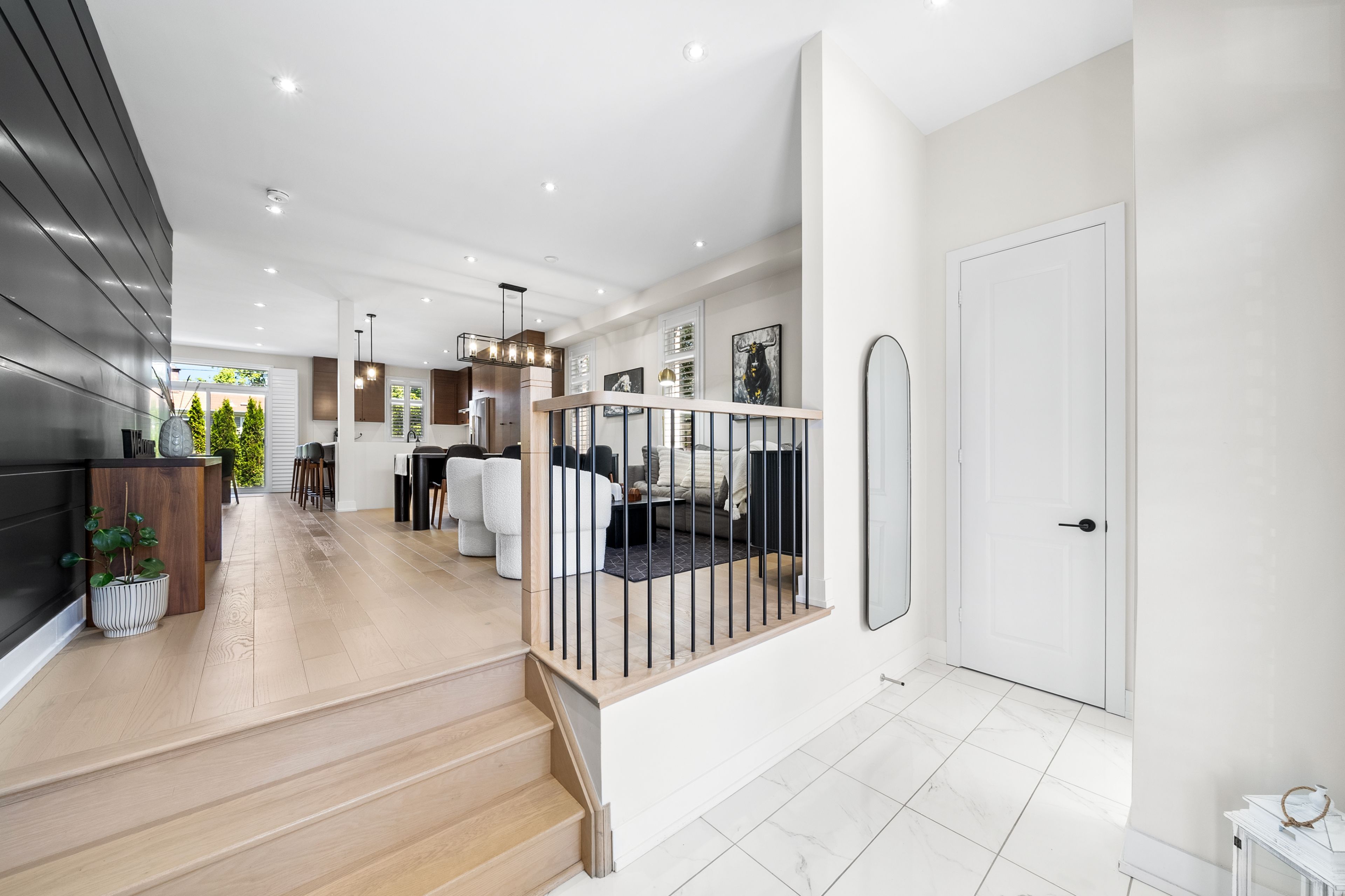 Welcome to your exquisite modern oasis just minutes from Frenchman's Bay Marina. This impeccably designed home has undergone many upgrades & improvements since it was built, showcasing unparalleled craftsmanship and luxury. Step inside to discover the elegance of red oak wood floors that grace the expansive open-plan living areas, enhancing the sleek contemporary ambiance. The gourmet kitchen is a chef's dream, equipped with top-of-the-line stainless steel appliances and complemented by premium cabinetry and quartz countertops. Entertain effortlessly in the spacious family room, featuring a cozy gas fireplace framed by custom built-in shelves. With five bedrooms, including a primary suite retreat, and four bathrooms plus a convenient 2-piece washroom for guests, this home effortlessly combines style with practicality.Upstairs, a dedicated laundry room adds convenience, while a backyard separate entrance offers potential for a home office or guest suite. A two-car garage provides ample storage, ensuring every need is met.Set in a coveted location, enjoy easy access to waterfront activities, parks, and local amenities. This home represents the epitome of modern luxury living with too many upgrades to list.