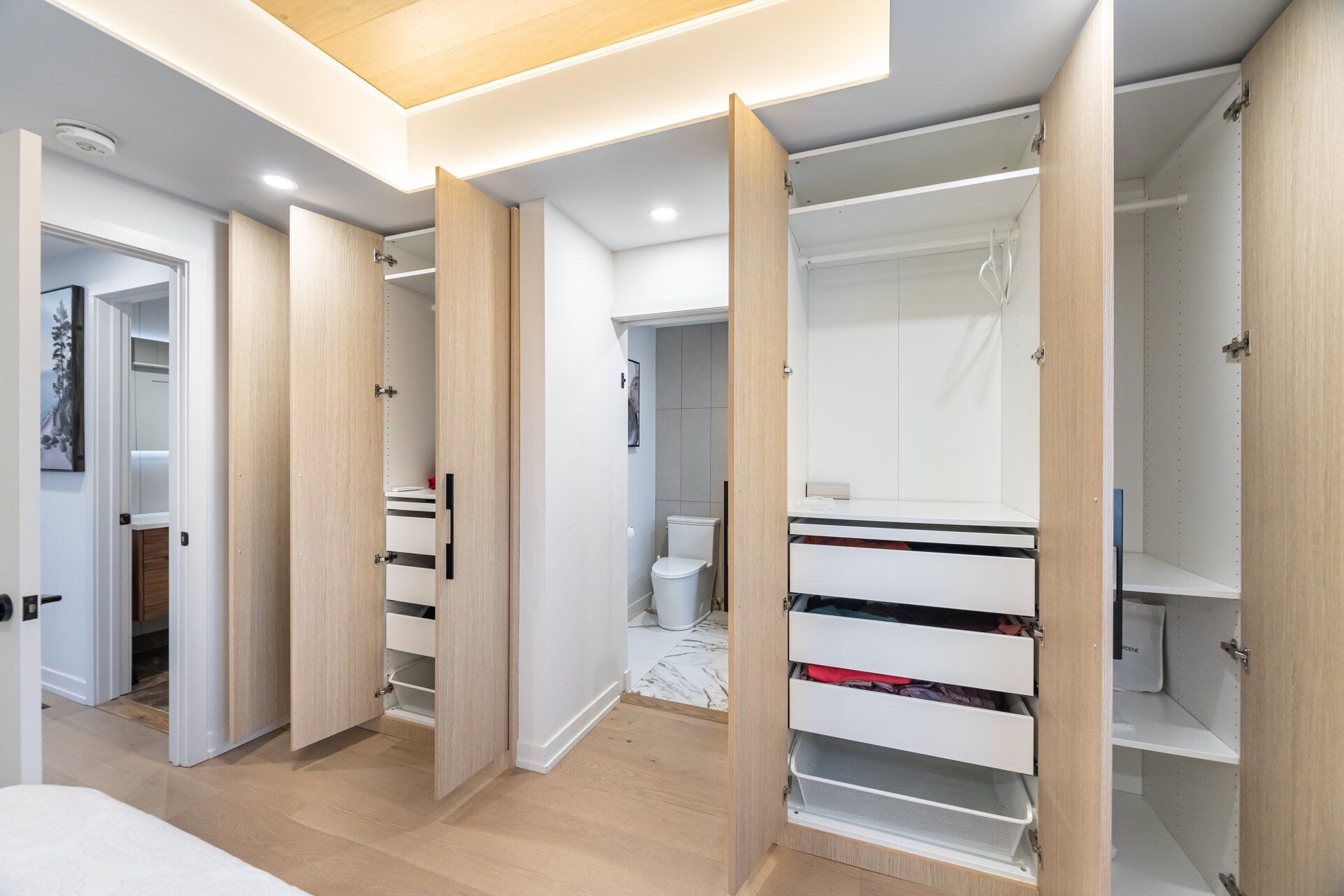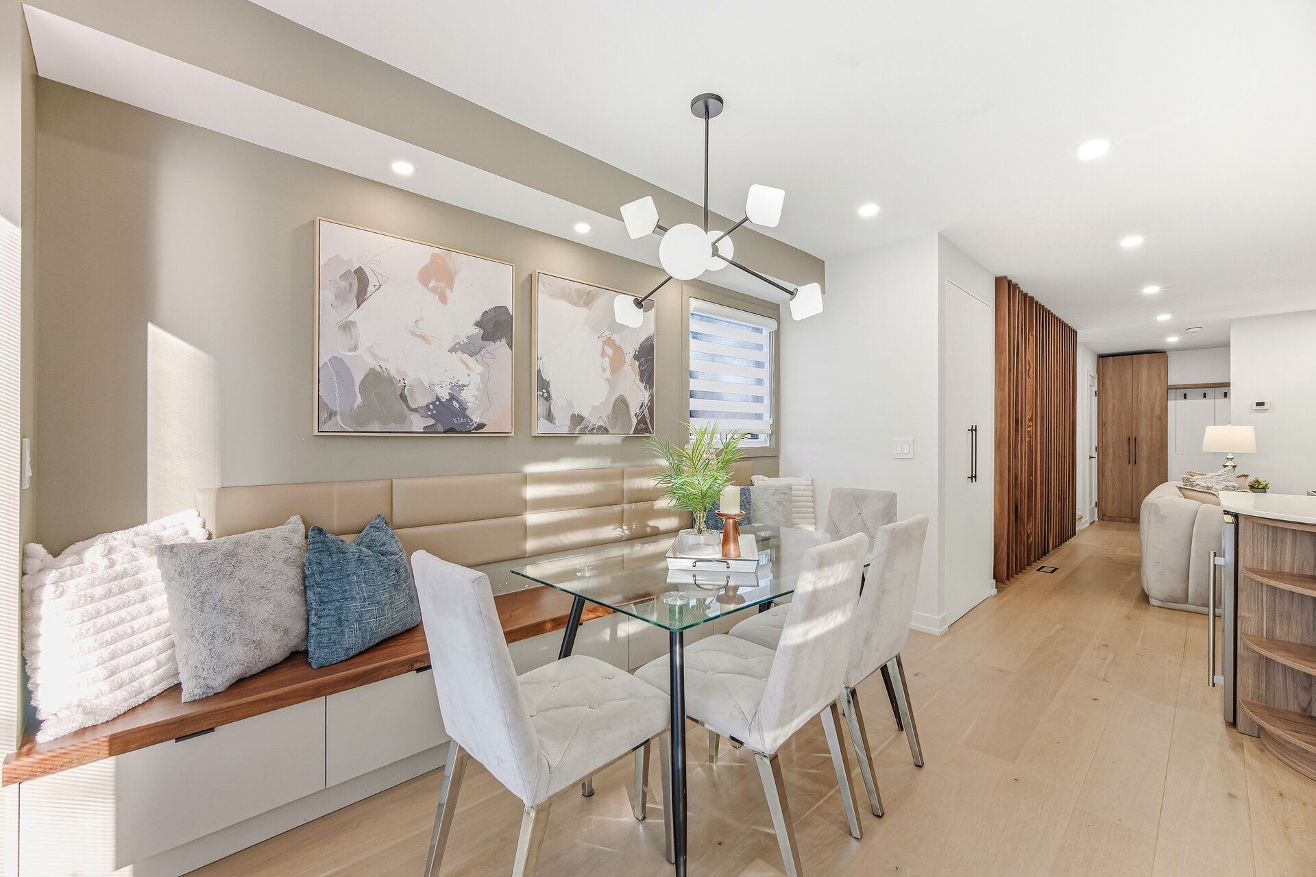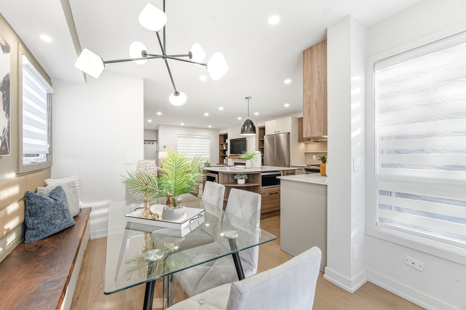 Welcome to this beautifully designed home which has been professionally renovated from top to bottom with high-quality materials, meticulous detail, and skilled craftsmanship. The functional main floor has too many upgrades to list. The chef's kitchen features quartz island and pantry, high end Franke (Swiss) sink and flush under-mount lighting. The Dining space features walnut bench seating, LED and accent lighting, and walk-out to the large yard. Heated floors are found in the entrance foyer and the main floor powder room. White oak hardwood floors run throughout the home; .The Living room boasts a gas fireplace, built-in shelving, and a stunning walnut beam feature wall. The second level offers 3 bedrooms, including a primary with his & hers custom built closets, a luxurious 3-piece ensuite & heated floors. The finished basement has an additional living room, bedroom and a 3 pc bath.