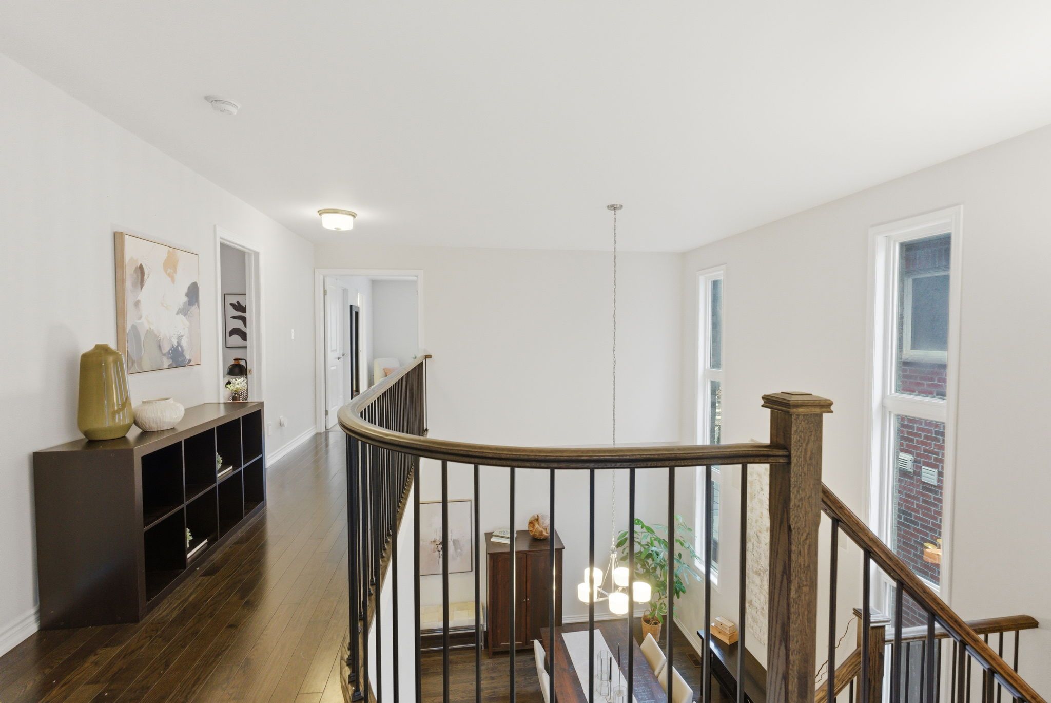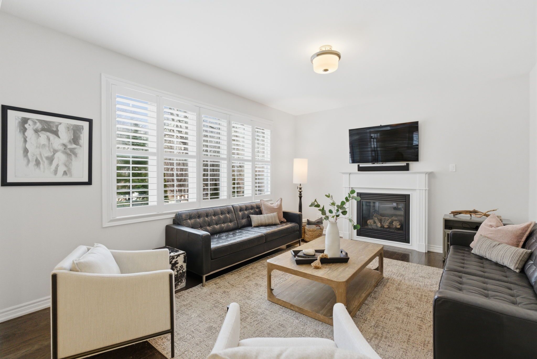 Welcome to this beautiful home nestled in a quiet, family-friendly neighbourhood with no neighbours behind, offering privacy and a peaceful setting. This home impresses with its inviting curb appeal and thoughtfully designed interior, featuring hardwood flooring and California shutters throughout. Step inside to a welcoming main floor where a private front office overlooks the front yard, complete with a French door and built-in storage. The elegant dining room features large windows and soaring ceiling height. At the heart of the home is the spacious family-sized kitchen, designed for gathering and functionality. It features an extra large centre island with a breakfast bar that comfortably seats six, stainless steel appliances, a custom backsplash and a walkout to the backyard. The adjoining living room offers a warm and inviting space with a cozy fireplace, creating the perfect place to relax. The primary bedroom provides a peaceful retreat with broadloom flooring, a walk-in closet and a luxurious 5-piece ensuite. Two additional bedrooms offer double closets and share a convenient 5-piece semi-ensuite. A versatile loft area with hardwood flooring provides the perfect space for a study nook and features a walkout to a private balcony. The upper-level laundry room adds everyday convenience. The finished lower level extends the living space with a large recreation room featuring broadloom flooring, a window for natural light, and a full 4-piece bathroom. An additional bedroom with a closet and window makes an ideal guest room. Step outside to a private backyard with no neighbours behind-an ideal setting for relaxing or entertaining. Interior and exterior Sonos speakers allow you to enjoy music throughout the home and yard. Two natural gas connections-one on the porch for a barbecue and another at the rear of the yard for a gas outdoor fireplace make outdoor gatherings effortless. Set in a quiet, family-friendly community, this home blends comfort and functionality.