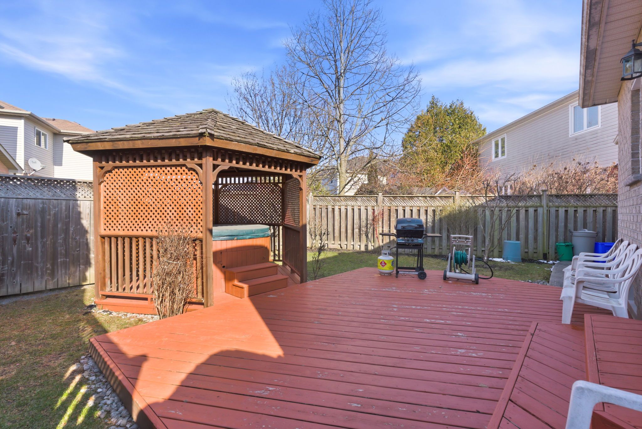 Welcome to the highly desirable and quiet community of Bowmanville, where you'll find this lovingly cared-for all-brick raised bungalow. The home offers an open-concept layout with a bright eat-in kitchen, ample storage, and a walk-out to a private deck and gazebo, ideal for outdoor relaxation. The main floor features a combined living and dining area with California shutters, along with two comfortable bedrooms, including a primary retreat with its own ensuite. The fully finished lower level adds significant living space, complete with luxury vinyl flooring, a 4-piece bathroom, and a third bedroom, previously used as a soundproofed media room. This level offers flexibility for extended family, guests, or a dedicated entertainment space. Additional highlights include an inside entry to a fully insulated and heated garage, and no sidewalks to shovel in the winter. Outside, the backyard is a true standout, featuring a hot tub and professional fencing. Situated on a premium corner lot, the private double driveway accommodates up to five vehicles. Located just steps from nature trails, parks, schools, the local library, and an arts centre, this home offers a balanced lifestyle in an established neighbourhood.