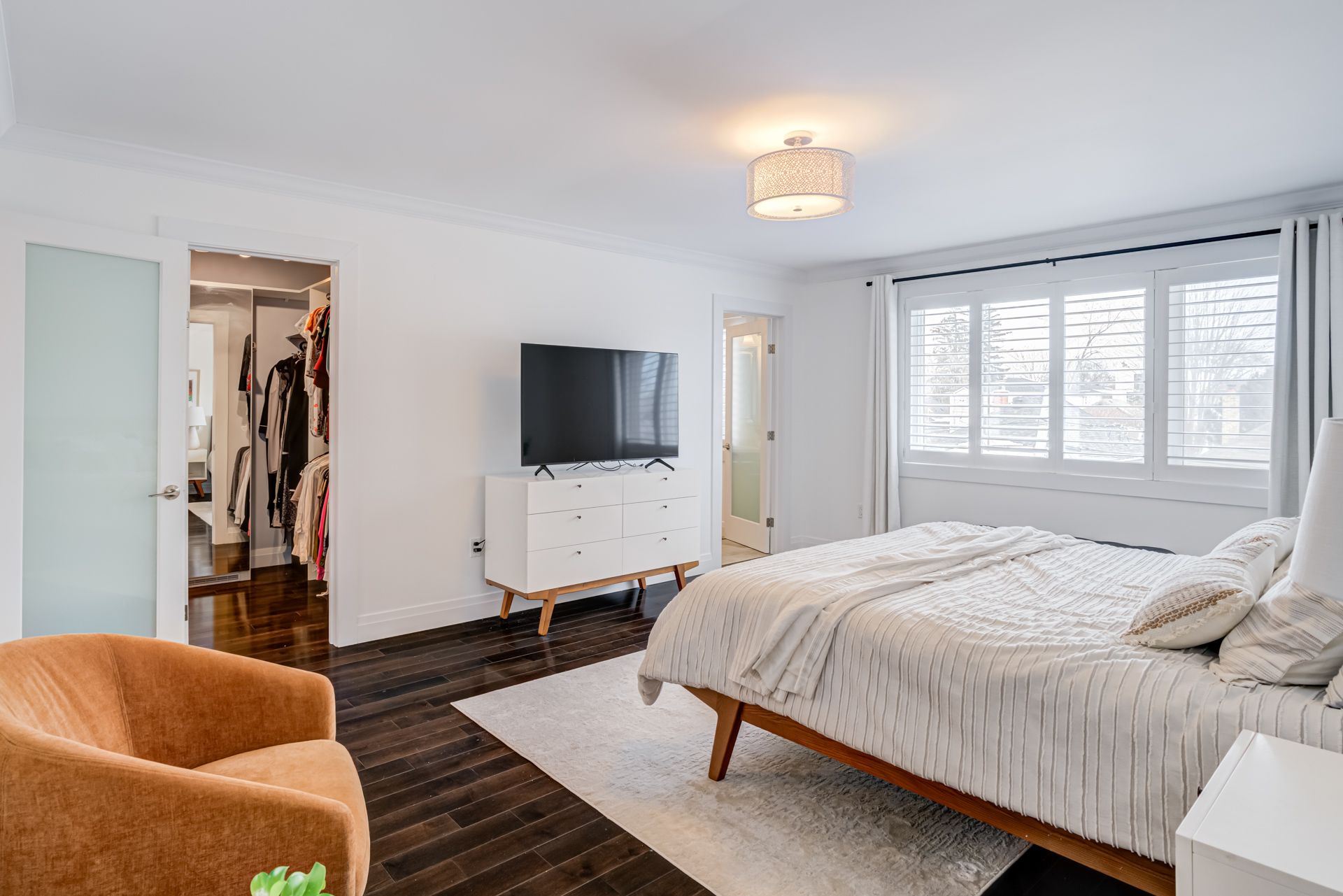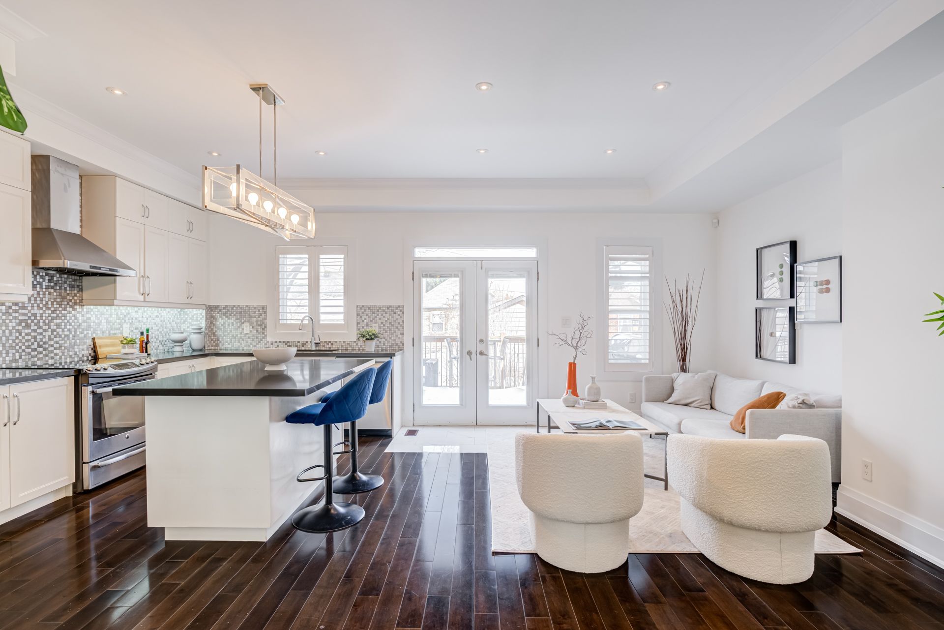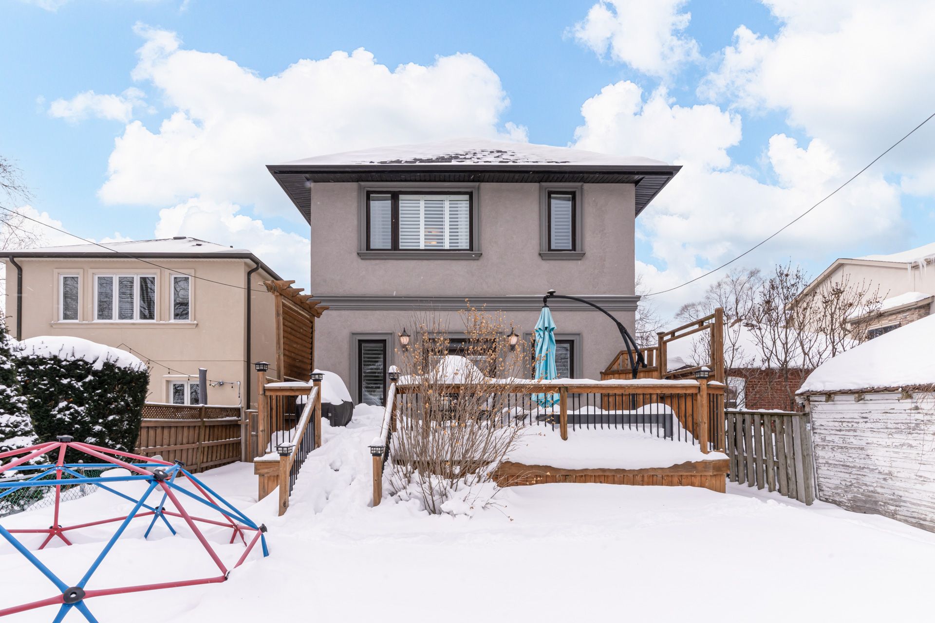 Welcome to this stunning 3+1 bedroom, detached custom-built home in the heart of prime East York. Featuring hardwood floors and pot lights throughout the main and second levels, this home offers both style and functionality. The welcoming foyer boasts tiled floors and a double-door coat closet, along with a convenient 2-piece powder room. The open-concept living and dining areas are filled with natural light from a large picture window overlooking the street. The living room features a cozy fireplace and built-in entertainment center, while the dining area flows seamlessly into the open-concept kitchen and family room. The kitchen is equipped with stainless steel appliances and a large centre island, perfect for everyday living and entertaining. The family room walks out to an oversized deck overlooking a spacious backyard. The second floor offers an oversized primary bedroom complete with a walk-in closet and luxurious 5-piece ensuite. Two additional generously sized bedrooms with large windows and closets share a 4-piece bathroom. The finished lower level features laminate flooring and pot lights throughout, with a large recreation room ideal for entertaining or a children's play area, along with space for a gym and home office. This level also includes a 3-piece bathroom and an additional bedroom with a large window. Enjoy the perks of this family friendly neighbourhood with vibrant shops, restaurants and TTC.