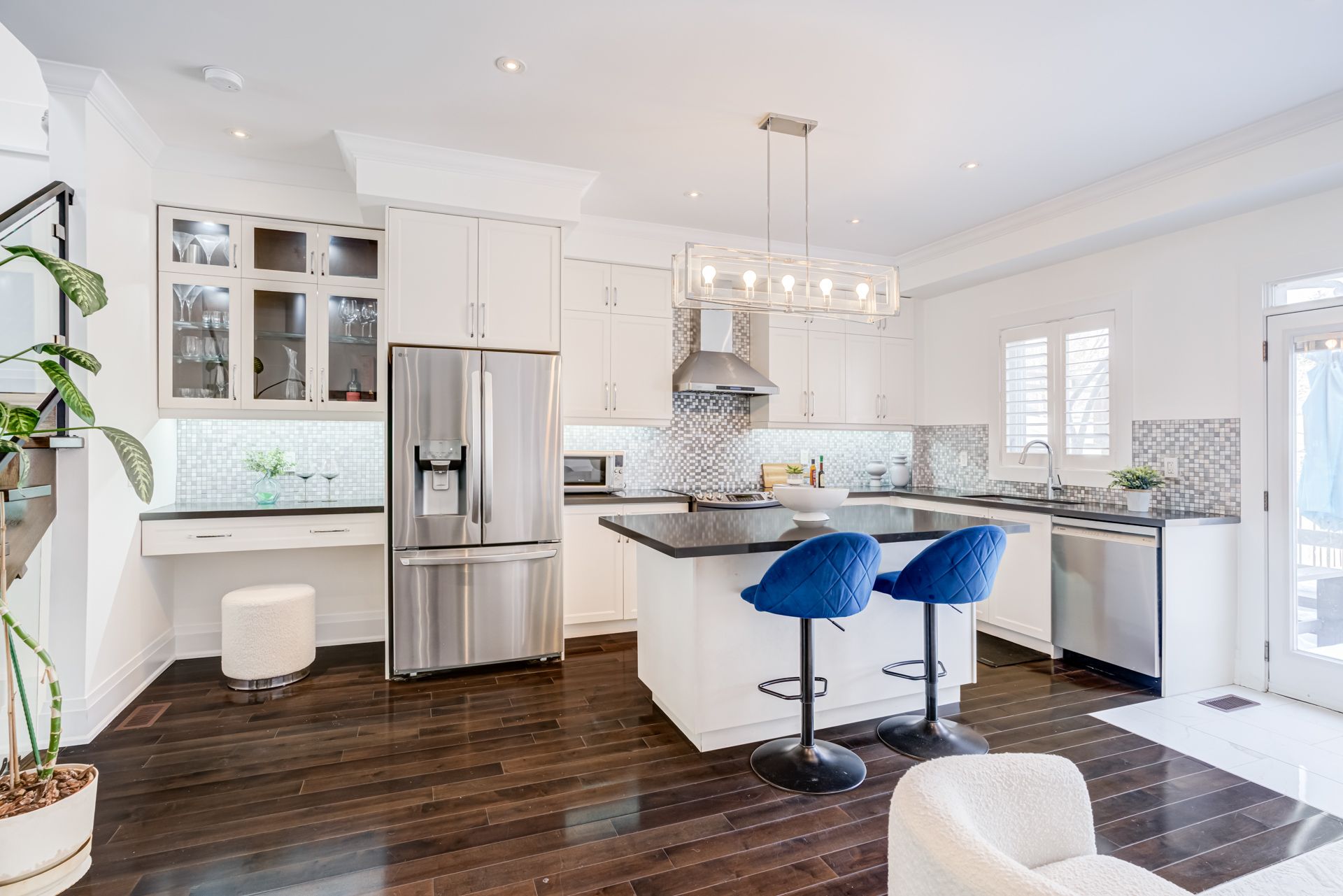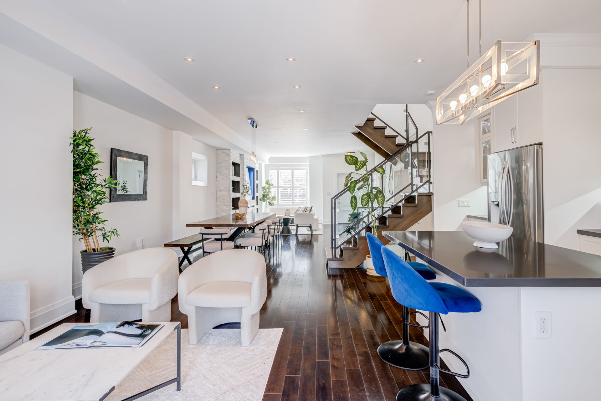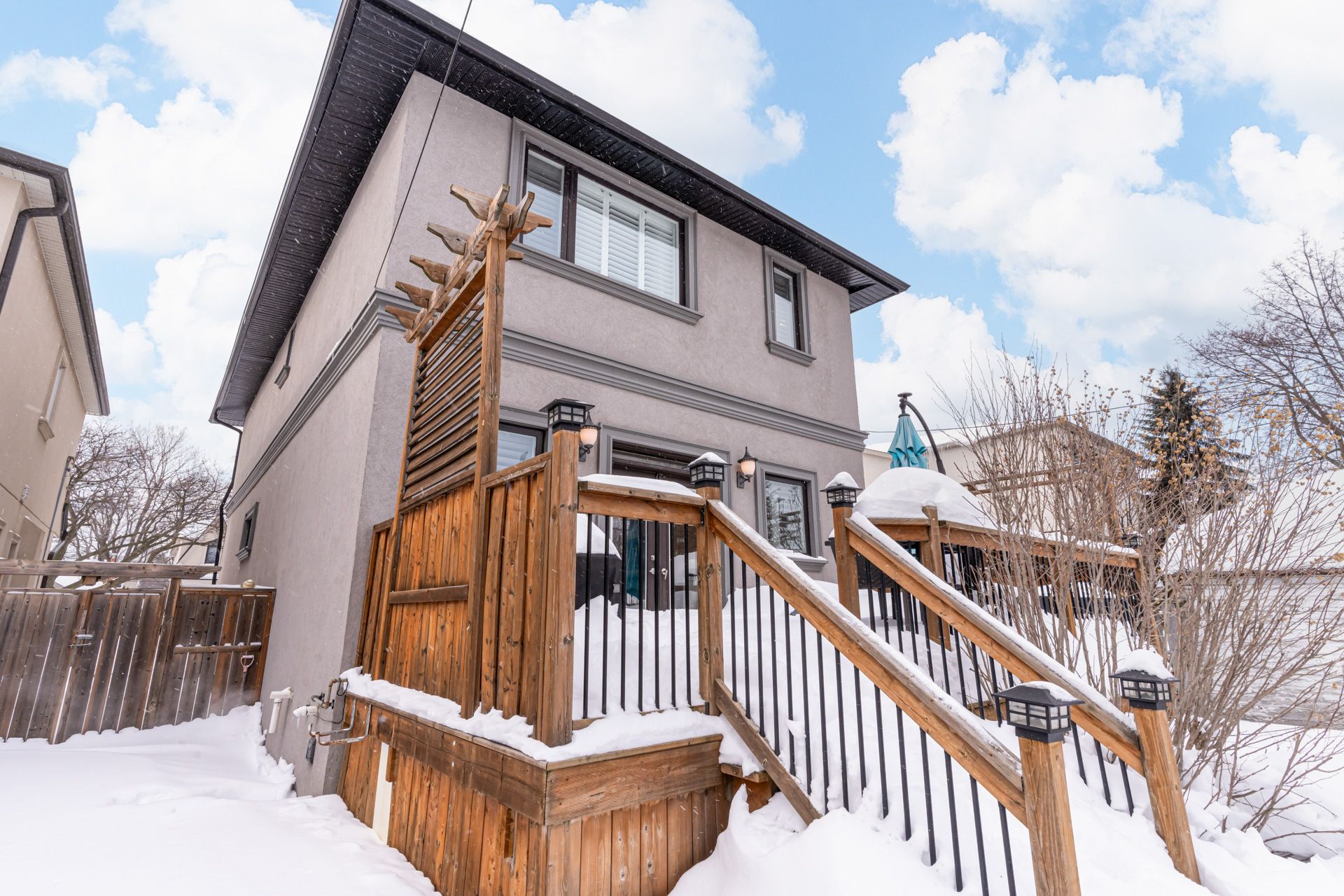 Welcome to this stunning 3+1 bedroom, detached custom-built home in the heart of prime East York. Featuring hardwood floors and pot lights throughout the main and second levels, this home offers both style and functionality. The welcoming foyer boasts tiled floors and a double-door coat closet, along with a convenient 2-piece powder room. The open-concept living and dining areas are filled with natural light from a large picture window overlooking the street. The living room features a cozy fireplace and built-in entertainment center, while the dining area flows seamlessly into the open-concept kitchen and family room. The kitchen is equipped with stainless steel appliances and a large centre island, perfect for everyday living and entertaining. The family room walks out to an oversized deck overlooking a spacious backyard. The second floor offers an oversized primary bedroom complete with a walk-in closet and luxurious 5-piece ensuite. Two additional generously sized bedrooms with large windows and closets share a 4-piece bathroom. The finished lower level features laminate flooring and pot lights throughout, with a large recreation room ideal for entertaining or a children's play area, along with space for a gym and home office. This level also includes a 3-piece bathroom and an additional bedroom with a large window. Enjoy the perks of this family friendly neighbourhood with vibrant shops, restaurants and TTC.