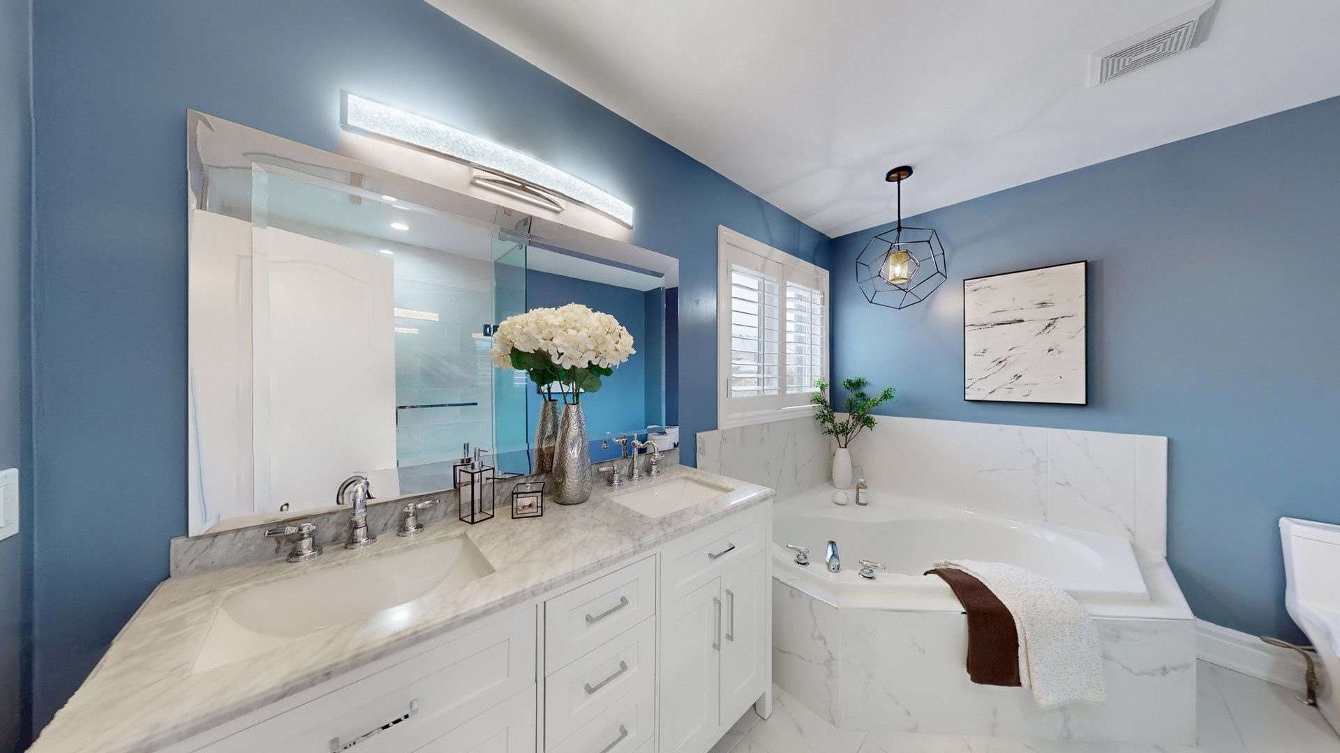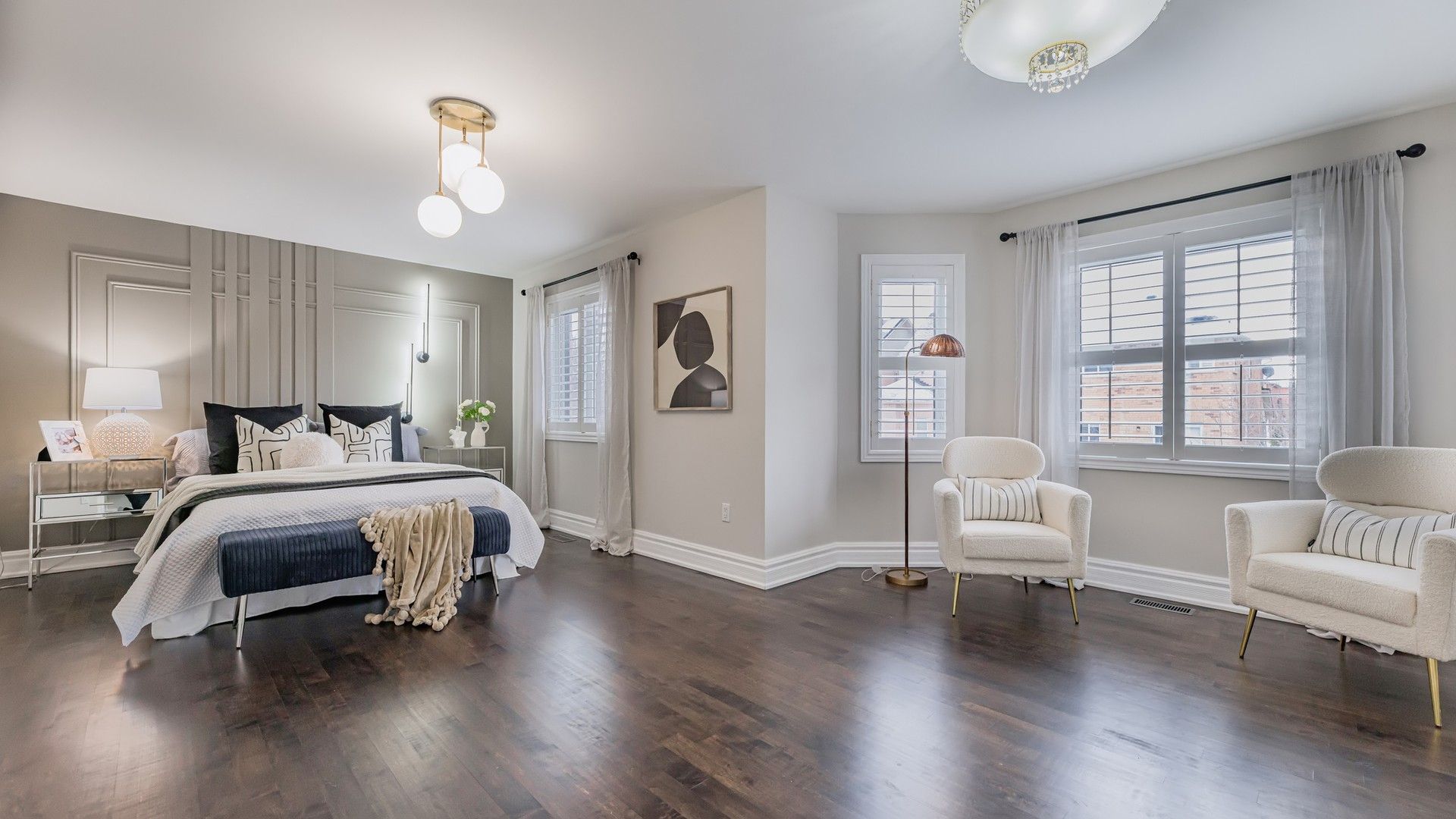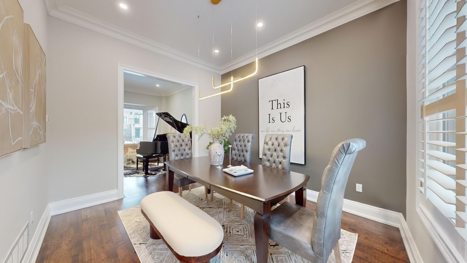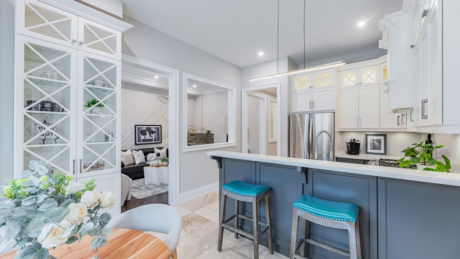 Located in the highly sought-after Lake Wilcox community, this beautifully upgraded home is just a short walk to Lake Wilcox Park, offering 3800sf of total living area, scenic trails, year-round outdoor enjoyment, convenient access to Yonge Street, Highway 404, and nearby GO Transit. The home offers exceptional curb appeal with a stone-paved driveway accommodating three cars side by side, a two-car garage with high ceilings and ample storage, and professionally landscaped front and back yards filled with hydrangeas, roses, and seasonal blooms. The backyard features a lush lawn, an interlocking stone patio, and a stunning 9-foot wooden pergola, creating an ideal summer retreat. Inside, a 72" x 8' fiberglass front door with glass panels opens to a bright main floor with 10-foot smooth ceilings. Marble flooring highlights the foyer, hallway, and kitchen, while solid hardwood floors extend throughout the rest of the level. The first floor includes a living room, dining room with a feature wall, kitchen with breakfast area, family room, office, laundry, and powder room. The kitchen showcases two-tone cabinetry, glass display cabinets with lighting, stone countertops, and a bar-style island. The family room features a covered fireplace and overlooks the garden with climbing rose vines, while the office enjoys a large window. All first-floor interior doors are upgraded to 8-foot-high doors. All windows have been upgraded to energy-efficient triple-pane, gas-filled windows for enhanced insulation and comfort. The second floor offers four bedrooms, all with California shutters. The primary suite features a walk-in closet, sitting area, and a five-piece ensuite with double sinks, a glass shower, and a jetted tub. A crystal chandelier highlights the staircase. The finished basement includes a large bedroom, a three-piece bathroom, an open-concept recreation space, a dedicated home theater with in-wall wiring, laminate flooring throughout, and a spacious cold room for storage.