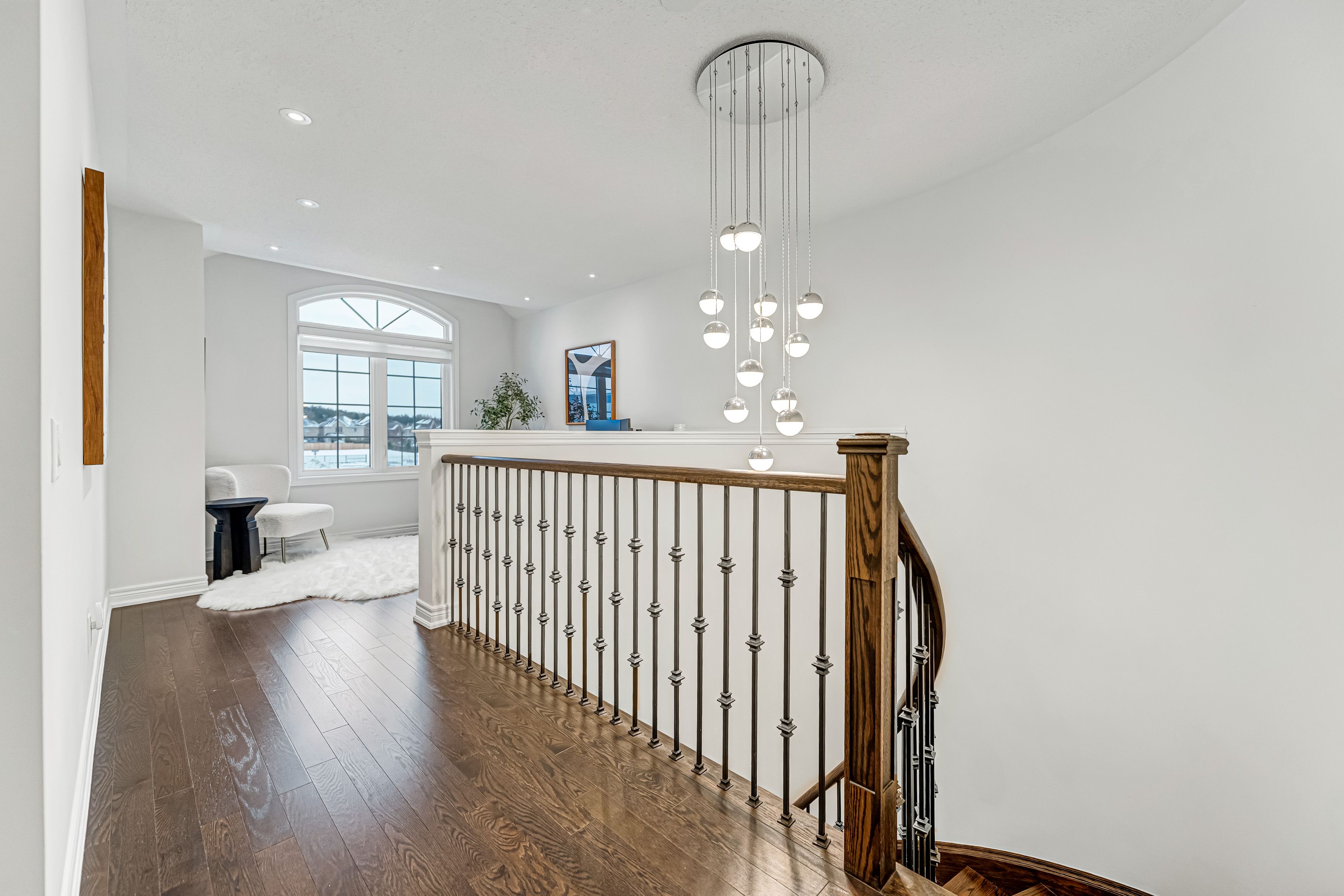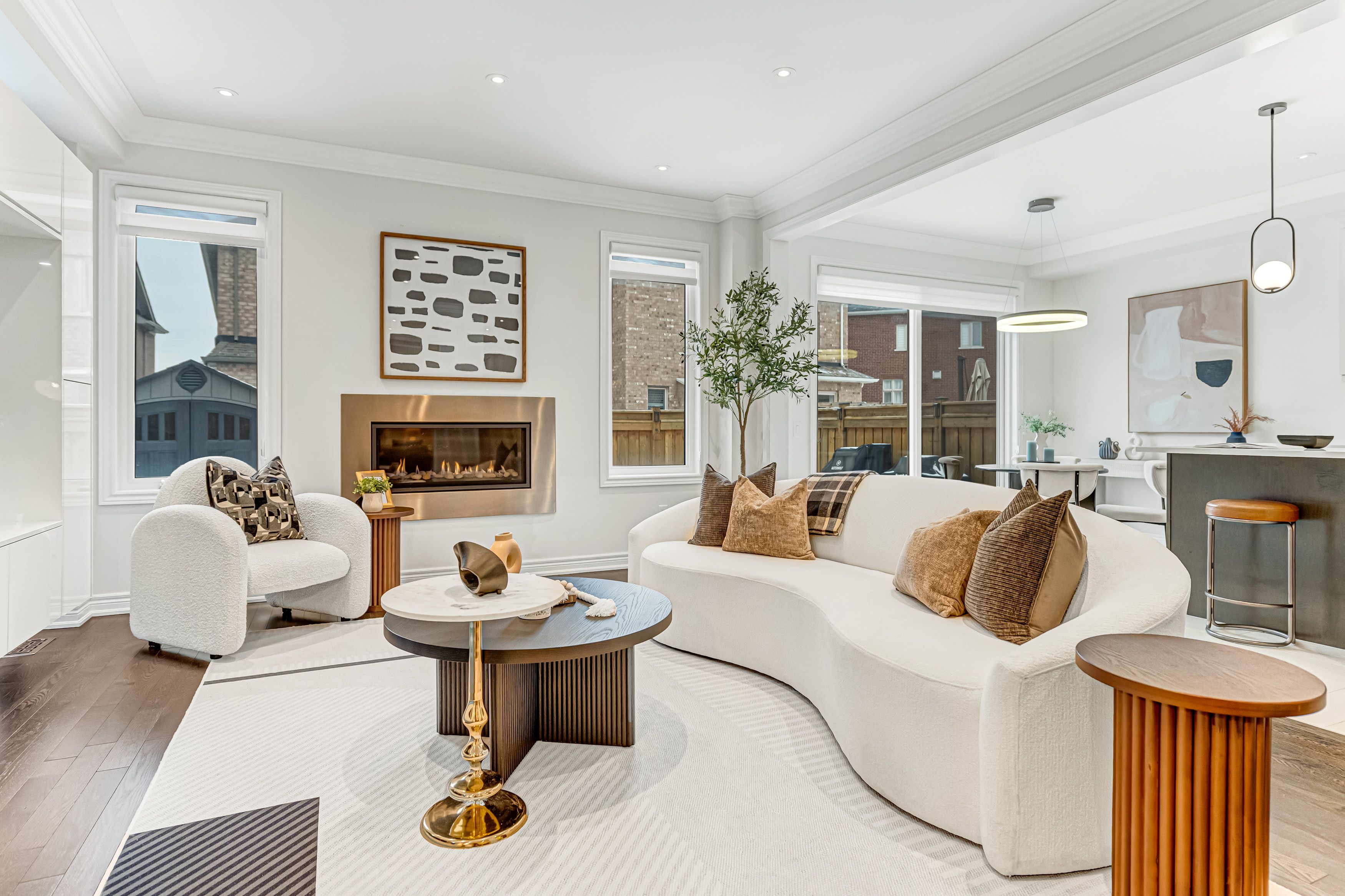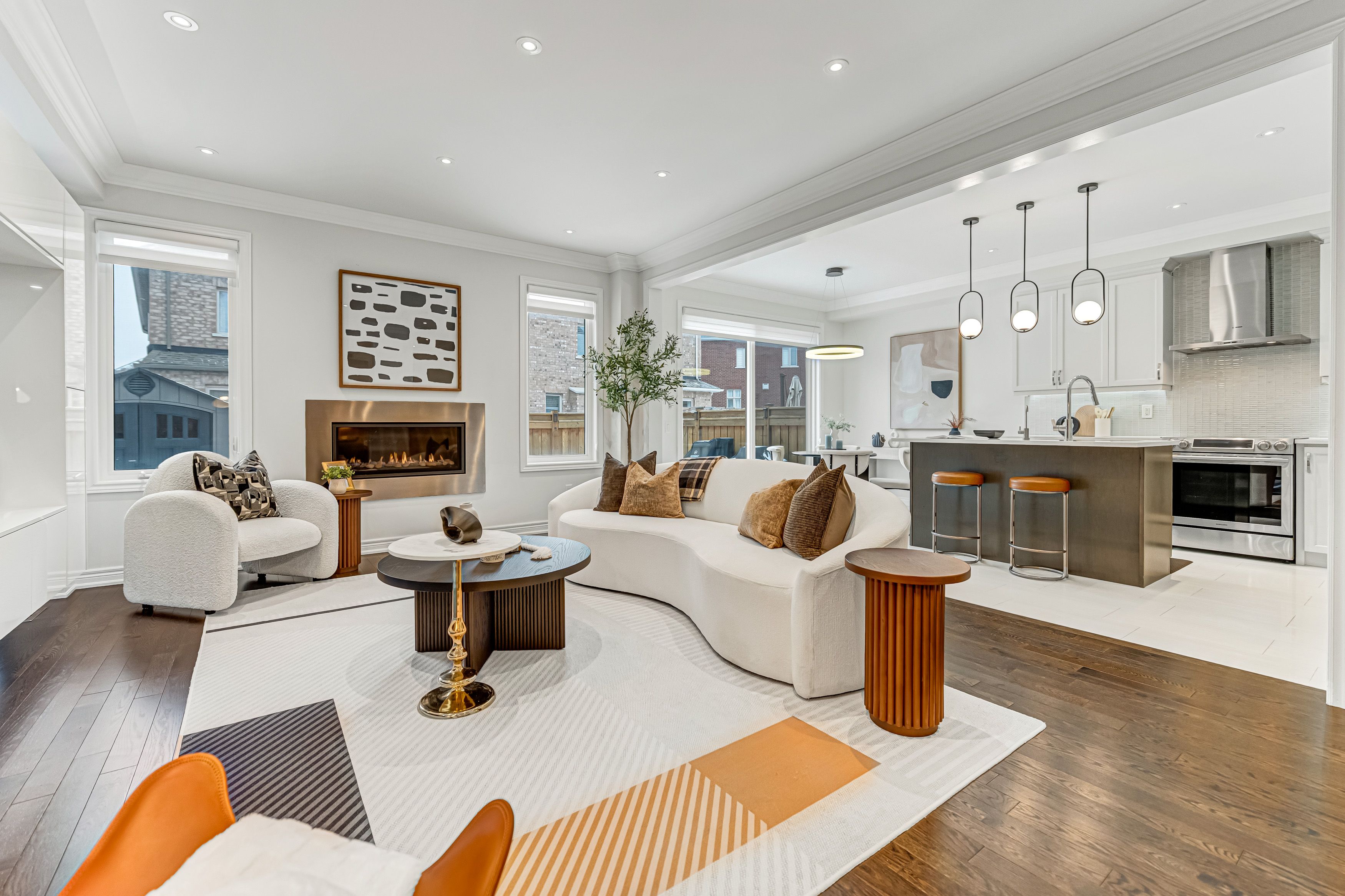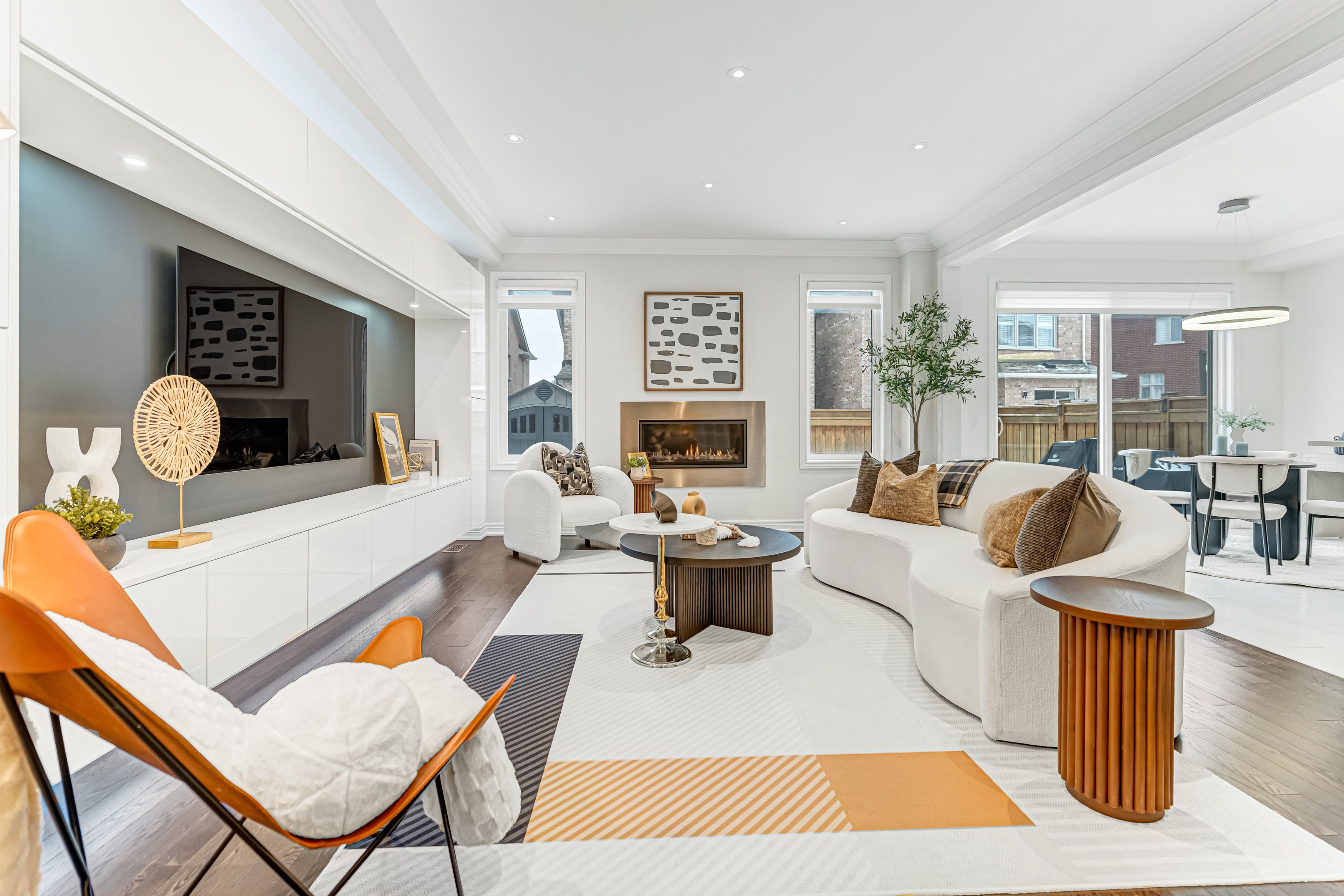 Stunning detached home with 4 ensuite bedrooms and a double car garage, ideally situated in a highly sought-after Aurora neighbourhood. Offering approximately 2,961 sq ft of well-designed living space, this home features 9 ft ceilings and hardwood flooring on the main level, complemented by coffered ceilings and pot lights throughout main floor, creating a bright and welcoming atmosphere. The family room serves as the heart of the home, showcasing a custom feature wall with an integrated media unit and ample built-in storage, anchored by a sleek gas fireplace - perfect for everyday family living and relaxed entertaining. The modern open-concept kitchen features a large centre island with breakfast bar, quartz countertops, undermount sink, full-height cabinetry, stainless steel appliances, elegant pendant lighting, and a contemporary tile backsplash. A sun-filled breakfast area with walk-out to the backyard enhances seamless indoor-outdoor living. The second floor offers four generously sized bedrooms, each with its own ensuite bathroom, along with a versatile office or sitting area ideal for work or study. The spacious primary retreat features a stylish accent wall, walk-in closet, and a well-appointed 5-piece ensuite. Enjoy a private, fully fenced backyard with a generous stone patio - ideal for outdoor dining, family gatherings, and summer enjoyment. A bright main-floor laundry room with utility sink, storage closet, and direct access to the garage adds everyday convenience. Conveniently located close to T&T Supermarket, shopping plaza, golf courses, GO Train, and Hwy 404. Within the highly regarded Dr. G.W. Williams Secondary School district (IB Program).