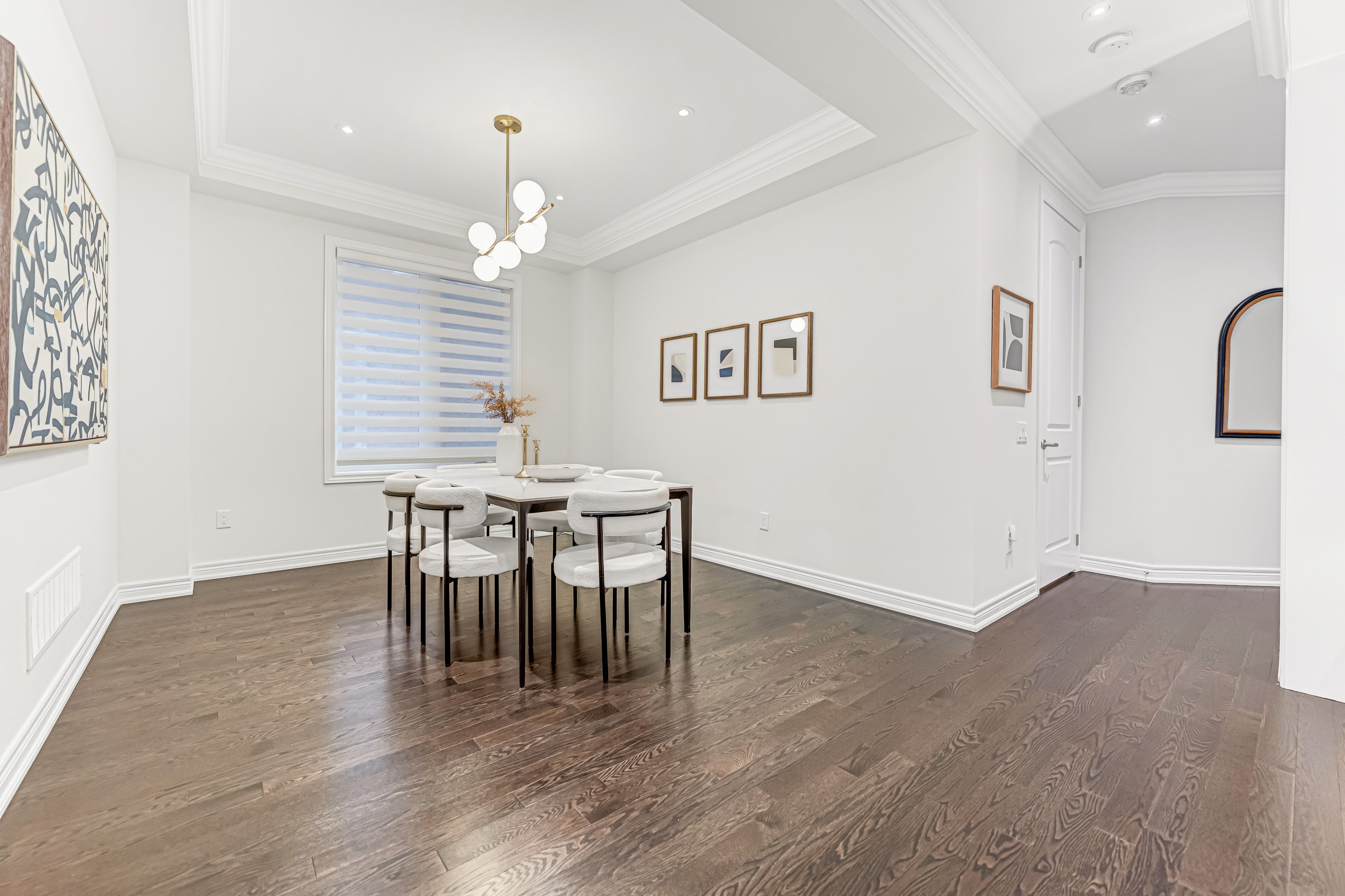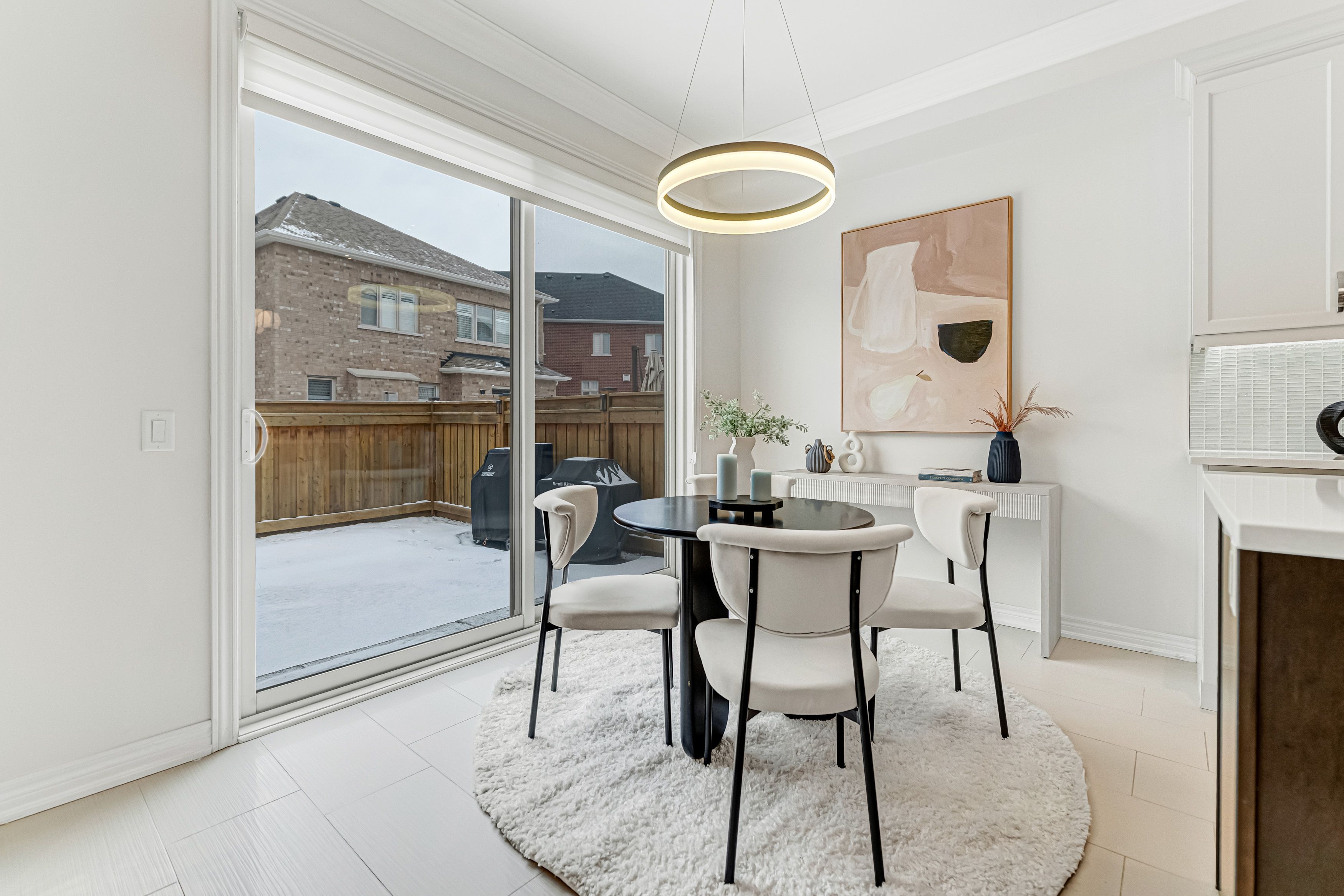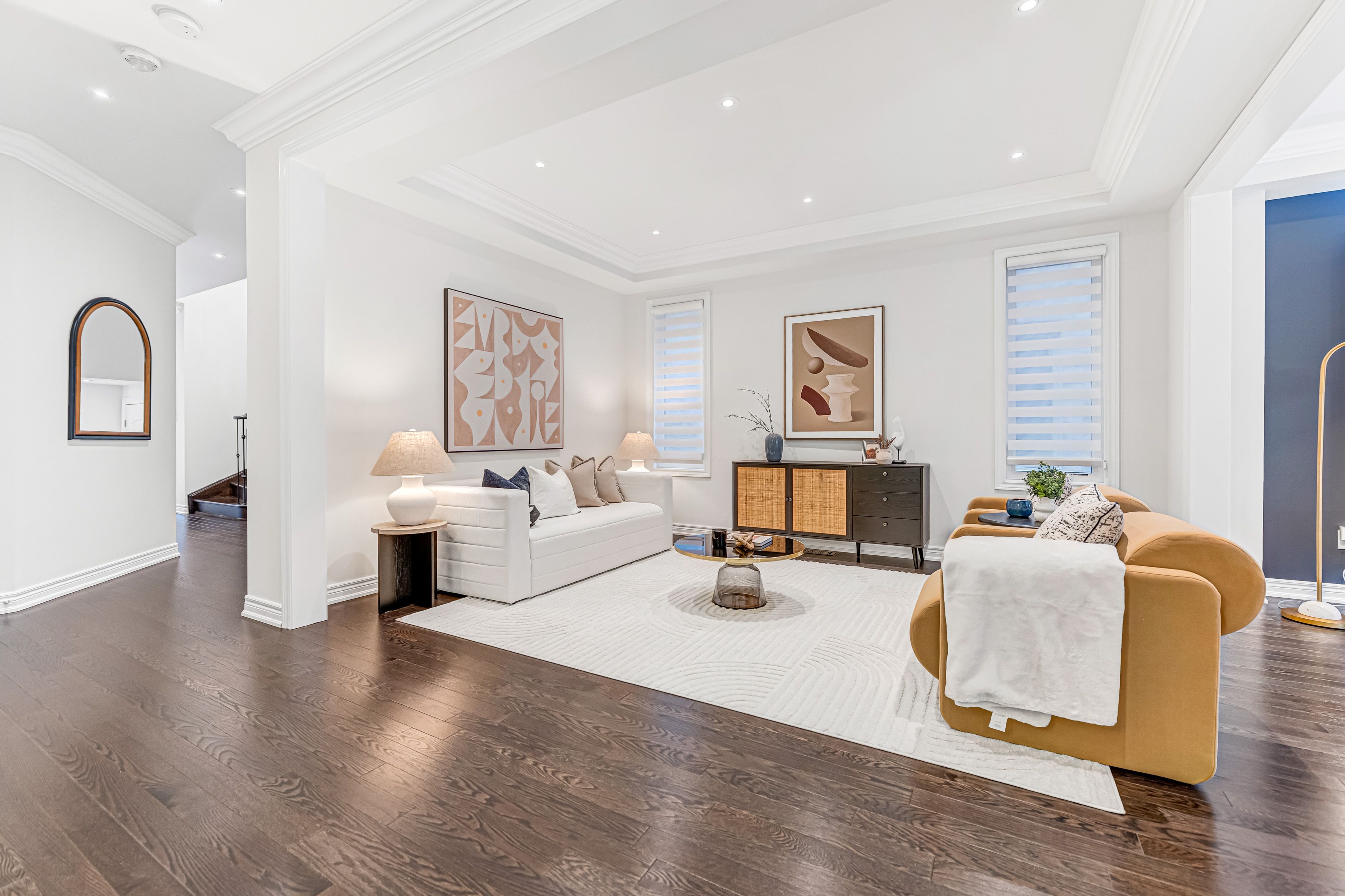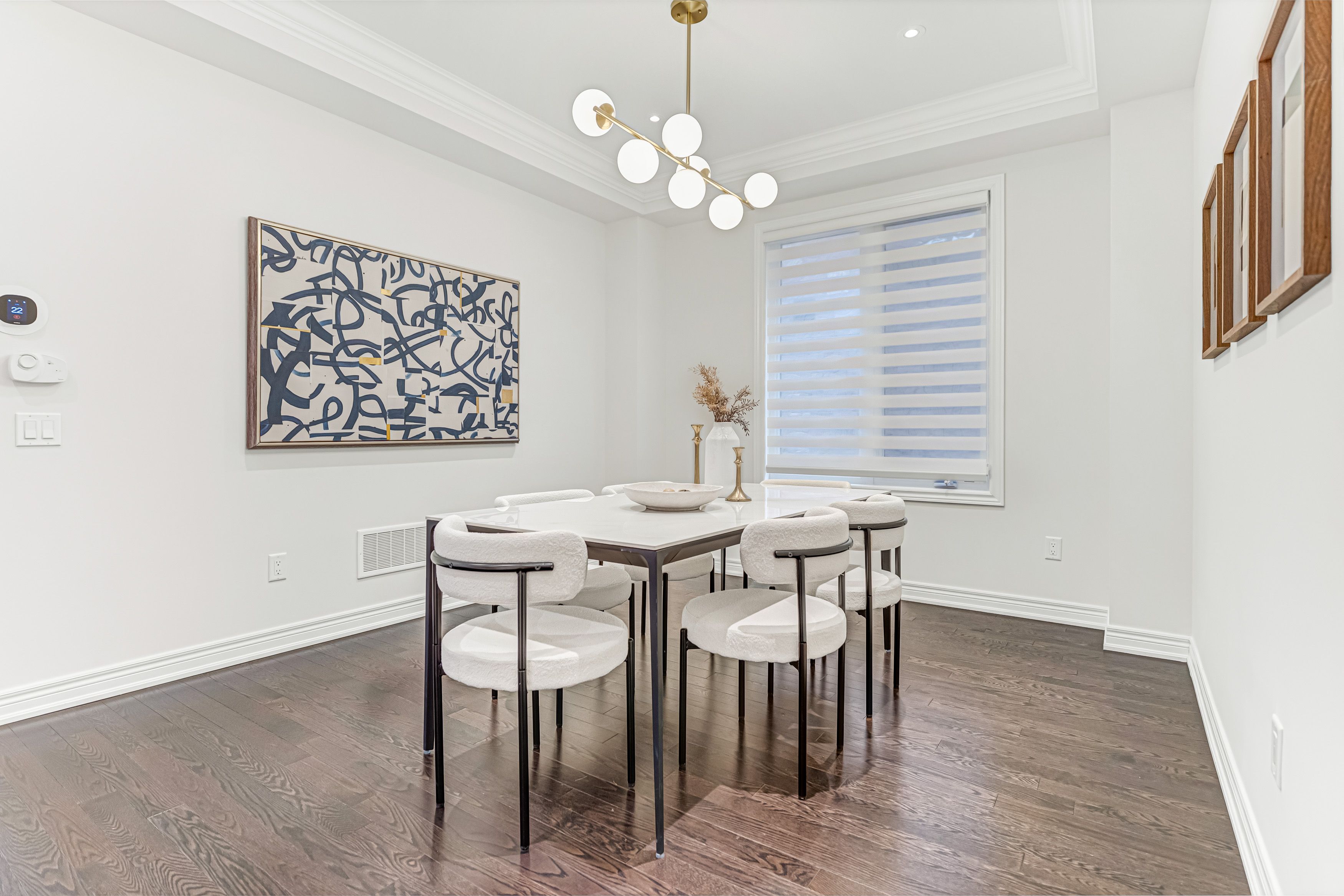 Stunning detached home with 4 ensuite bedrooms and a double car garage, ideally situated in a highly sought-after Aurora neighbourhood. Offering approximately 2,961 sq ft of well-designed living space, this home features 9 ft ceilings and hardwood flooring on the main level, complemented by coffered ceilings and pot lights throughout main floor, creating a bright and welcoming atmosphere. The family room serves as the heart of the home, showcasing a custom feature wall with an integrated media unit and ample built-in storage, anchored by a sleek gas fireplace - perfect for everyday family living and relaxed entertaining. The modern open-concept kitchen features a large centre island with breakfast bar, quartz countertops, undermount sink, full-height cabinetry, stainless steel appliances, elegant pendant lighting, and a contemporary tile backsplash. A sun-filled breakfast area with walk-out to the backyard enhances seamless indoor-outdoor living. The second floor offers four generously sized bedrooms, each with its own ensuite bathroom, along with a versatile office or sitting area ideal for work or study. The spacious primary retreat features a stylish accent wall, walk-in closet, and a well-appointed 5-piece ensuite. Enjoy a private, fully fenced backyard with a generous stone patio - ideal for outdoor dining, family gatherings, and summer enjoyment. A bright main-floor laundry room with utility sink, storage closet, and direct access to the garage adds everyday convenience. Conveniently located close to T&T Supermarket, shopping plaza, golf courses, GO Train, and Hwy 404. Within the highly regarded Dr. G.W. Williams Secondary School district (IB Program).