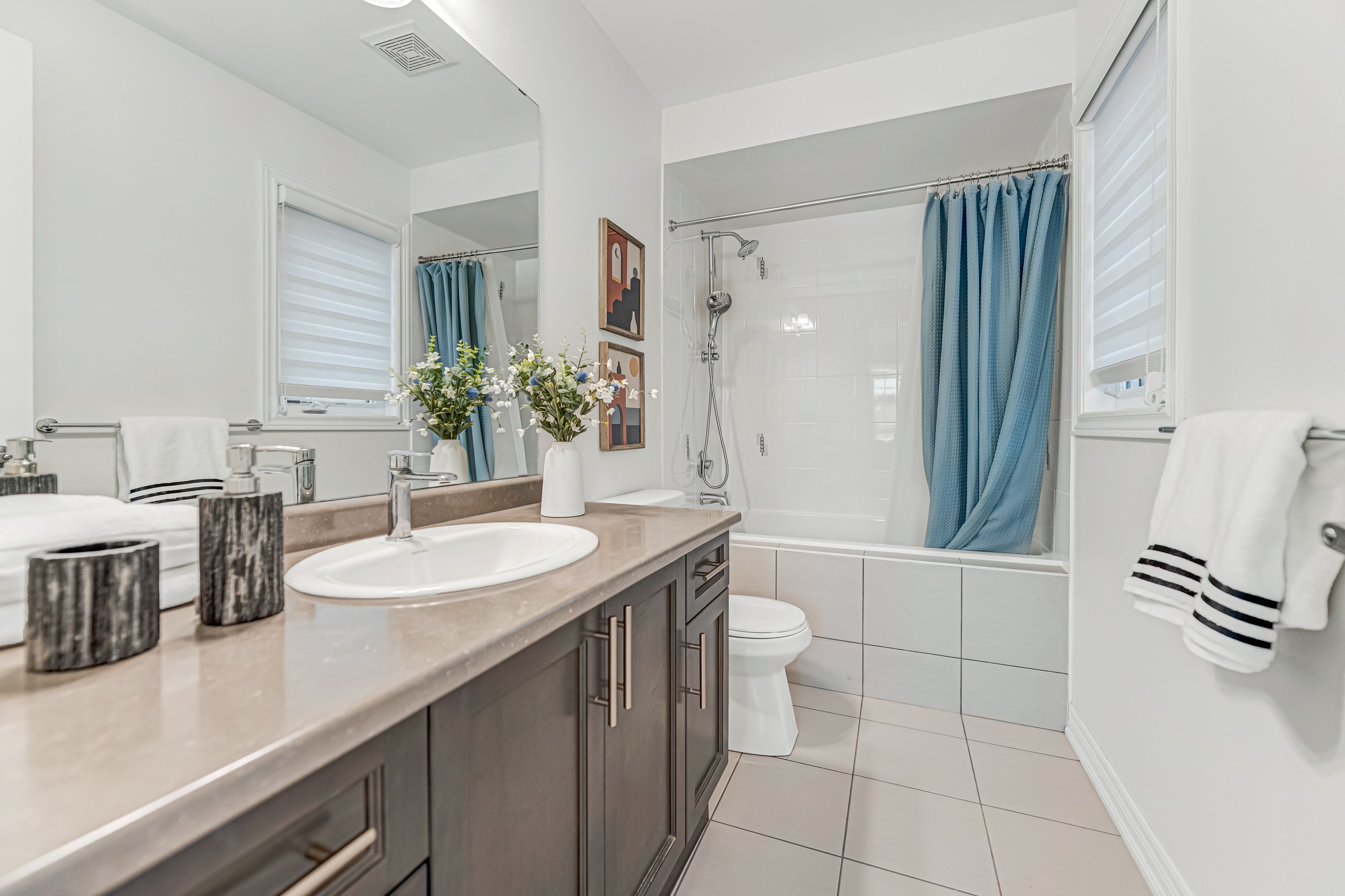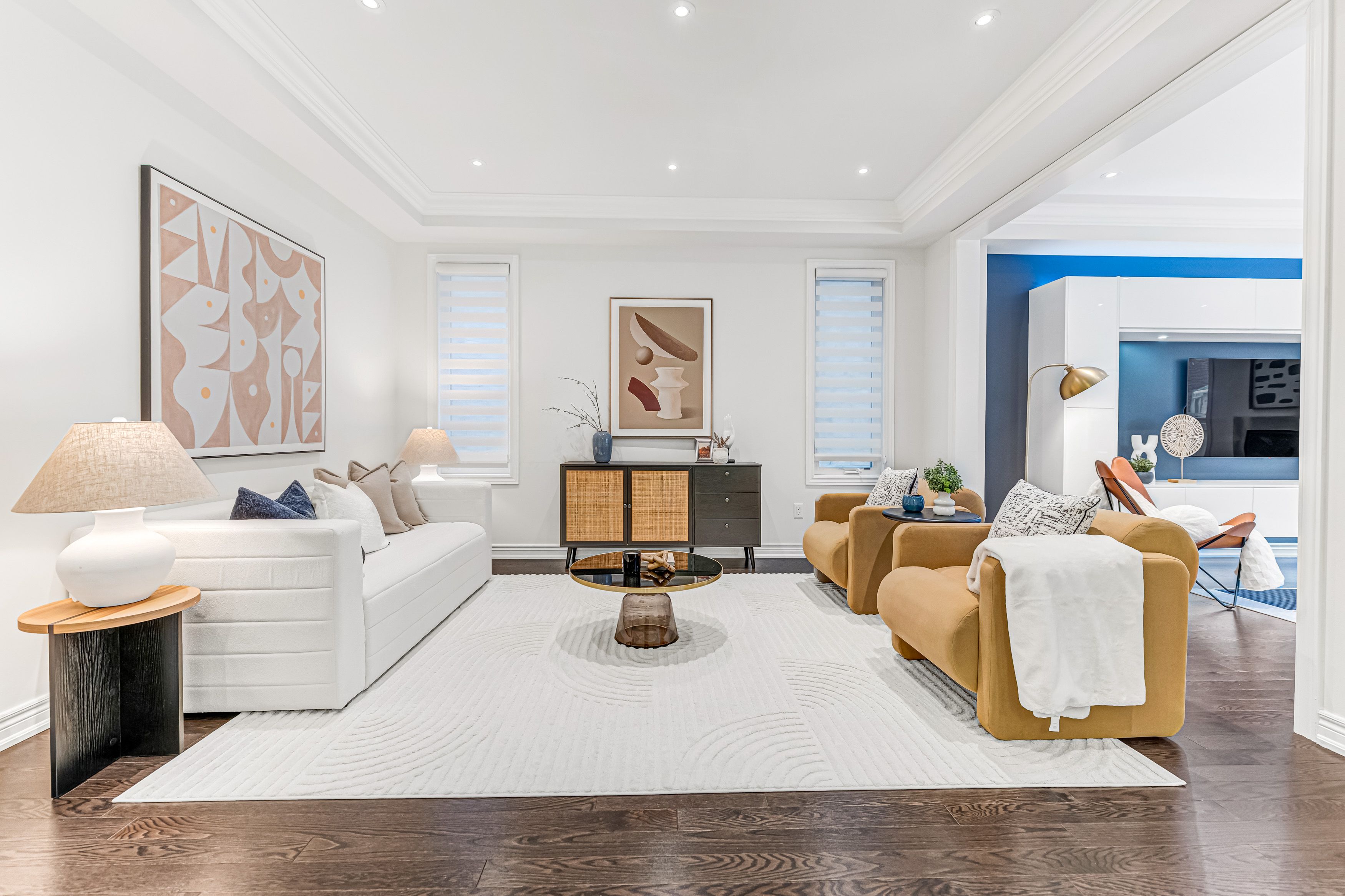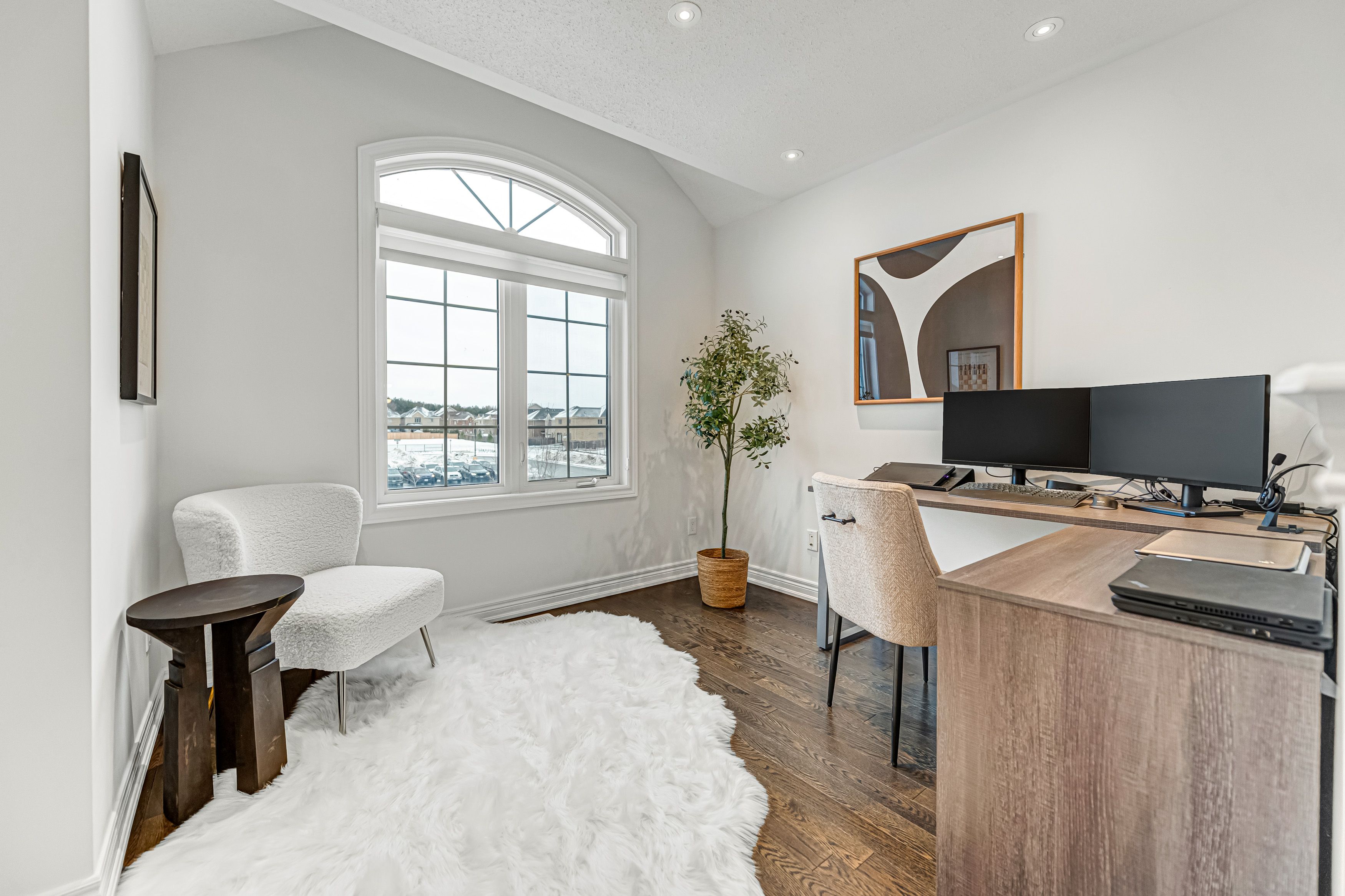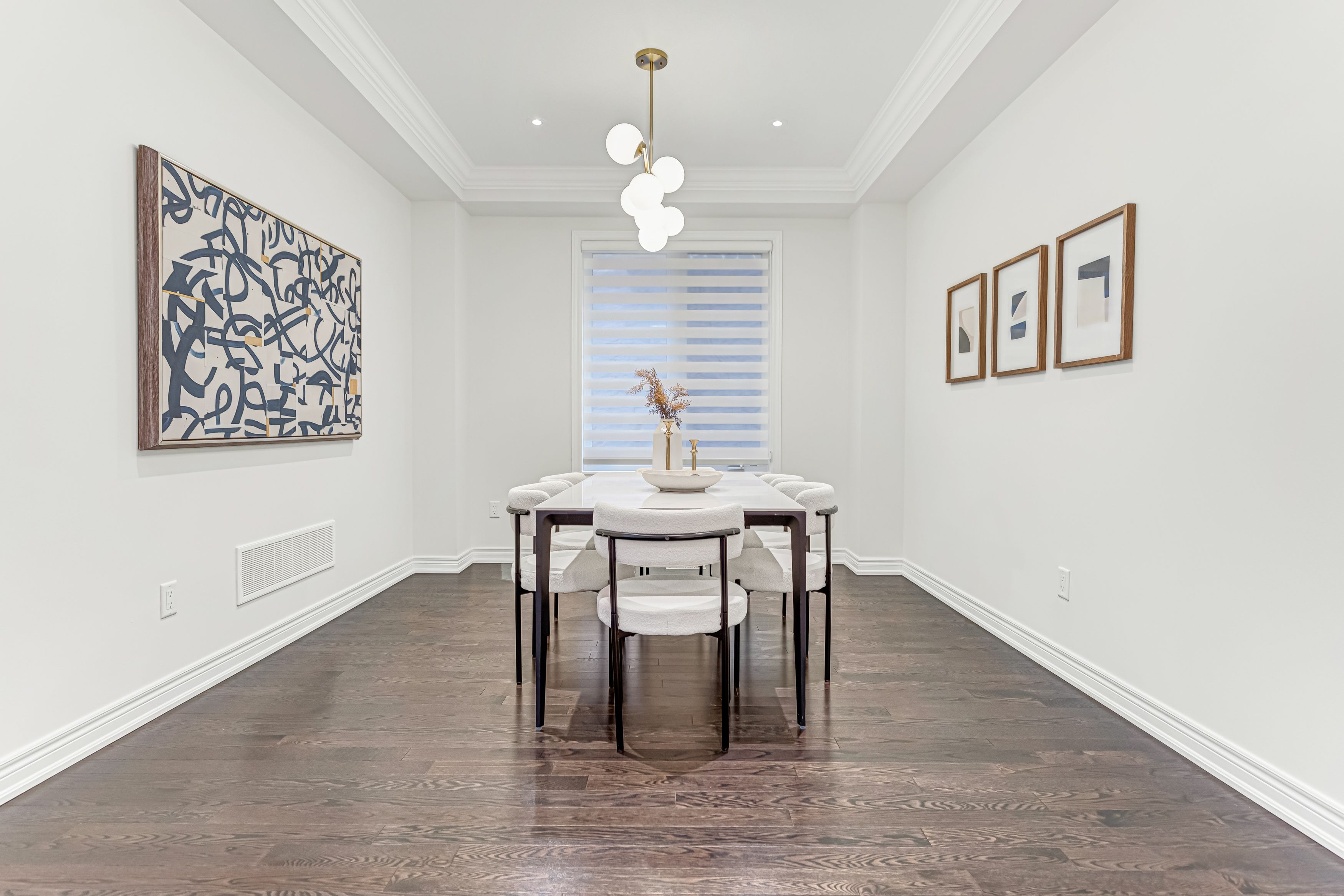 Stunning detached home with 4 ensuite bedrooms and a double car garage, ideally situated in a highly sought-after Aurora neighbourhood. Offering approximately 2,961 sq ft of well-designed living space, this home features 9 ft ceilings and hardwood flooring on the main level, complemented by coffered ceilings and pot lights throughout main floor, creating a bright and welcoming atmosphere. The family room serves as the heart of the home, showcasing a custom feature wall with an integrated media unit and ample built-in storage, anchored by a sleek gas fireplace - perfect for everyday family living and relaxed entertaining. The modern open-concept kitchen features a large centre island with breakfast bar, quartz countertops, undermount sink, full-height cabinetry, stainless steel appliances, elegant pendant lighting, and a contemporary tile backsplash. A sun-filled breakfast area with walk-out to the backyard enhances seamless indoor-outdoor living. The second floor offers four generously sized bedrooms, each with its own ensuite bathroom, along with a versatile office or sitting area ideal for work or study. The spacious primary retreat features a stylish accent wall, walk-in closet, and a well-appointed 5-piece ensuite. Enjoy a private, fully fenced backyard with a generous stone patio - ideal for outdoor dining, family gatherings, and summer enjoyment. A bright main-floor laundry room with utility sink, storage closet, and direct access to the garage adds everyday convenience. Conveniently located close to T&T Supermarket, shopping plaza, golf courses, GO Train, and Hwy 404. Within the highly regarded Dr. G.W. Williams Secondary School district (IB Program).