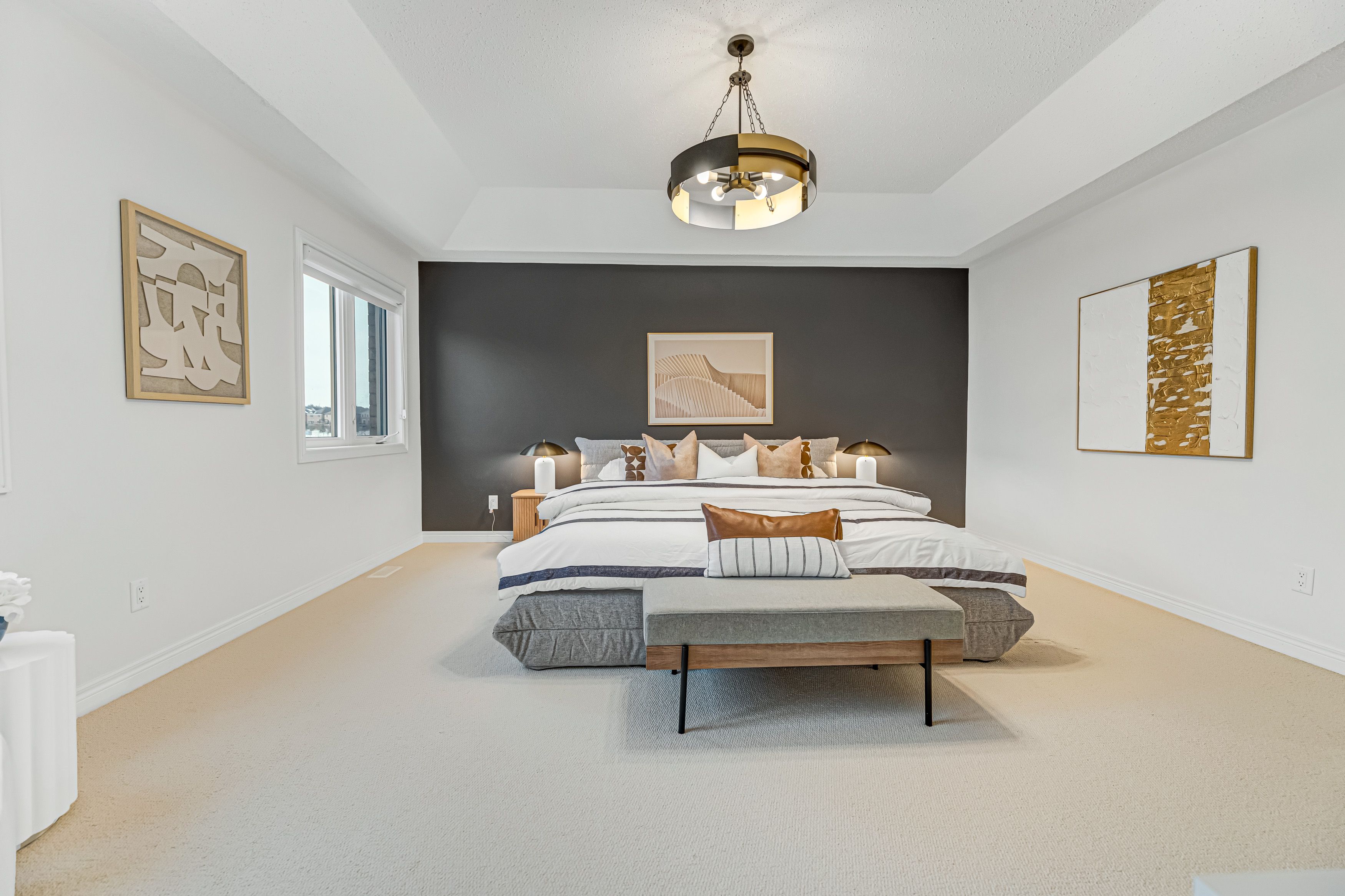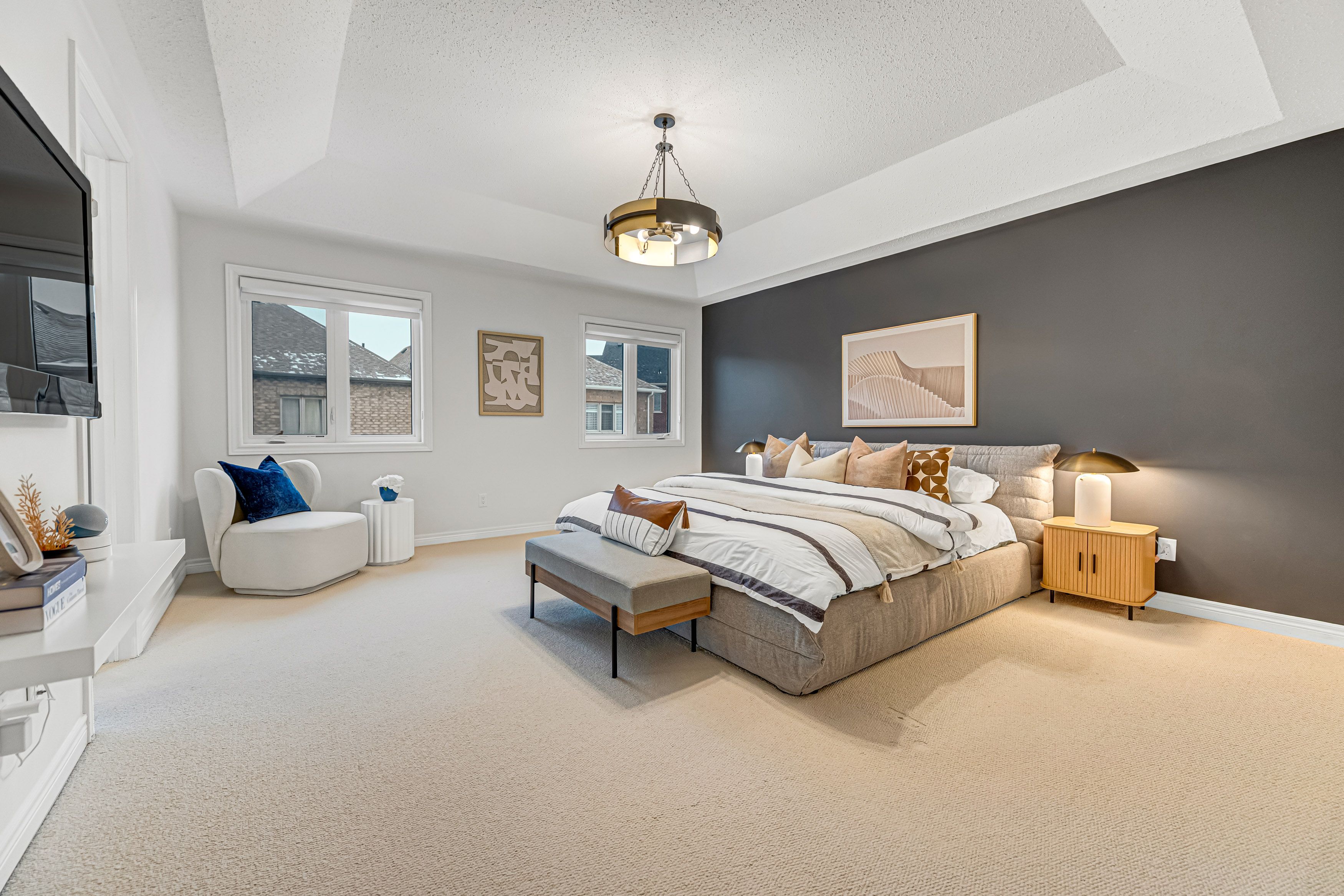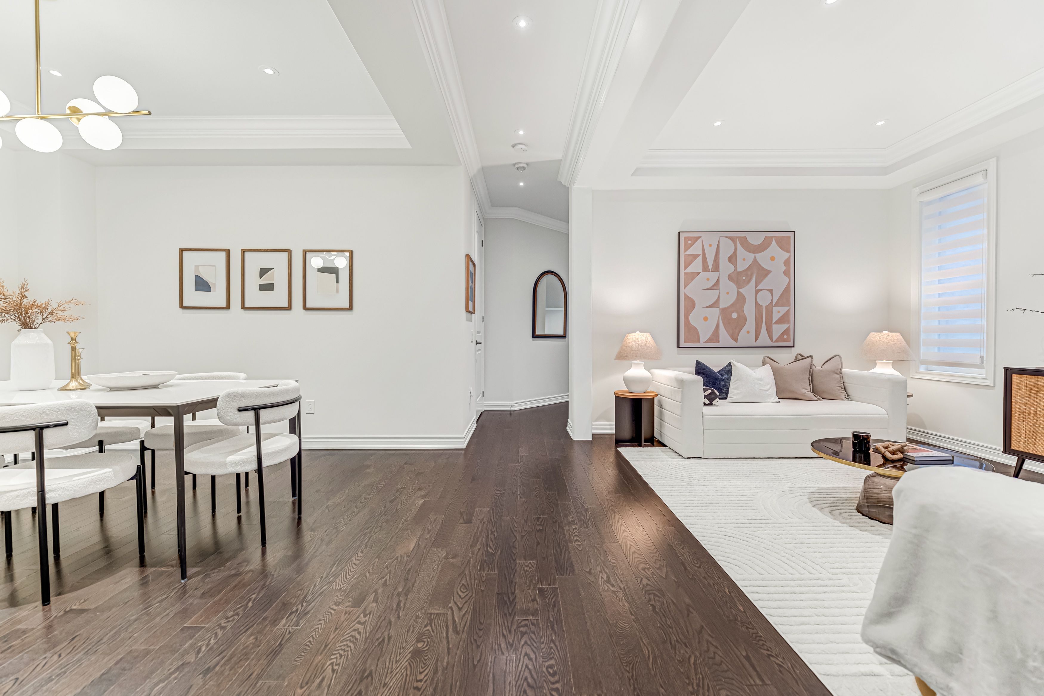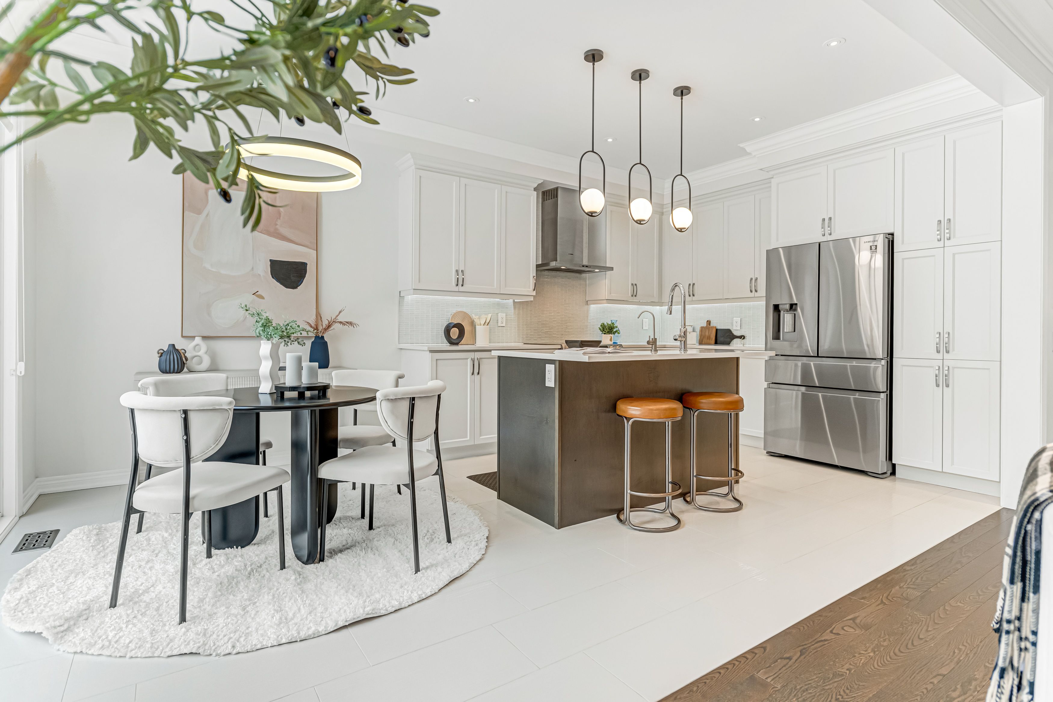 Stunning detached home with 4 ensuite bedrooms and a double car garage, ideally situated in a highly sought-after Aurora neighbourhood. Offering approximately 2,961 sq ft of well-designed living space, this home features 9 ft ceilings and hardwood flooring on the main level, complemented by coffered ceilings and pot lights throughout main floor, creating a bright and welcoming atmosphere. The family room serves as the heart of the home, showcasing a custom feature wall with an integrated media unit and ample built-in storage, anchored by a sleek gas fireplace - perfect for everyday family living and relaxed entertaining. The modern open-concept kitchen features a large centre island with breakfast bar, quartz countertops, undermount sink, full-height cabinetry, stainless steel appliances, elegant pendant lighting, and a contemporary tile backsplash. A sun-filled breakfast area with walk-out to the backyard enhances seamless indoor-outdoor living. The second floor offers four generously sized bedrooms, each with its own ensuite bathroom, along with a versatile office or sitting area ideal for work or study. The spacious primary retreat features a stylish accent wall, walk-in closet, and a well-appointed 5-piece ensuite. Enjoy a private, fully fenced backyard with a generous stone patio - ideal for outdoor dining, family gatherings, and summer enjoyment. A bright main-floor laundry room with utility sink, storage closet, and direct access to the garage adds everyday convenience. Conveniently located close to T&T Supermarket, shopping plaza, golf courses, GO Train, and Hwy 404. Within the highly regarded Dr. G.W. Williams Secondary School district (IB Program).