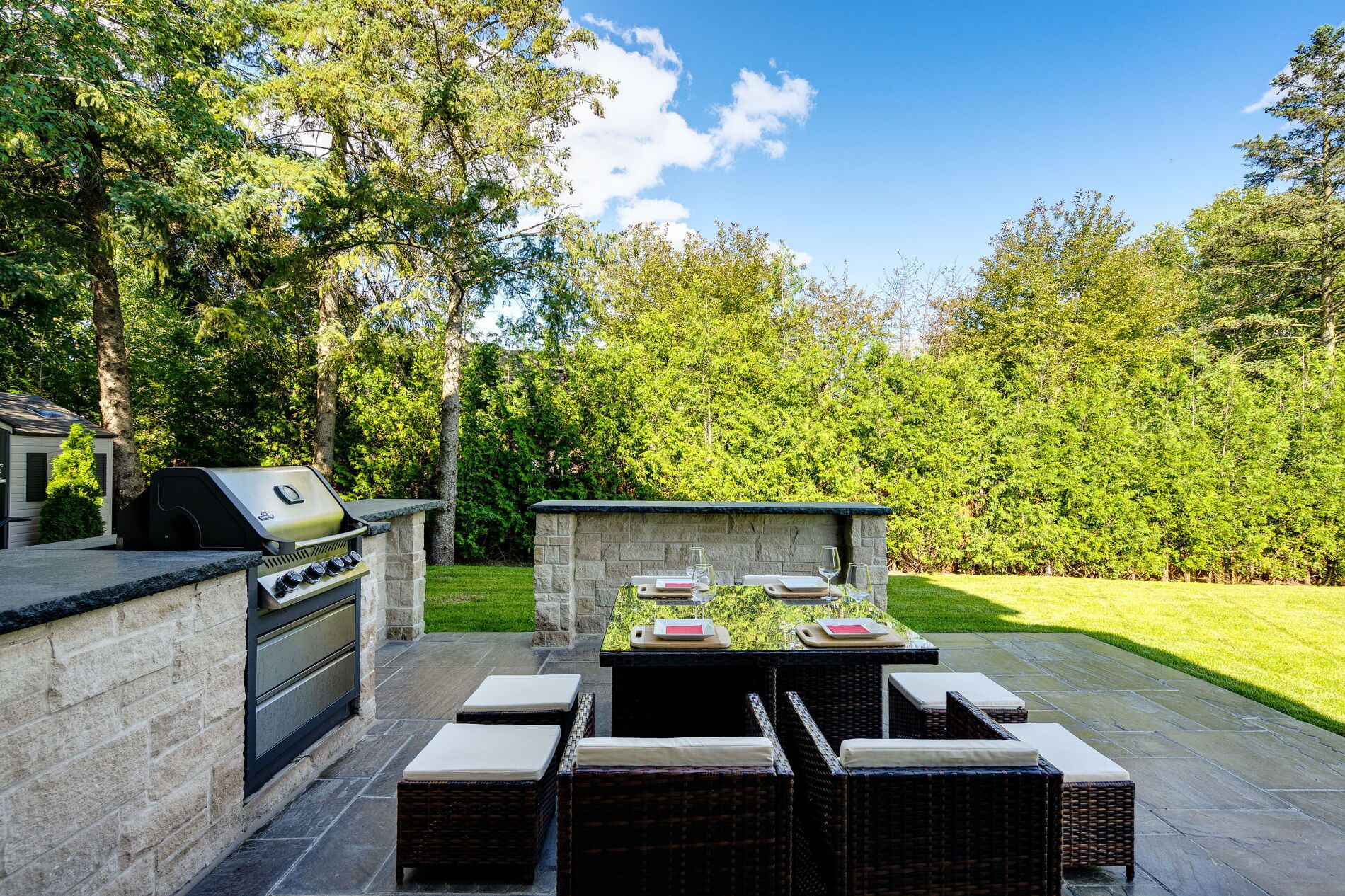 - Exterior Features: Built-In-BBQ, Landscaped, Lighting, Patio, Security Gate