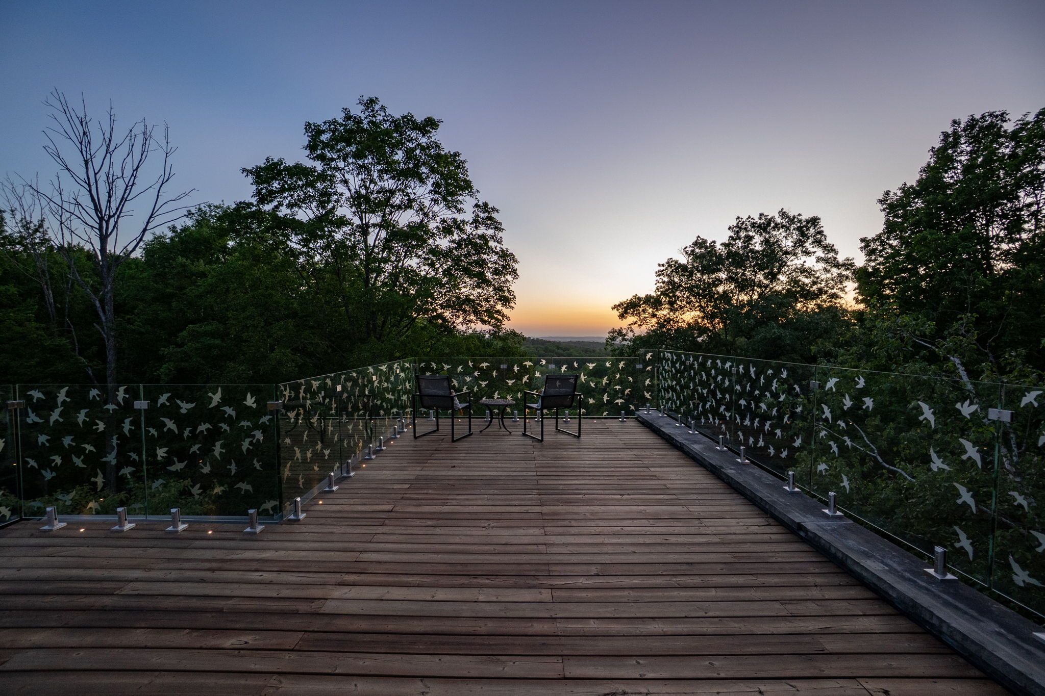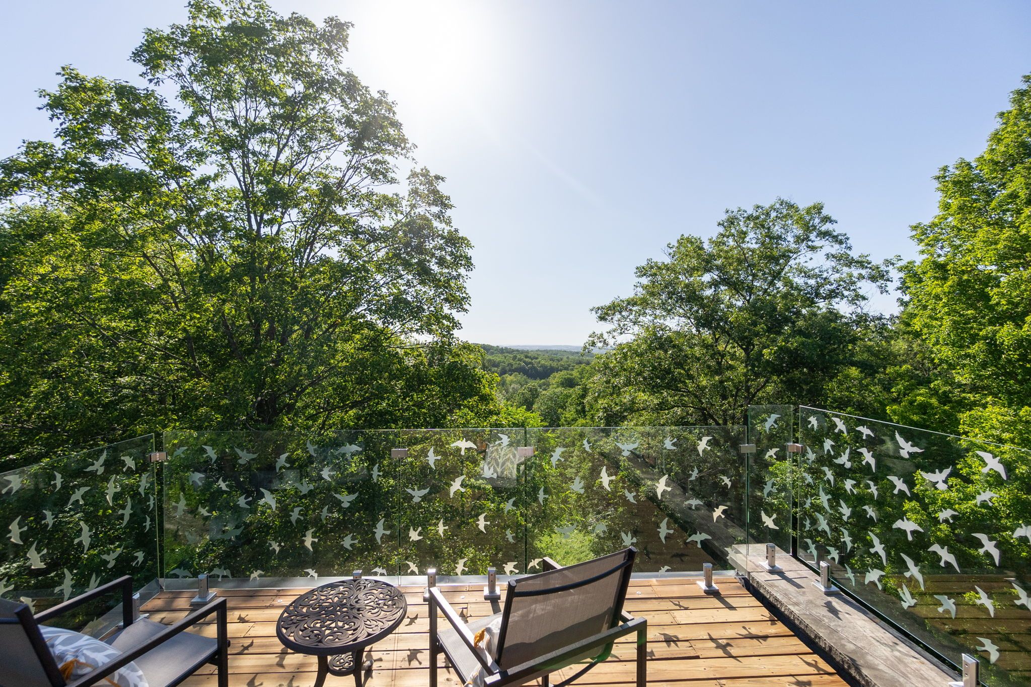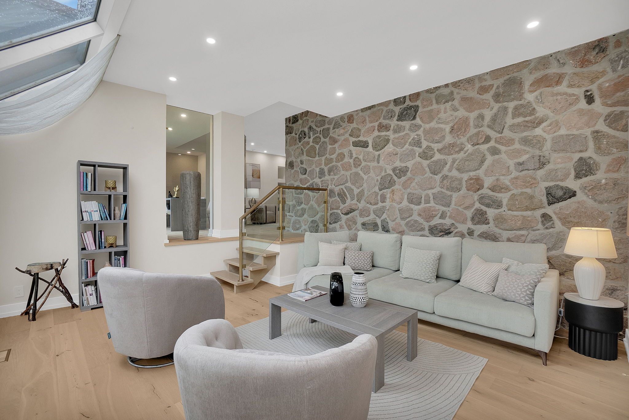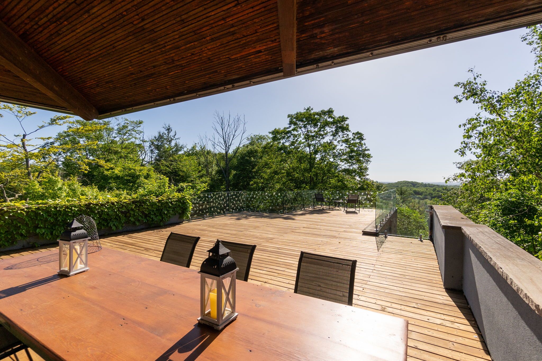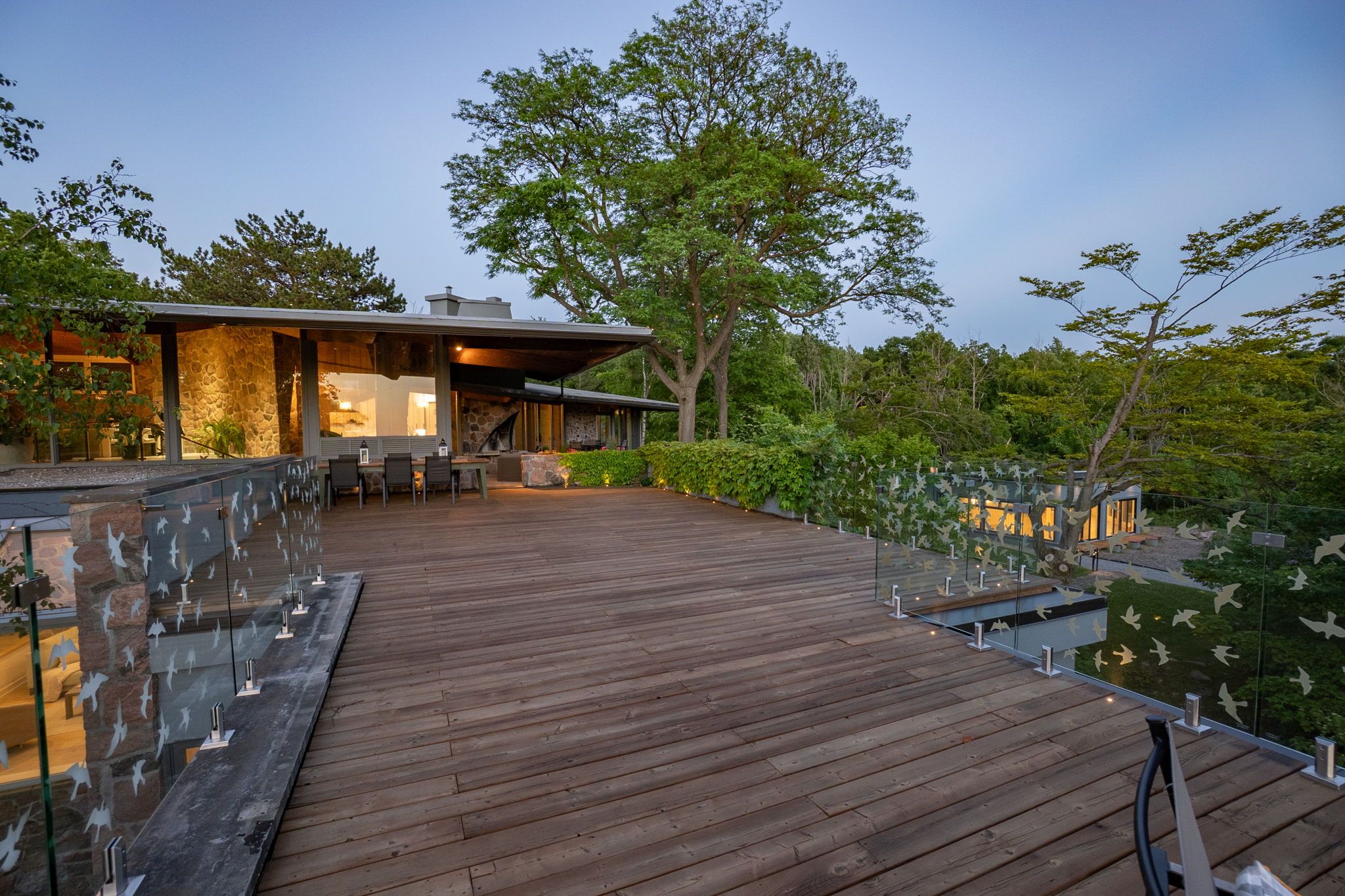 Welcome to an extraordinary estate tucked away behind welcoming stone pillars and a winding forested driveway! This is a work of art designed by the legendary Grant Whatmough and Gardiner Cowan, with distinctive Frank Lloyd Wright style of Architecture. This iconic Mid-Century Modern residence is gracefully integrated into 32 acres of majestic land, where nature and architecture exist in perfect harmony. From the moment you approach the stunning entry door, you're drawn into a world of timeless design and serene beauty. This home is lovingly maintained with extensive renovations, while preserving the character and soul of this home, Including Floor-to-ceiling windows bring the outdoors in, Stone fireplaces indoor and out, original stone walls and impressive wood beams throughout. Spanning approximately 5,000 sq ft, the main residence features 6 bedrooms, 7 bathrooms, an office, a meditation room, and a separate nanny suite. Multiple terraces and decks surround the home, offering breathtaking views of the land, and a tranquil lake creating the feel of a private luxury retreat. This property features a rare second home- fully renovated and approximately 3,500 sq ft-offering 3 bedrooms, 4 bathrooms, and a massive loft space! This second home is ideal for an extended family! There is an additional Yoga studio with an outdoor shower! a Detached garage/ workshop, a charming cedar Cabin with Sauna and Cold plunge, a Covered cabana for entertaining or relaxing on the property. This is a once-in-a-lifetime opportunity to own an architecturally significant estate in the prestigious King Township. With unmatched privacy, lush surroundings, and two beautifully appointed homes, this property is truly a timeless work of art. Don't Miss it!