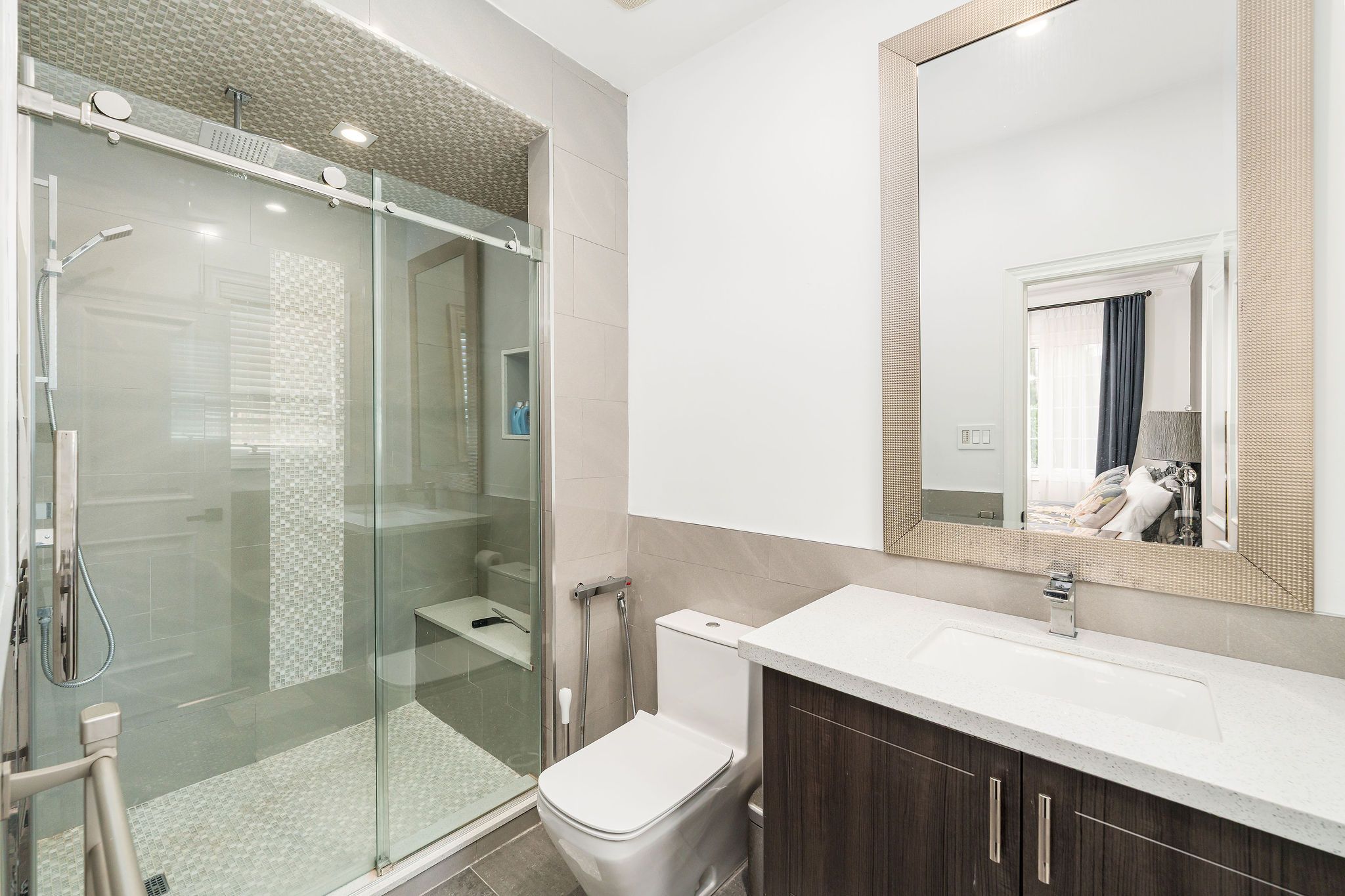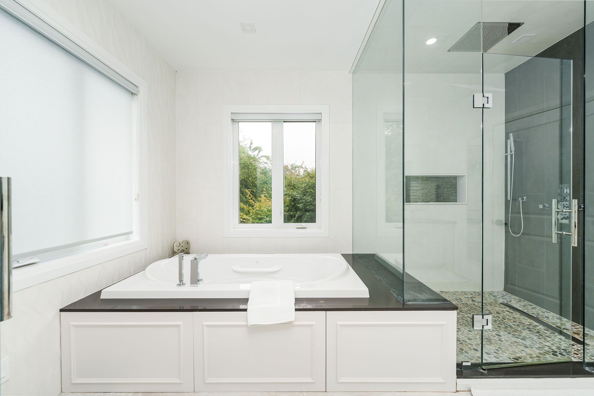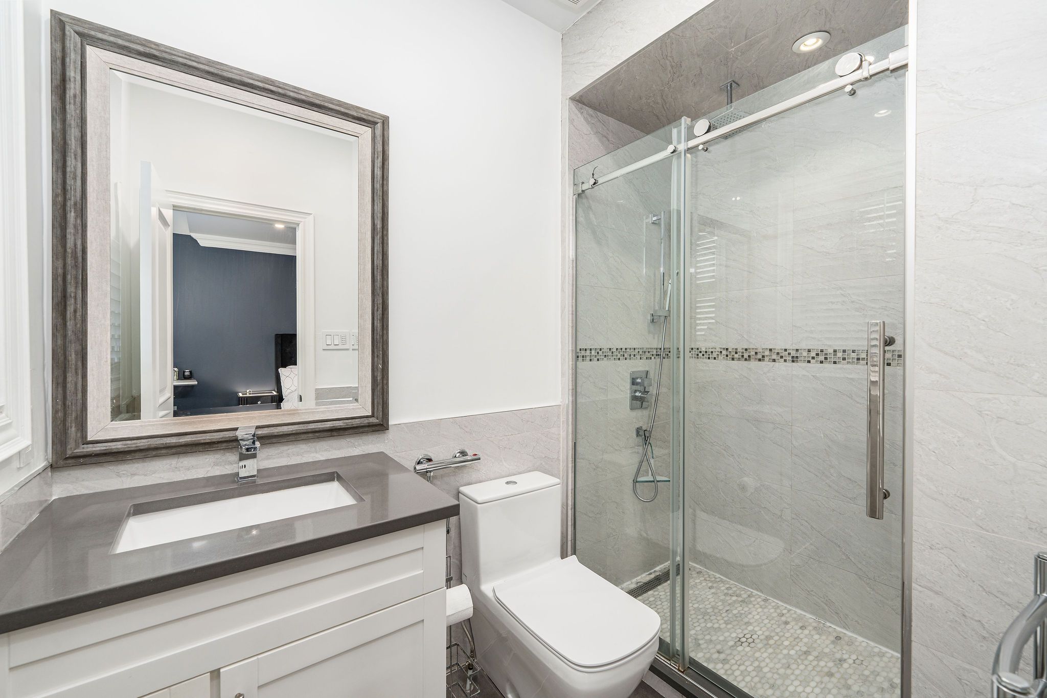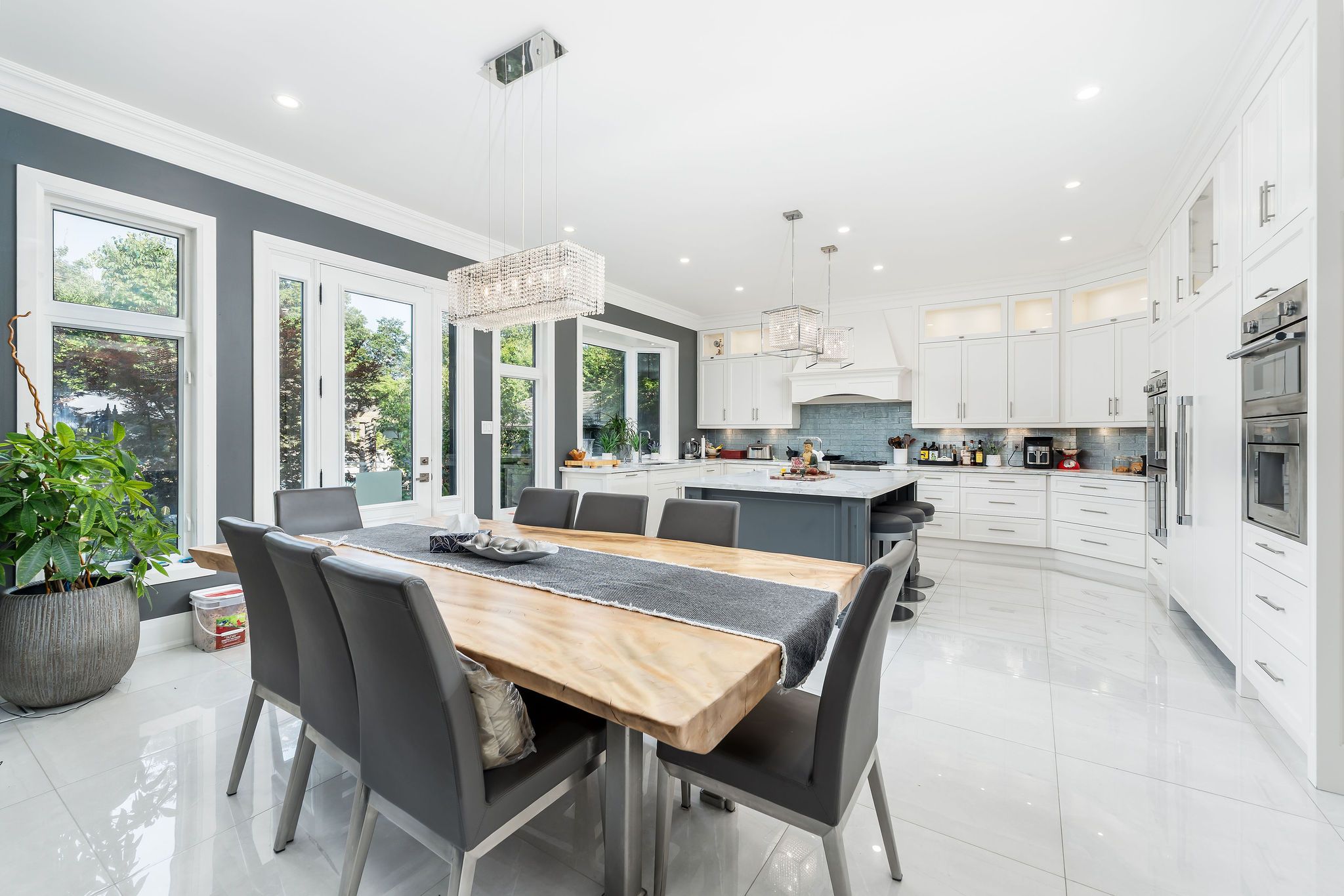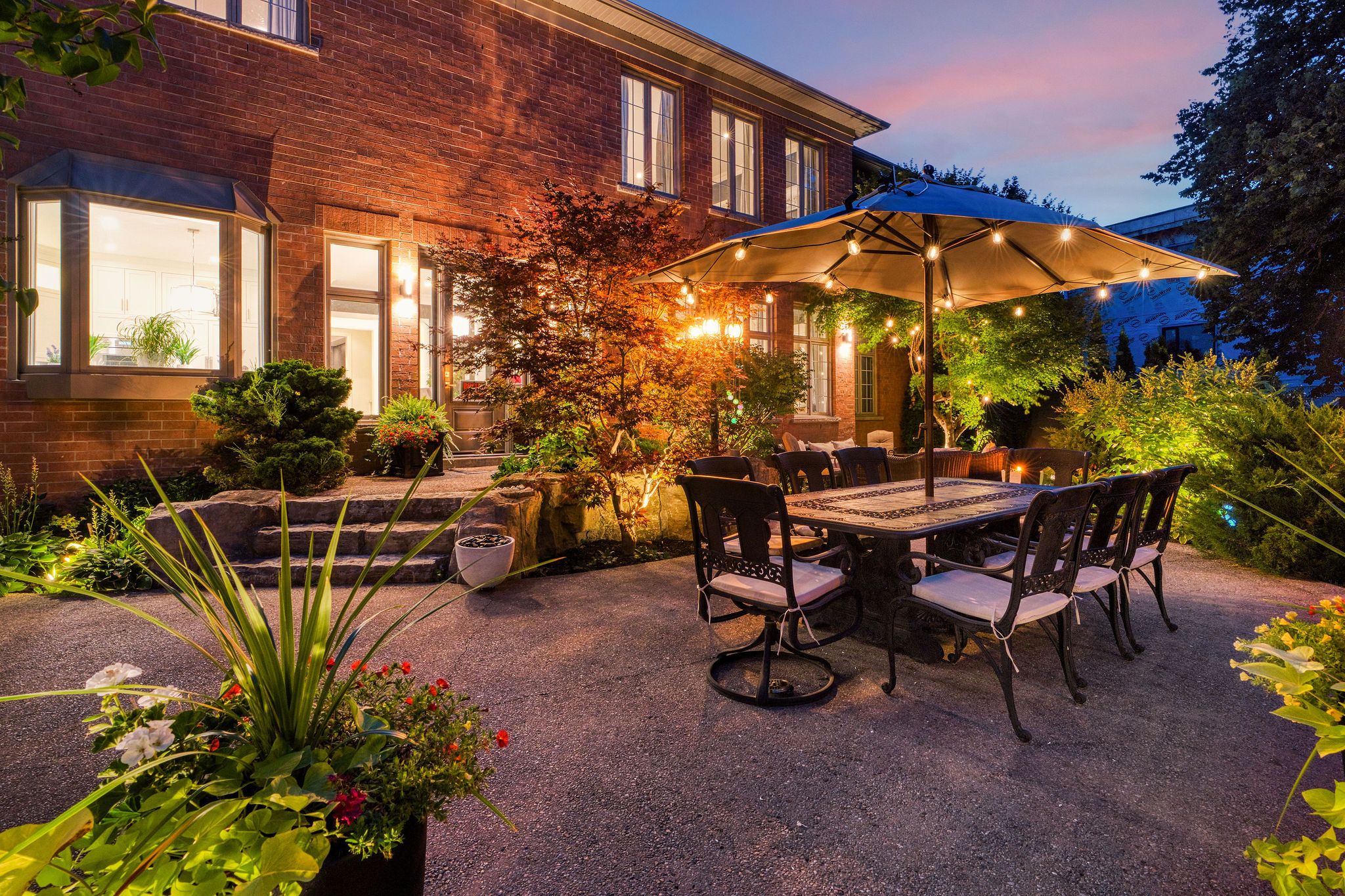 Perfectly positioned on a full ravine lot, 30 Bernadotte Drive offers an extraordinary blend of privacy, elegance, and modern comfort. This meticulously upgraded residence boasts 5 spacious bedrooms with every bedroom appointed with its own ensuite. Total 7 full washrooms, plus additional 2 powder rooms. Designed with both grand entertaining and intimate family living in mind, the homes thoughtful layout seamlessly combines sophistication with everyday functionality. From the moment you step through the front door, you are greeted by an abundance of natural light and uninterrupted views of the breathtaking garden. Sunlight pours in from every direction, creating a warm and uplifting atmosphere throughout the day. The connection to nature is ever-present from the sight of mature trees swaying gently outside to the birdsong that fills the air year-round. The heart of the home is the upgraded kitchen, complete with all new appliances, complemented by beautifully renovated bathrooms, including two powder rooms and a spa-inspired primary ensuite featuring a heated, massage bathtub. New tile flooring, custom closets in every bedroom, a freshly repainted interior, and a new roof further enhance the homes modern appeal. Comfort is assured with two furnaces one newer and the other well-maintained along with dual air conditioning units. The outdoor space is a true entertainers dream, featuring a sparkling pool, charming gazebo, and a dedicated pool house with a 3-piece washroom. Whether hosting a lively summer gathering or enjoying a quiet evening by the water, this backyard delivers the perfect ravine setting. Additional highlights include a 3+1 tandem car garage, and a fully finished basement with a wet bar, offering endless possibilities for recreation or extended family living. 30 Bernadotte Drive is more than just a home it is a serene sanctuary where luxury meets nature, providing a lifestyle of comfort, beauty, and tranquility.