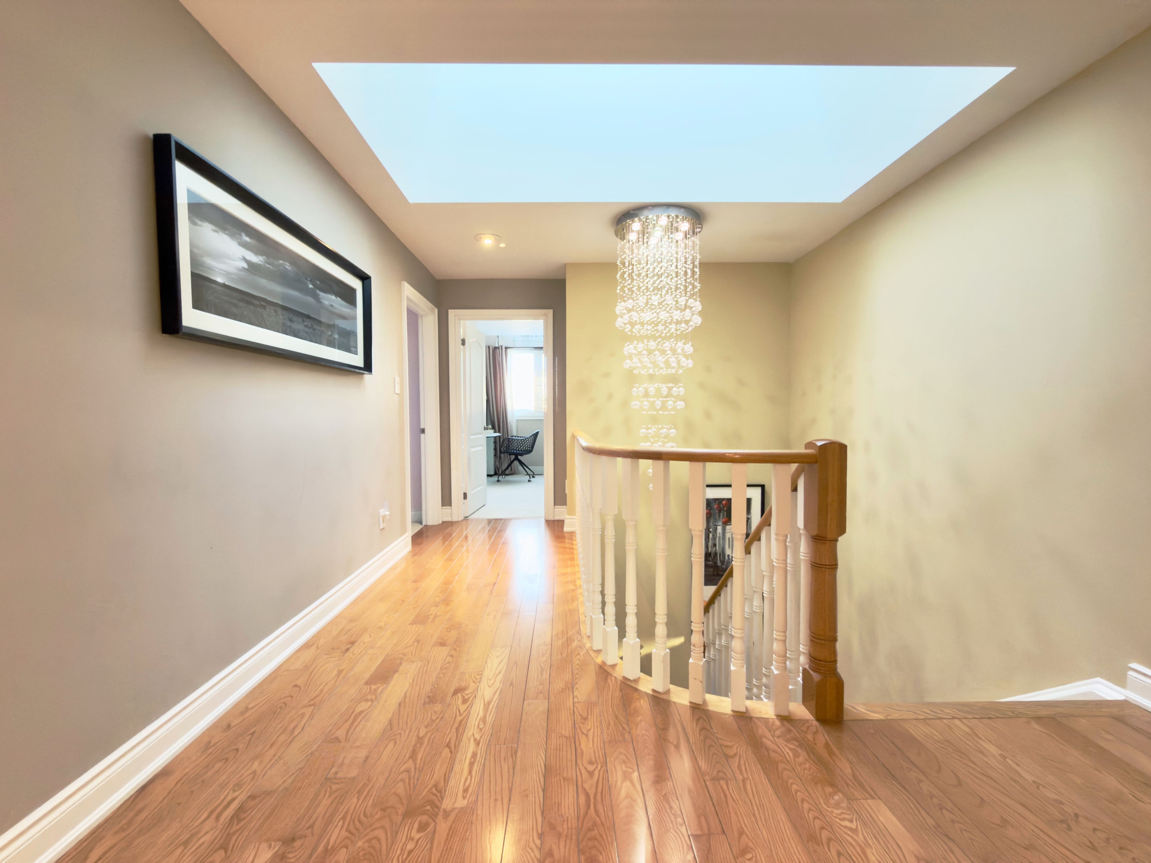 Pride of ownership is evident in this exceptional executive 2-storey home offering 2,711 sq. ft. of above-ground living space, ideally located in the heart of Richmond Hill. Sun-filled and meticulously maintained, the home features a bright and functional open-concept layout, Fireplace(behind the Display cabinet),custom curtains throughout. Skylight bring in plenty of natural sunlight.The main floor showcases a modern open design with a decorative stainless steel feature wall between the living and family rooms. The upgraded gourmet kitchen offers stainless steel appliances, built-in microwave and oven, marble countertops, and an extra-long center island with a custom range hood-perfect for hot pot and indoor BBQ. 5 star crystal chandelier adds elegant flair. Upstairs offers four bedrooms with two ensuites and two semi-ensuite baths. The spacious primary bedroom features oversized windows, a custom walk-in closet, and its own heating and cooling A/C unit. A fully enclosed glass sunroom with independent climate control provides year-round enjoyment. The finished basement provides outstanding versatility, featuring an additional bedroom, gym, bar, bathroom, laundry room, LED color lighting, and a cooling room-ideal for extended family, guests, or rental potential. Situated on a premium lot, just steps to top-ranked Richmond Hill High School, Costco, parks, transit, shopping, Richmond Green Recreation Centre, and major highways. A rare opportunity in a sought-after, family-friendly neighborhood.