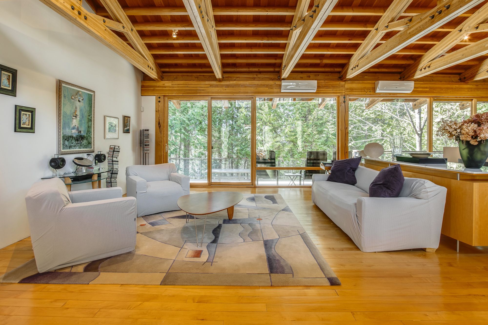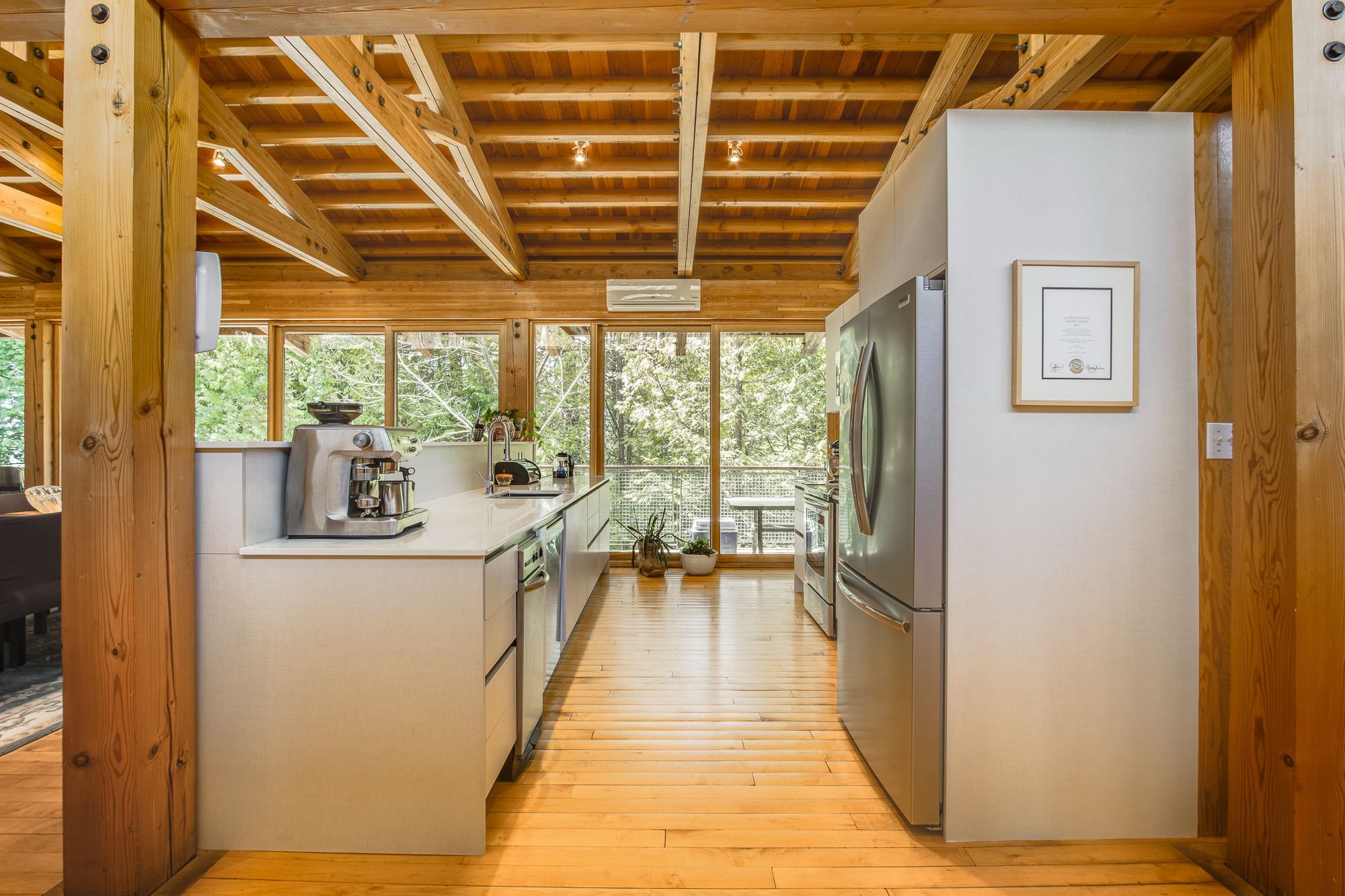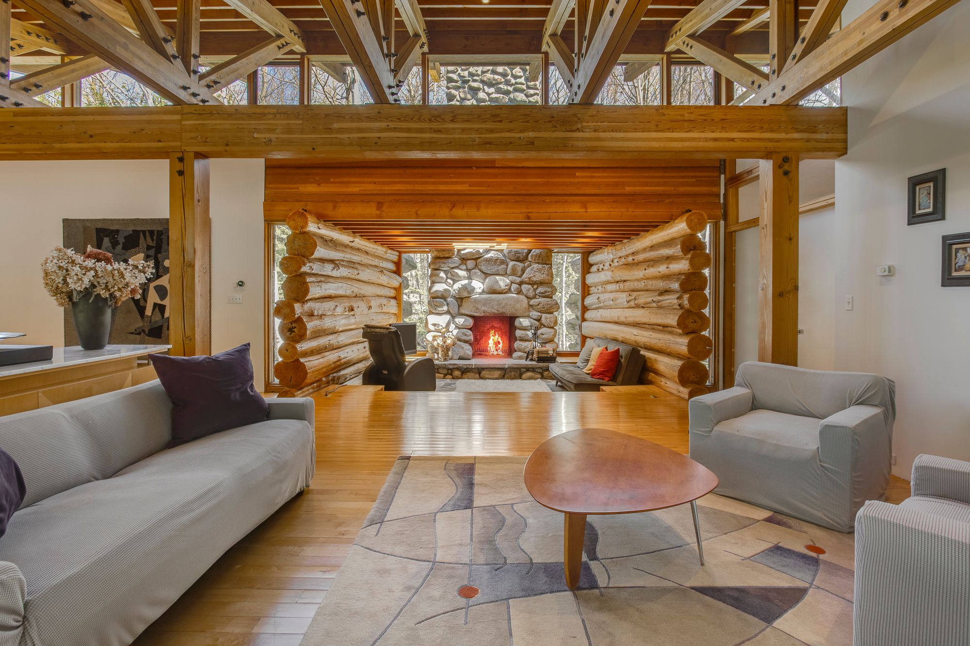 Nestled within the exclusive Cedar Ridge community in Tiny Township, this architect-designed retreat offers a rare opportunity to own a custom waterfront home. Designed by acclaimed architect Peter Bohlin - whose work includes Bill Gates summer residence - this one-of-a-kind Georgian Bay residence was honoured with the 2003 Residential Architect Design Award, recognizing its architectural excellence. Thoughtfully designed & expertly built in 2000, the home balances modern sophistication with a deep respect for its Georgian Bay surroundings. With over 5,800 sq ft of finished living space, including a 2,750 sq ft walkout lower level, the home features 3+2 bedrooms and 4 bathrooms, including a private principal suite. Floor-to-ceiling glass and rich post & beam construction with imported California pine create light-filled interiors that creates a seamless connection to the outdoors. At the heart of the home, a soaring stone wood-burning fireplace brings warmth & architectural impact to the open-concept living & dining areas. Sleek, modern & efficient, the kitchen reflects the homes quiet sophistication & easy flow for everyday living & entertainment. The fully finished walkout level includes additional bedrooms, abundant natural light, & a sauna - perfect for relaxation after a day on the water, whether paddling the shoreline, lounging by the dock, or simply enjoying the peaceful surroundings. Built with enduring quality, with in-floor radiant heating on both levels, a new boiler & hot water tank (2025), & propane generator for reliable 4 season comfort. The 2ac forested lot features 246ft of shoreline on Georgian Bay. A band of evergreens provides natural privacy, with the potential to open sightlines to Christian Island if desired. Just a 2hr drive from Toronto, this architectural treasure is nestled among other exceptional properties in one of Georgian Bays most prestigious communities offering privacy, serenity, & timeless design that will endure for generations.