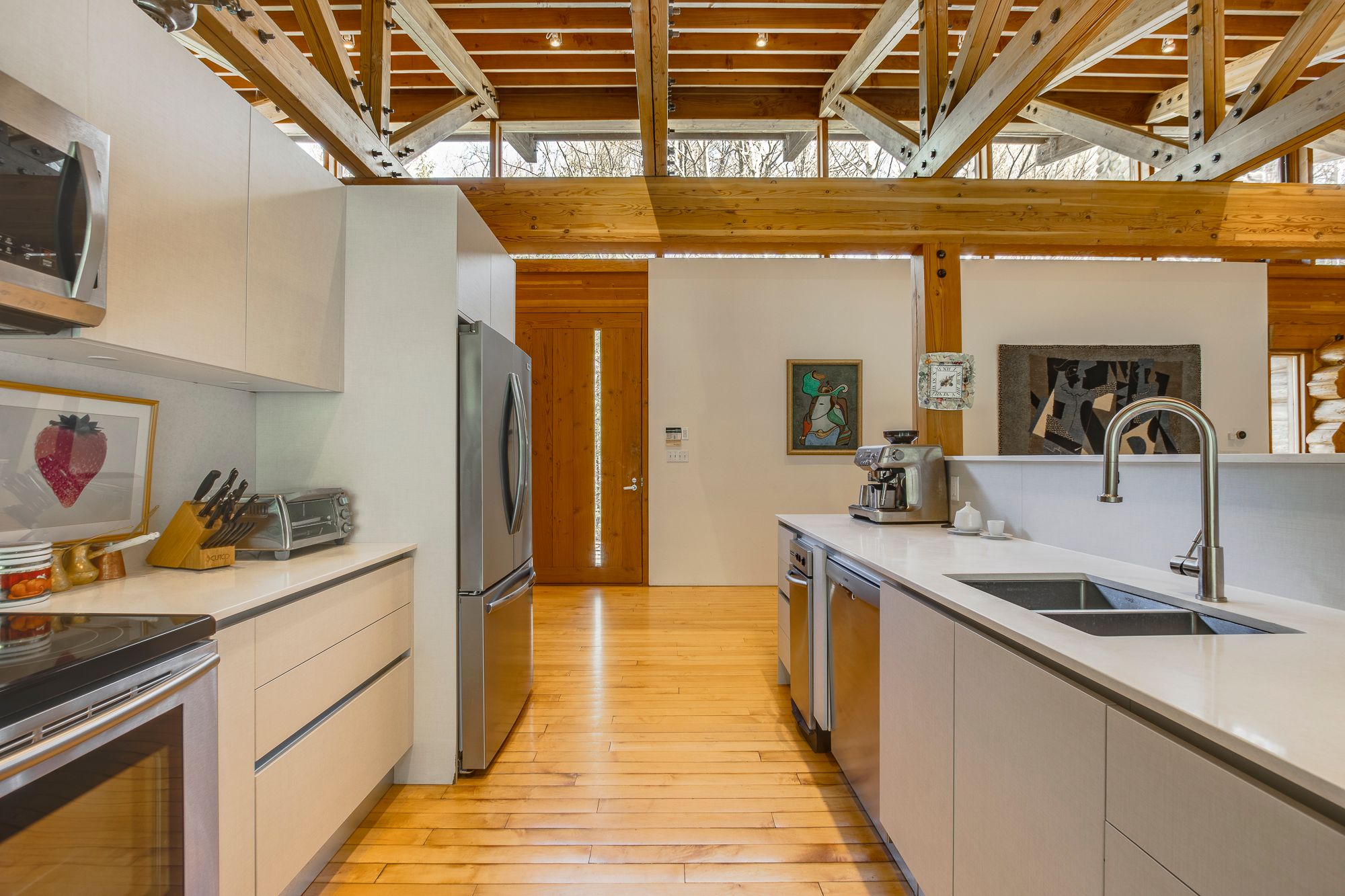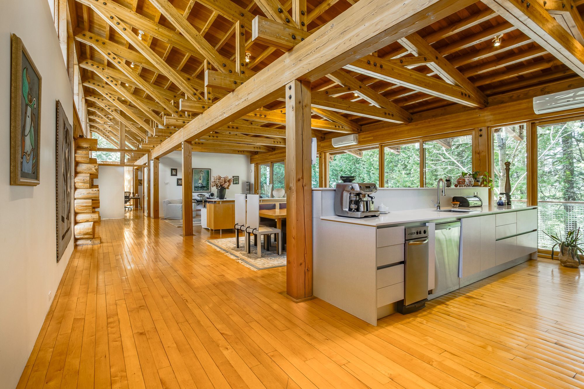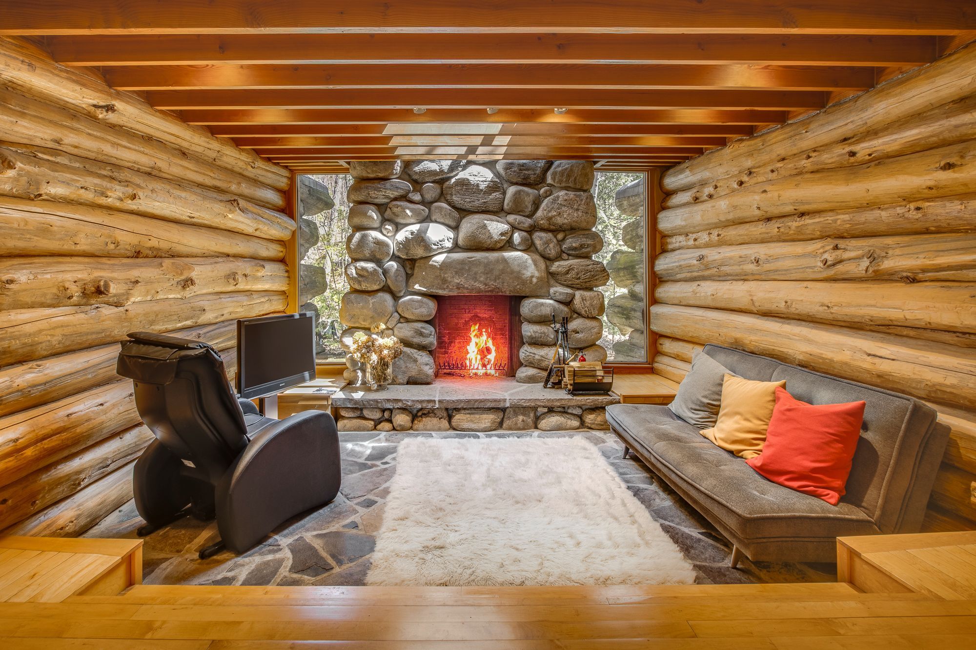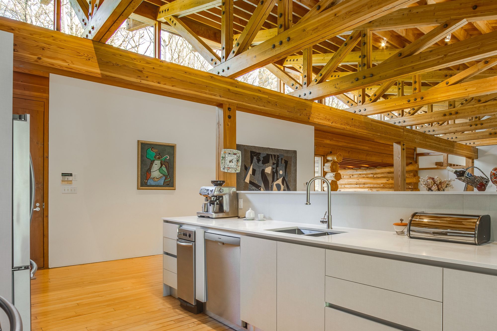 Nestled within the exclusive Cedar Ridge community in Tiny Township, this architect-designed retreat offers a rare opportunity to own a custom waterfront home. Designed by acclaimed architect Peter Bohlin - whose work includes Bill Gates summer residence - this one-of-a-kind Georgian Bay residence was honoured with the 2003 Residential Architect Design Award, recognizing its architectural excellence. Thoughtfully designed & expertly built in 2000, the home balances modern sophistication with a deep respect for its Georgian Bay surroundings. With over 5,800 sq ft of finished living space, including a 2,750 sq ft walkout lower level, the home features 3+2 bedrooms and 4 bathrooms, including a private principal suite. Floor-to-ceiling glass and rich post & beam construction with imported California pine create light-filled interiors that creates a seamless connection to the outdoors. At the heart of the home, a soaring stone wood-burning fireplace brings warmth & architectural impact to the open-concept living & dining areas. Sleek, modern & efficient, the kitchen reflects the homes quiet sophistication & easy flow for everyday living & entertainment. The fully finished walkout level includes additional bedrooms, abundant natural light, & a sauna - perfect for relaxation after a day on the water, whether paddling the shoreline, lounging by the dock, or simply enjoying the peaceful surroundings. Built with enduring quality, with in-floor radiant heating on both levels, a new boiler & hot water tank (2025), & propane generator for reliable 4 season comfort. The 2ac forested lot features 246ft of shoreline on Georgian Bay. A band of evergreens provides natural privacy, with the potential to open sightlines to Christian Island if desired. Just a 2hr drive from Toronto, this architectural treasure is nestled among other exceptional properties in one of Georgian Bays most prestigious communities offering privacy, serenity, & timeless design that will endure for generations.