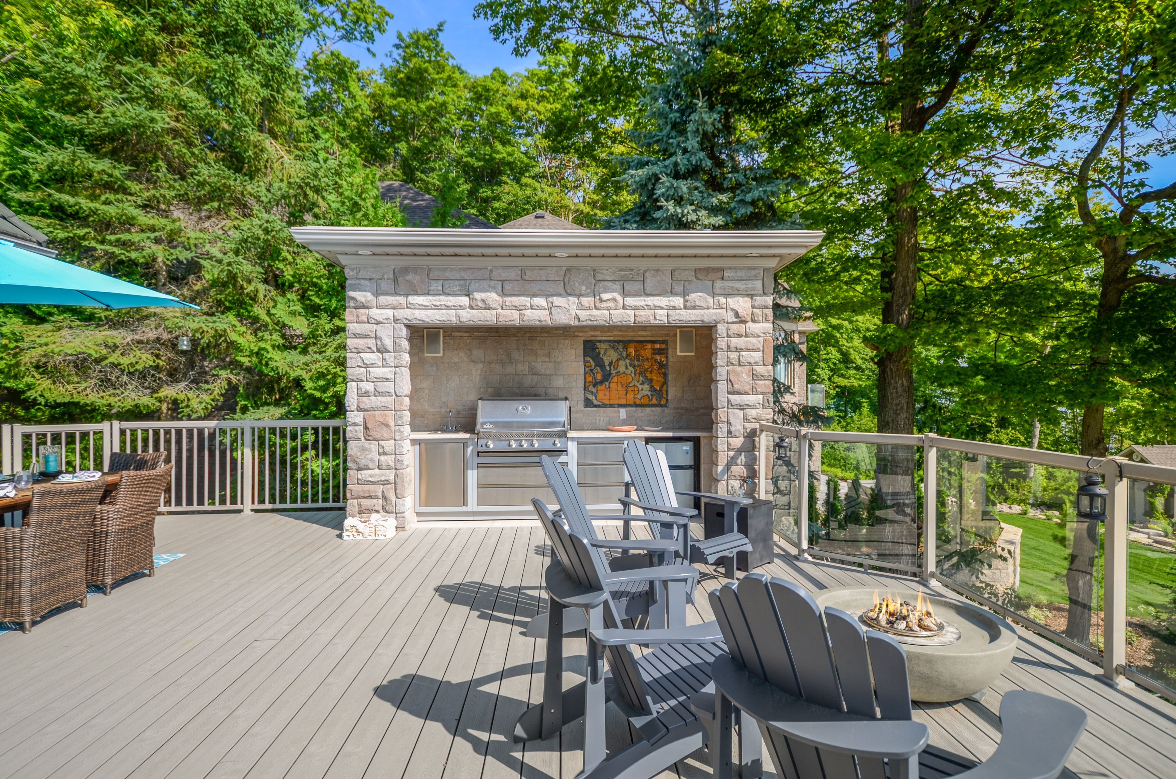 - Exterior Features: Built-In-BBQ, Deck, Landscaped, Landscape Lighting, Patio, Recreational Area, Seasonal Living, Year Round Living, Hot Tub, Fishing