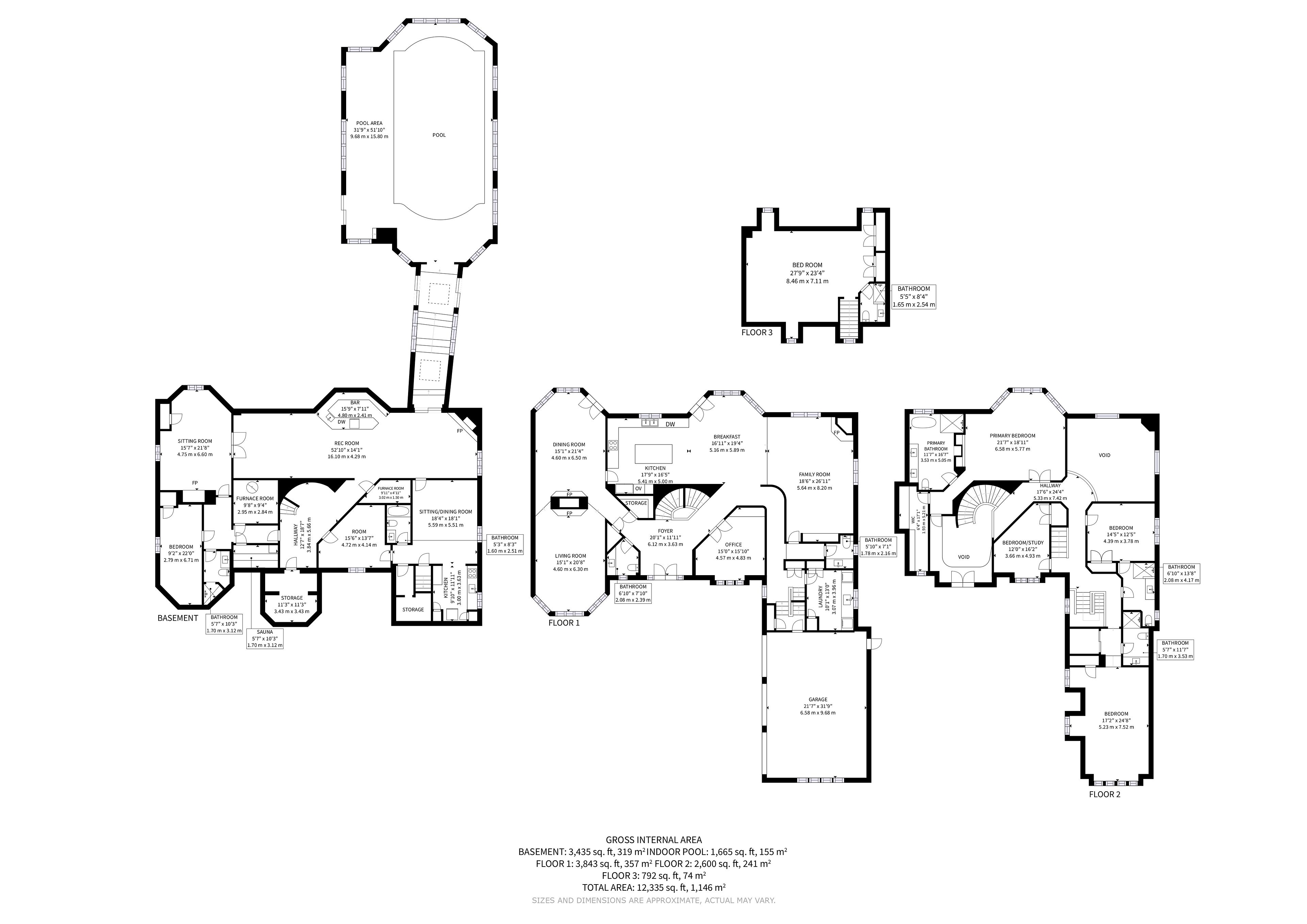 Magnificent Mississauga Estate! Nestled in one of GTA most prestigious Streets, near mega mansion homes! This Mansion offers over 1/2 Acre lot at 117' x 277' creating a serene, Muskoka-Like Setting, features Quality Custom-Built Boasts outstanding size at 12,321 sqft of Living Space with 8900 sqft above grade, a Resort-Style Indoor Swimming Pool! Deep front setback ensures privacy, Exceptional Curb Appeal complemented by the Elegant Architecture, beautiful Landscaped garden, Mature trees, Iron fenced with 2 auto double-door Gates. From glass doors enclosed foyer, you are Invited by a soaring 2-story elegant foyer with solid brass art deco railing spiral stairs. Spectacular Family room features Cathedral-Like open & grand atmosphere. Impressive Living room & Dining rooms showcase 10.5' &10' coffered ceilings, with gorgeous 2-side fireplace between. The State-of-Art chef-inspired gourmet Kitchen features Luxurious elements & huge Custom island; Very spacious breakfast area w/o to sundeck. The office w/wood bookshelves & wall panels. 2 stairs leading to 2nd level, stunning overlooks the family room. Primary Bedroom features 2-side fireplace, new luxury 5pc ensuite, and large windows overlook back garden. Large 2nd bedroom has its own ensuite, A private stairs leading to the huge & tranquil 5th bedroom on 3rd floor offers its own Hvac system. Entertaining basement boasts 9' ceiling, self-contained unit, Sauna, 2 bathrooms, Rec room with Wet Bar and walks up to the inspired Indoor Pool with Skylights, perfect for Year-Round family activities! Interlocking front yard w/Circular Driveway, 3 walkouts leading to East facing back garden, perennial landscaped gardens provide outdoor entertaining and relaxing in tranquility! It located minutes from top-rated schools, shopping centers, Mississauga Golf & Country Club, UTM, Erindale Park, Go Station, easy QEW access. This Estate offers a First-Class Living experience with a blend of Peaceful Retreat & Enriched Home Comforts!!