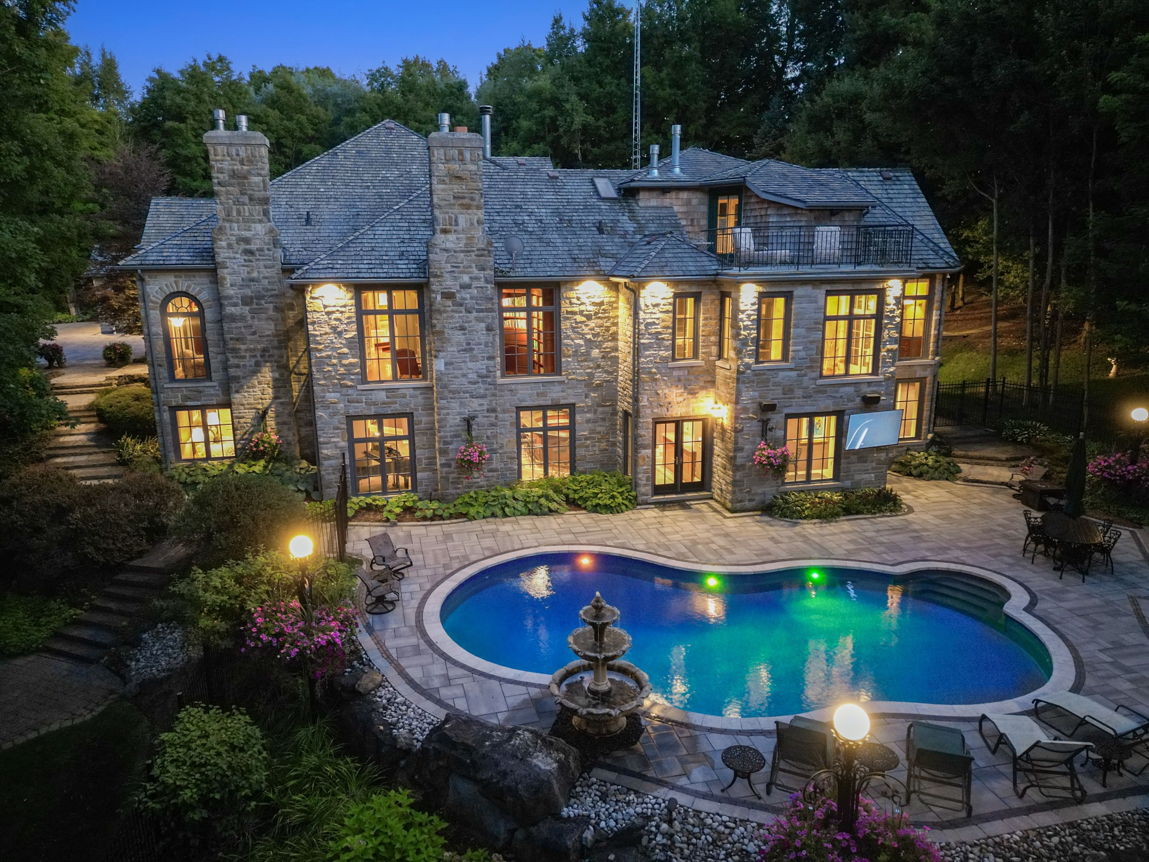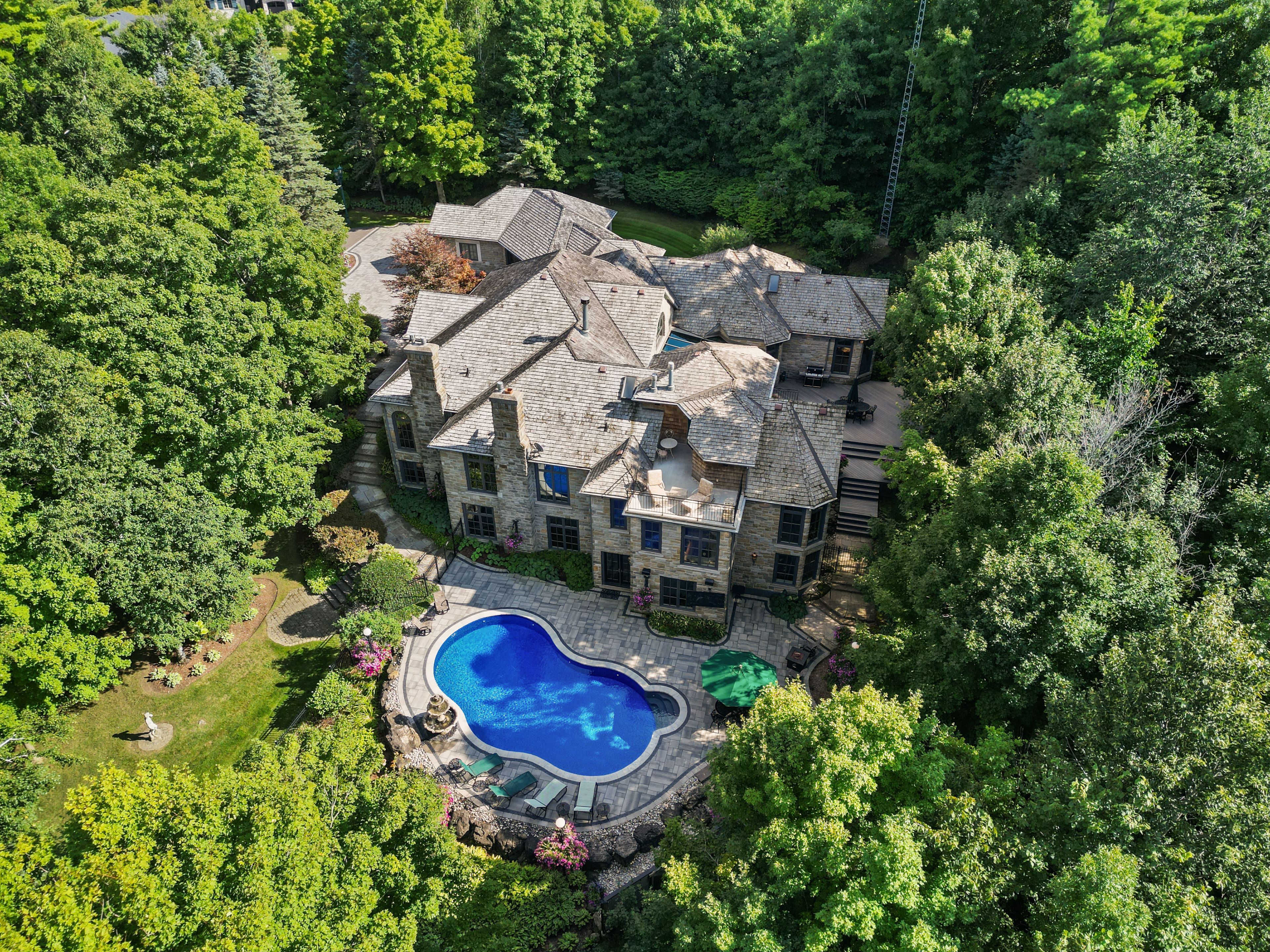 Welcome to an extraordinary luxury residence set within the prestigious enclave of Whispering Pines-a private, tree-lined haven of country estates tucked away on a quiet cul-de-sac. This custom-built estate offers the perfect balance of timeless craftsmanship, refined elegance, and modern comfort. Resting on a private 3-acre lot, the property is beautifully landscaped and features a serene pond with fountain, creating a truly picturesque setting. At the rear, a newly renovated pool, hot tub, and expansive patio overlook the lush gardens, providing an exceptional space for outdoor living and entertaining. Spanning nearly 11,000 sq. ft. of finished living space, the home was designed with scale and sophistication in mind. Inside, grand principal rooms offer the ideal setting for both everyday family living and hosting large gatherings. The residence features four spacious bedrooms, a wine cellar and tasting room, a four-car garage, and thoughtful architectural details throughout-delivering a rare blend of luxury and functionality. Ideally located, the property offers quick access to Highway 401 and is just a short drive to Guelph, Milton, Burlington, and Toronto Pearson International Airport, providing outstanding convenience without compromising the tranquility of its secluded setting. Every detail speaks to prestige and privacy, making this one of the most desirable offerings in the region.