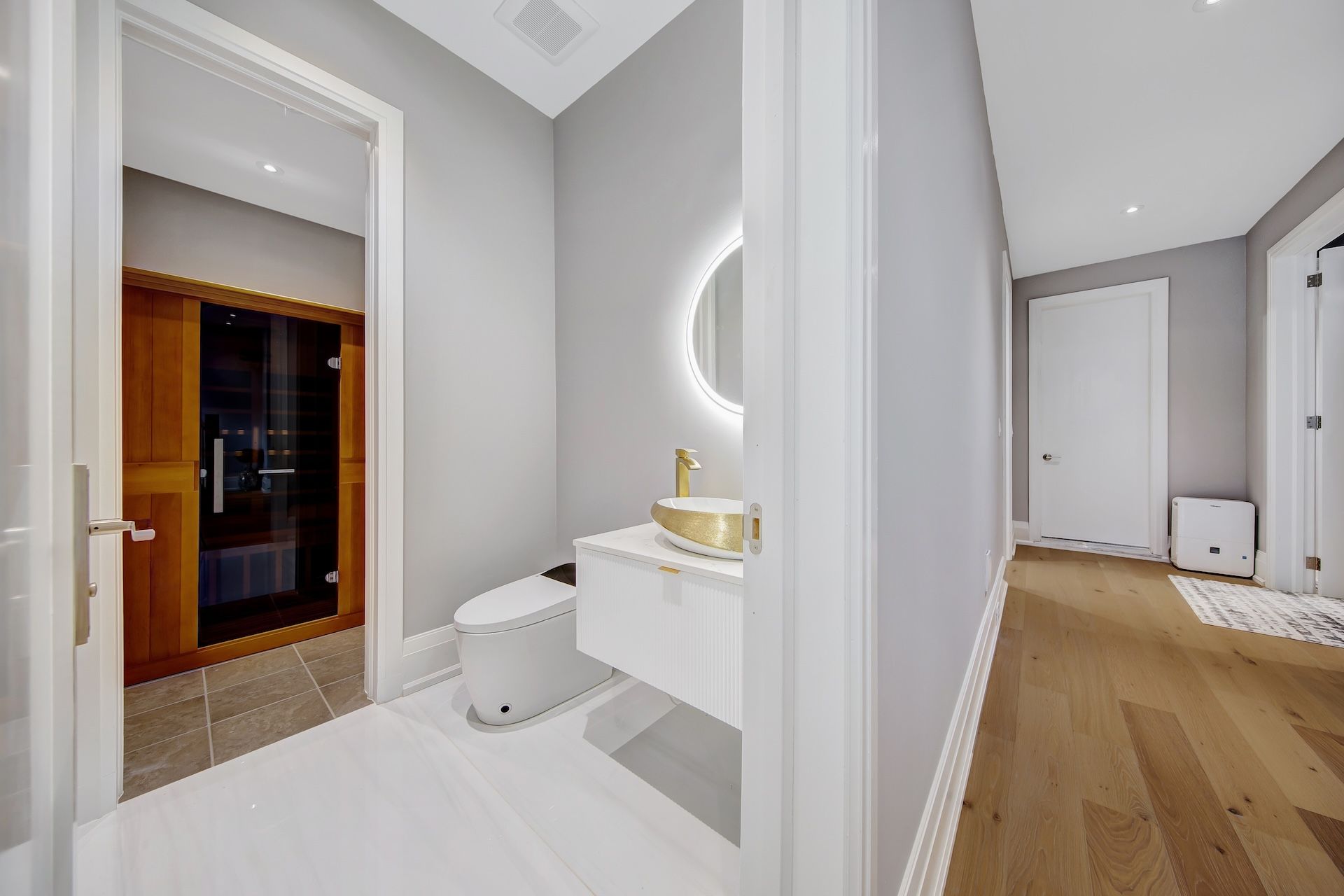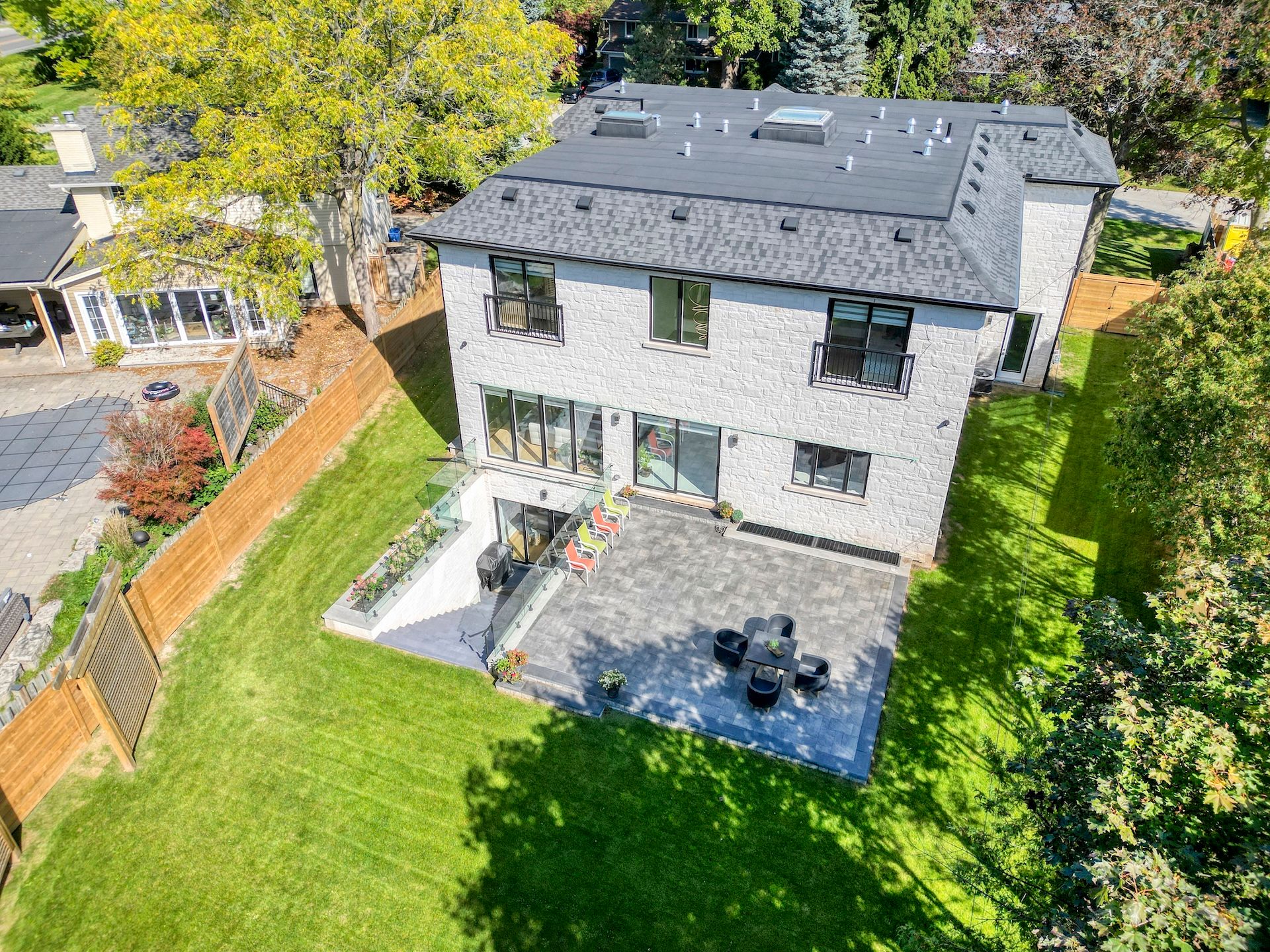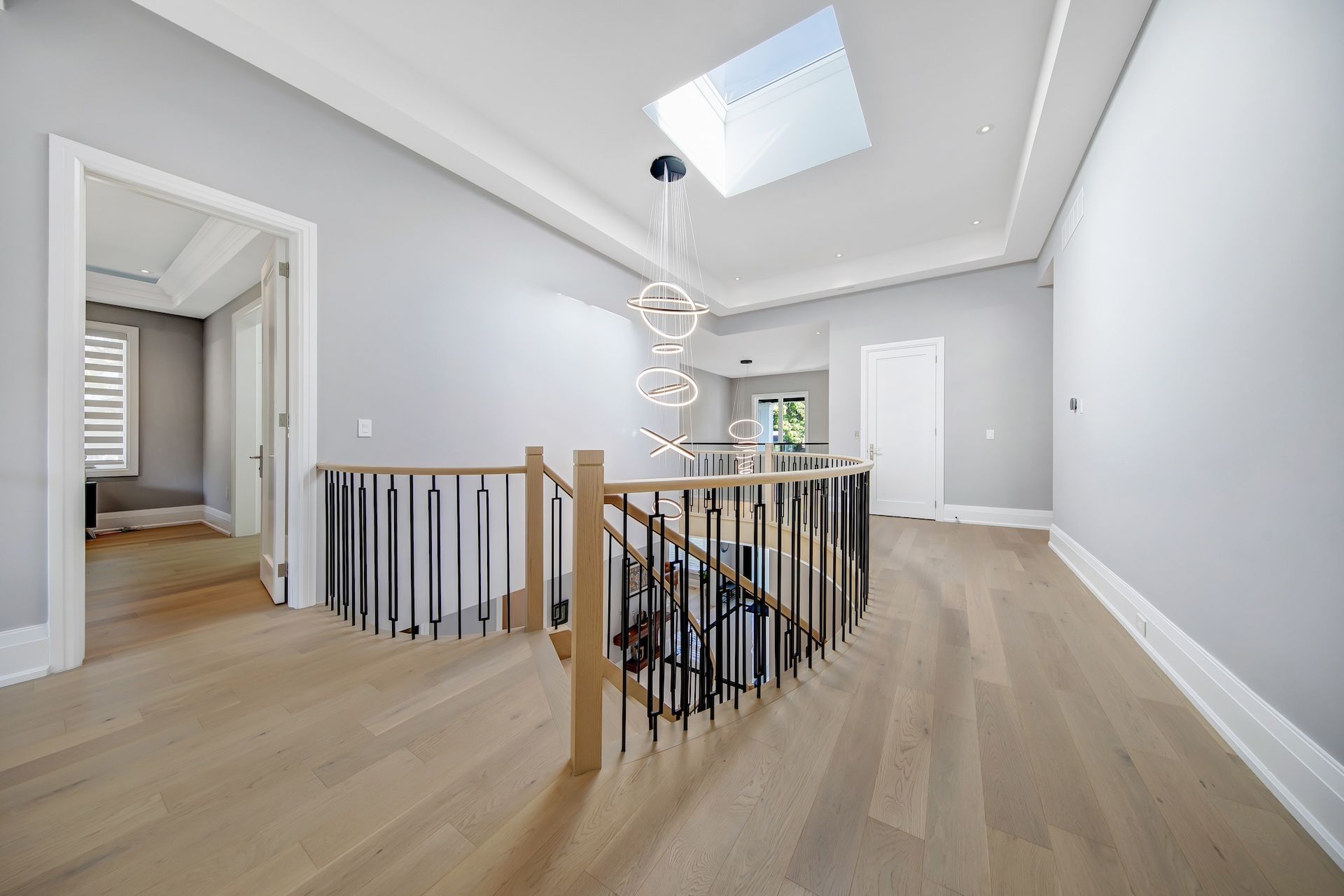 Welcome to 150 Wolfdale Avenue. Entertainers dream home, built by Ambassador Fine Custom Homes in 2023 fall, on a 0.36 acres in Southwest Oakville, south of Lakeshore Road. With 7276 square feet of living space on all three levels, this home perfectly combines sophisticated luxurious design with quality construction to create the ultimate package. The main floor is beautifully designed with exquisite detail radiant heated large porcelain tiles. The near 11-foot ceilings provide an open-airy feeling throughout. No estate home would be complete without a grand foyer and and this home has just that with 22 -foot ceilings, center of the house with 24-foot ceilings with large skylight allowing the entire house to be flooded with natural light while also highlighting the stunning hanging circular staircase beneath. Built-in wine cellar storage for over 180 bottles. The kitchen is a show piece with stunning 10-foot waterfall island, quartz slab backsplash and two-toned cabinetry and top-of-the-line Wolf ,Sub-Zero & Miele appliances. The kitchen/great room combination is designed for large scale entertaining with it being open concept to the dining room. A tucked away mud room, walk in closet with custom shelving & an elegant custom powder room are the perfect spaces to keep your family organized while providing inside access to both the garage and rear yard. Main floor you find your primary home office with front yard views. Elevator besides mud area travels all 3 floors for convenience of movement. The upper hallway stops you with a beautifully vaulted ceiling, skylights. Primary bedroom is located across the rear of the home taking in the best views of the backyard with ample natural light. The open concept walk-in closet with a skylight complements the primary ensuite, is a beautiful combination of rich tones to create the ultimate spa oasis. 3 additional bedrooms, Laundry & Library are found upstairs, each one uniquely decorated & appointed with closets and ensuites.