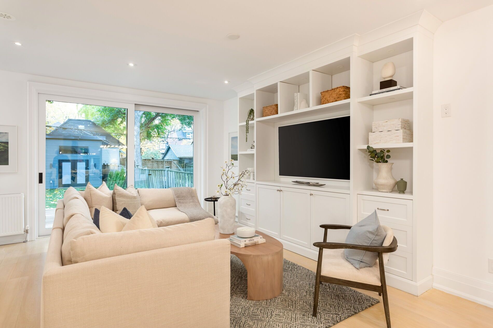 An exquisite, fully reimagined Edwardian home with high-end designer finishes, and the very best of Roncesvalles Village at your doorstep. Experience luxurious interiors, soaring ceilings, exceptional craftsmanship, and a beautifully landscaped 27' x 154' lot. Offering 3,740 sq. ft. of total living space, this residence blends timeless elegance with modern functionality. Inside, radiant in-floor heating and solid core doors enhance comfort and quiet sophistication. The open plan main floor is anchored by the chef's kitchen which impresses with a large island, high-end appliances and a walk-in pantry. It is complemented by a living room with a gas fireplace & a family room with a wall of custom built-ins, Sonos sound system with flush mount speakers & wall mounted TV. In addition, there is a powder room & floor-to-ceiling sliding glass doors to the backyard. The sumptuous primary retreat offers a spa-inspired ensuite, private balcony, and separate dressing room, creating a haven of relaxation. Upstairs, high baseboards & tray ceilings add architectural depth, while the underpinned lower level - featuring 9' ceilings - includes a steam shower, exercise room, a home office that doubles as a guest bedroom with a Murphy bed enclosed by floor-to-ceiling glass & custom built-ins. Outdoors, the professionally landscaped grounds feature a patio, a composite deck, irrigation system, and a large powered storage shed, providing an ideal extension of the living space. For those who value comfort and connection, 12 Hewitt Avenue is where sophistication meets ease. With a perfect Transit Score (10 minute walk to UP Express, GO & subway), nearby French Immersion schools and proximity to High Park - along with the cafes, shops, and dining of Roncesvalles just steps away - this remarkable home offers an unrivalled blend of heritage charm, modern convenience, and urban sophistication. *Info available re: existing off-street parking arrangement.