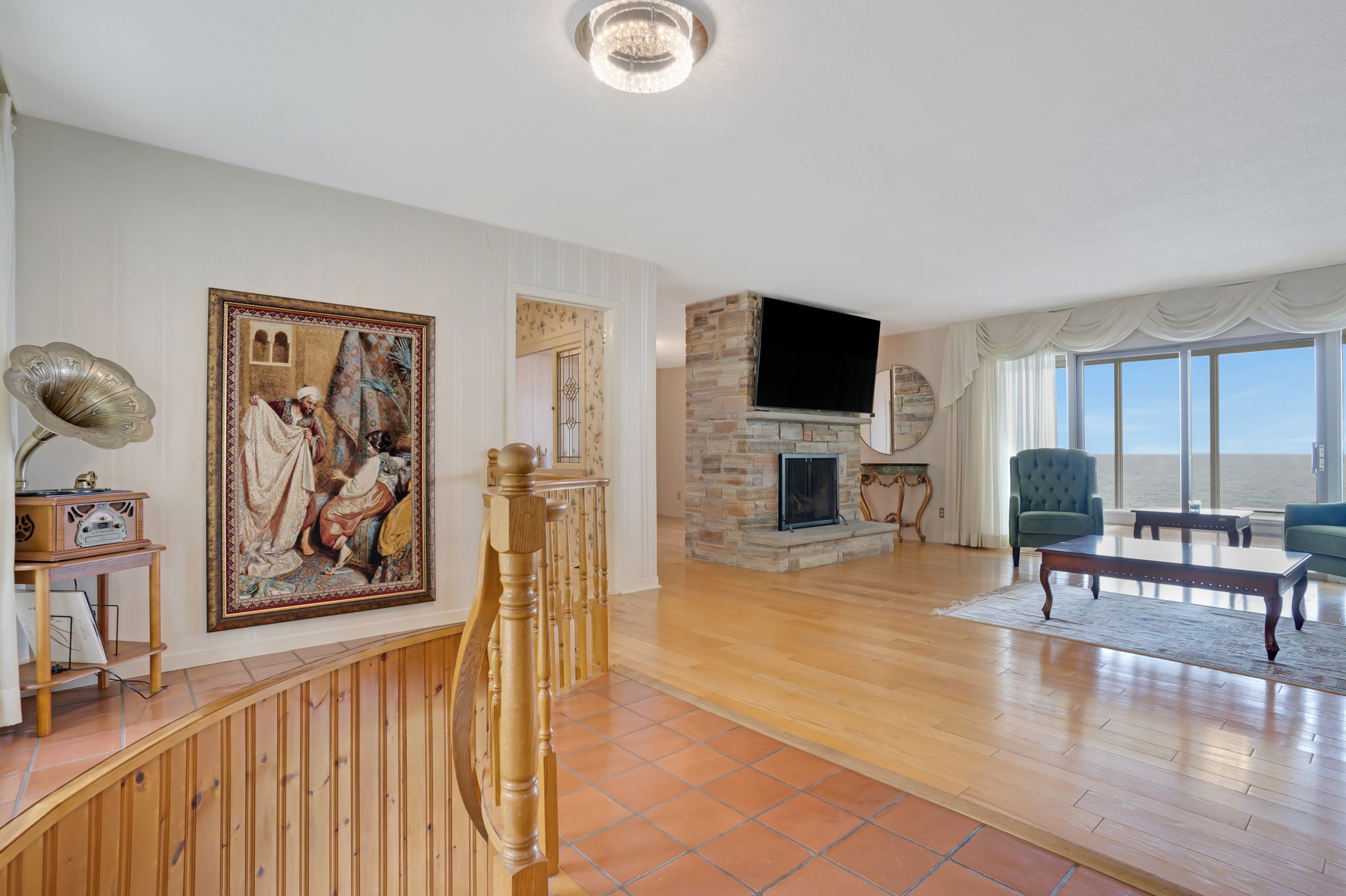 Welcome to an exceptional opportunity on Lakeshore Road, an extraordinary 100ft wide waterfront lot w/direct shoreline access and breathtaking views of Lake Ontario, including the Toronto city skyline. This fabulous raised bungalow w/a walk-out lower level offers over 2,200 sq ft on the main level and sits on a beautifully landscaped 100 x 135 lot. The property also includes modern architectural plans by David Small Designs, presenting a rare chance to renovate or rebuild your dream home on one of the few remaining wide-lot waterfront properties in the area. The home has been meticulously maintained and offers a spacious, light-filled layout. Floor-to-ceiling windows on both the main and lower levels capture sweeping, uninterrupted views of the lake, filling the home with natural light and bringing the outdoors in. The standout dining room addition is wrapped in glass, creating a truly immersive lakefront living experience. The main level features 3 bedrooms and 2 full bathrooms, along with a separate private office ideal for working from home. The primary bedroom retreat includes sliding doors that open to a private deck, where you can enjoy spectacular lake views morning to night. Rich hardwood flooring and elegant design elements add warmth and character throughout the home. The bright, walkout lower level offers even more living space, featuring a spacious recreation room, a games area, and a 3-pc bathroom. With large windows that echo the main floor's stunning views, the lower level feels just as open and connected to the surrounding landscape, making it perfect for entertaining, hosting guests, or creating a peaceful retreat. Outside, enjoy complete privacy and direct access to the waters edge, ideal spot to relax, watch the sunrise, or take in the city skyline across the lake. Located within walking distance to parks, schools, and shopping, this property offers a truly unique opportunity to live in one of the area's most coveted lakefront settings.