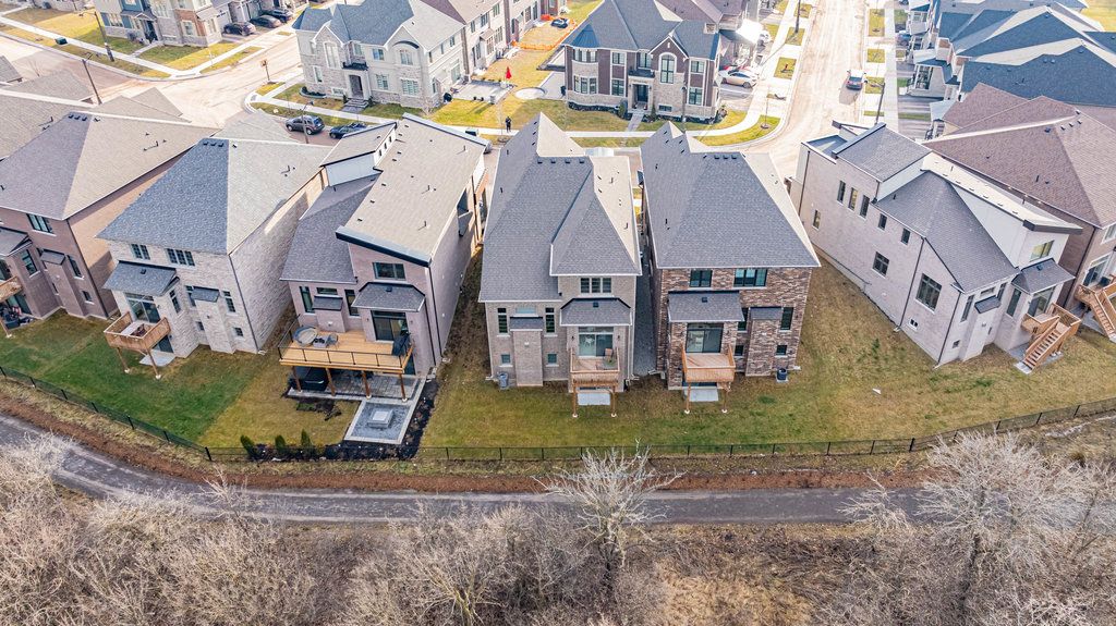 Welcome to 1456 Ford Strathy Cres, an exceptional Mattamy Winfield model situated on a premium ravine lot in Oakville's highly sought-after Upper Joshua Creek community. The seller invested an impressive $255,000 lot premium to secure this rare, private setting with no rear neighbours, creating a truly special backdrop for everyday living. Offering approximately 3,109 sq ft of beautifully finished space and over $150,000 in builder upgrades, this home is tastefully designed and completely move-in ready. Soaring 10' ceilings on the main level and 9' ceilings on the upper and lower levels enhance the home's bright, open feel. White oak engineered hardwood flows throughout, complemented by a vaulted great room ceiling, gas fireplace, triple-glazed windows, and an abundance of natural light with serene ravine views. The modern white kitchen is both stylish and functional, featuring quartz countertops, soft-close cabinetry with pot drawers, and an oversized island with breakfast bar-perfect for everyday living and entertaining. The open-concept great room and dining area provide an inviting space to gather, while the practical mudroom with inside garage access adds everyday convenience. Upstairs, the primary suite offers a tranquil retreat with tray ceiling, walk-in closet, and spa-inspired ensuite with freestanding soaker tub and glass-enclosed shower. Three additional generous bedrooms, two full bathrooms, a laundry room, and an open loft overlooking the great room complete the upper level. The unfinished walkout basement boasts 9' ceilings, oversized sliding doors, bathroom rough-in, and large storage-offering outstanding potential to customize your dream space. Located on a quiet crescent, close to parks, trails, shopping, dining, and major highways, this home blends luxury, privacy, and lifestyle in one remarkable offering. Welcome to your forever home!