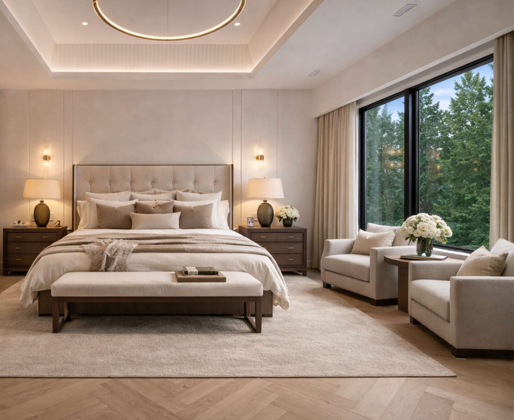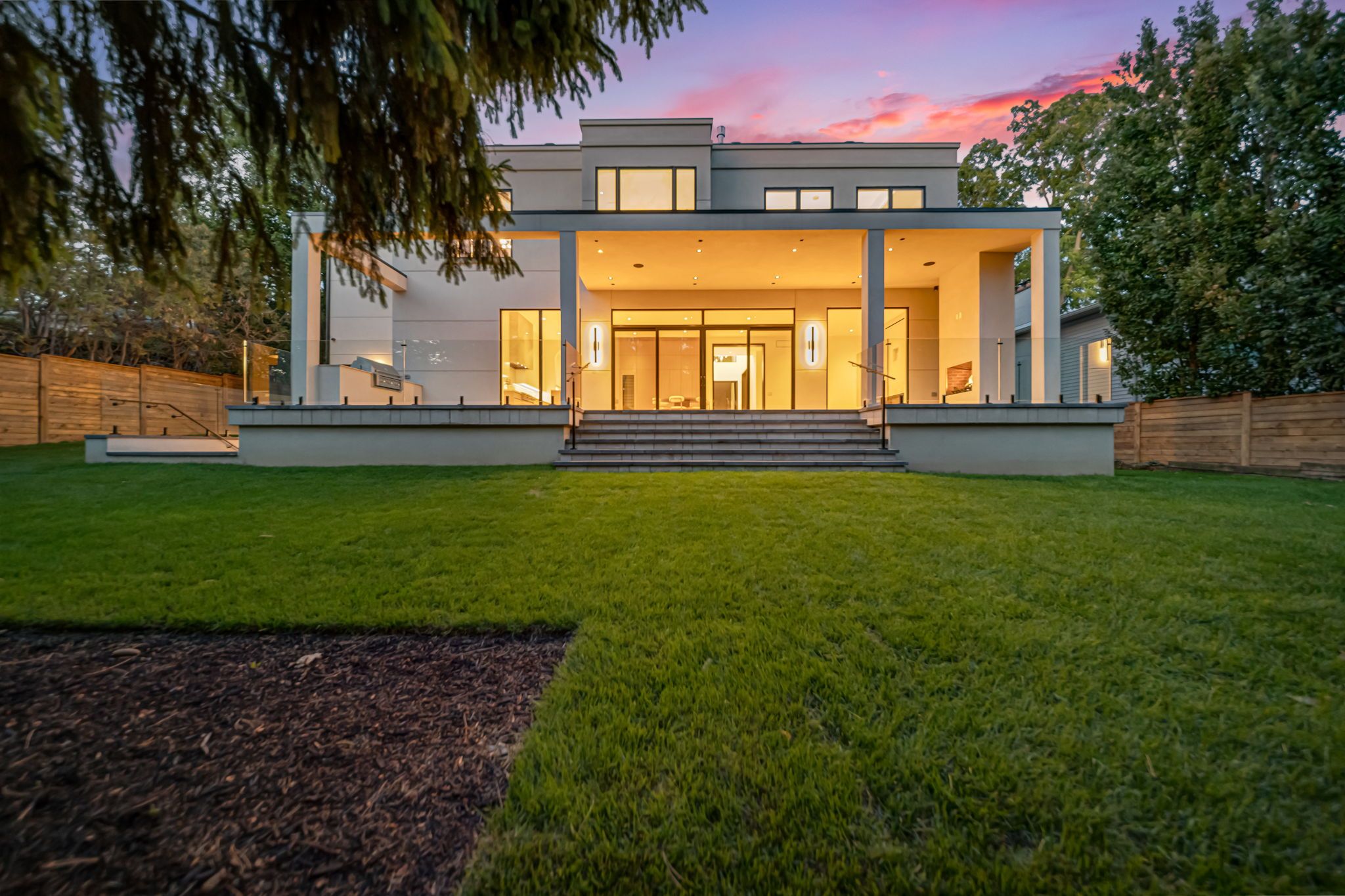 This custom luxury residence is a masterclass in design, proportion, and craftsmanship. Every detail has been thoughtfully curated, creating a true statement of contemporary living. Offering over 6,000 sq ft of high-end living space, this home features 5 bedrooms, 6 bathrooms, a chef-inspired kitchen with bespoke cabinetry, an open-concept main floor designed for entertaining, and a fully finished lower level with theatre, gym, wine wall, and walk-up access to the outdoor living space. Perfectly designed for both family life and entertaining, the interiors combine functionality with elegance in every room. The home is set on a premium 90 x 128 lot in Oakville's coveted Coronation Park neighbourhood. Known for its estate properties, mature trees, and proximity to Lake Ontario, this community offers the best of Oakville living minutes to Bronte Village, Downtown Oakville, and top-rated private and public schools. The exterior is clad in timeless limestone with expansive windows, a wide private drive, and a 2-car garage. Professionally landscaped grounds include a covered outdoor living space with fireplace and grilling area, ideal for year round entertaining. From the grand foyer to the backyard retreat, every element of this home has been designed to impress. Some photos are virtually staged.