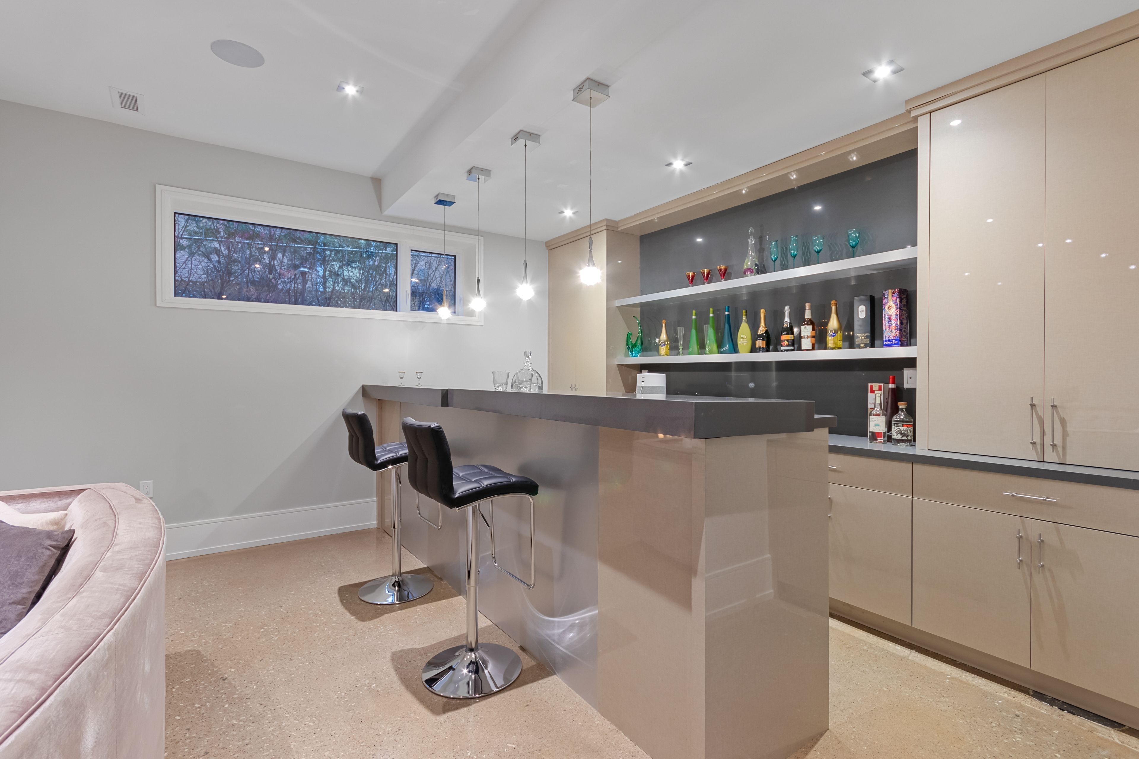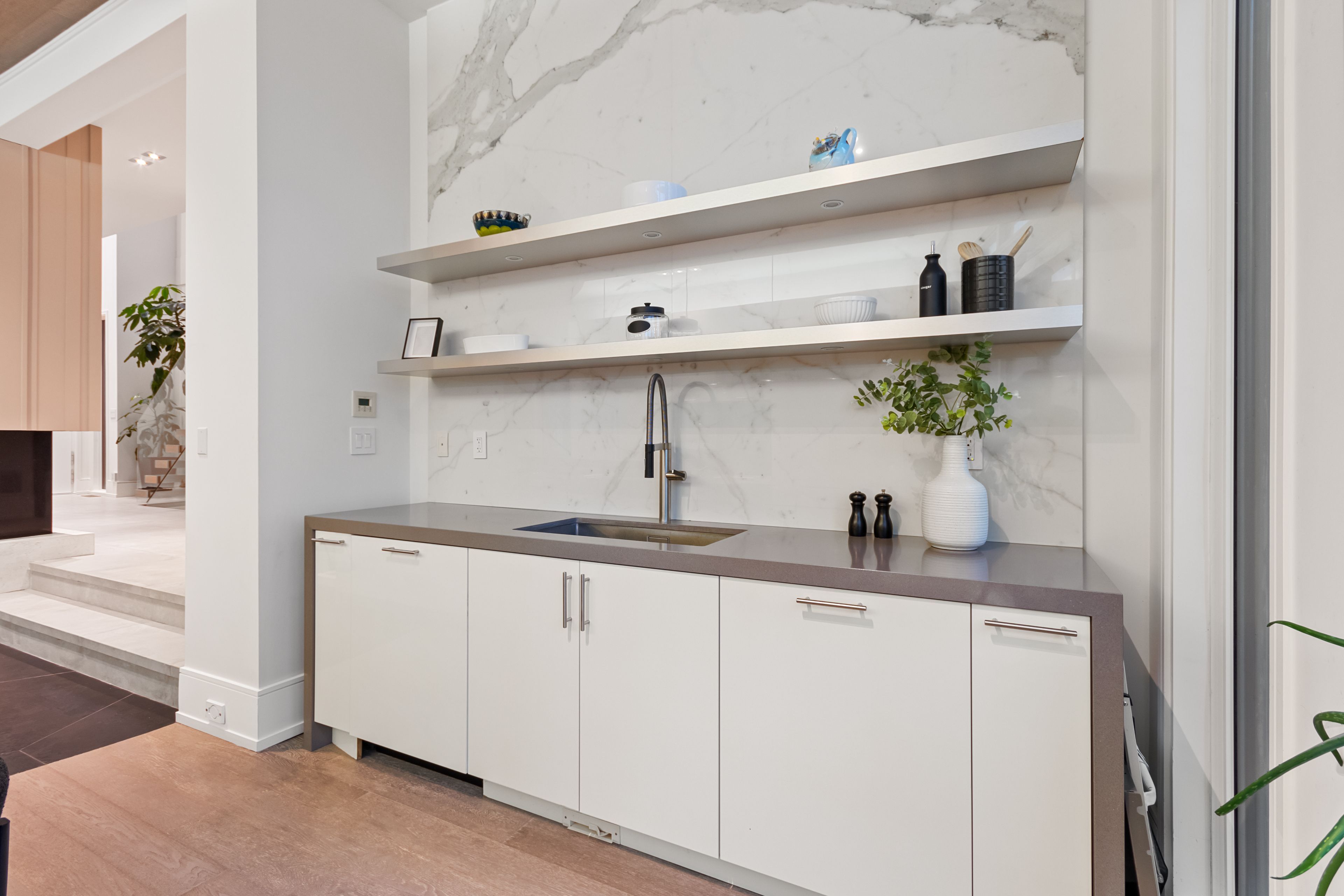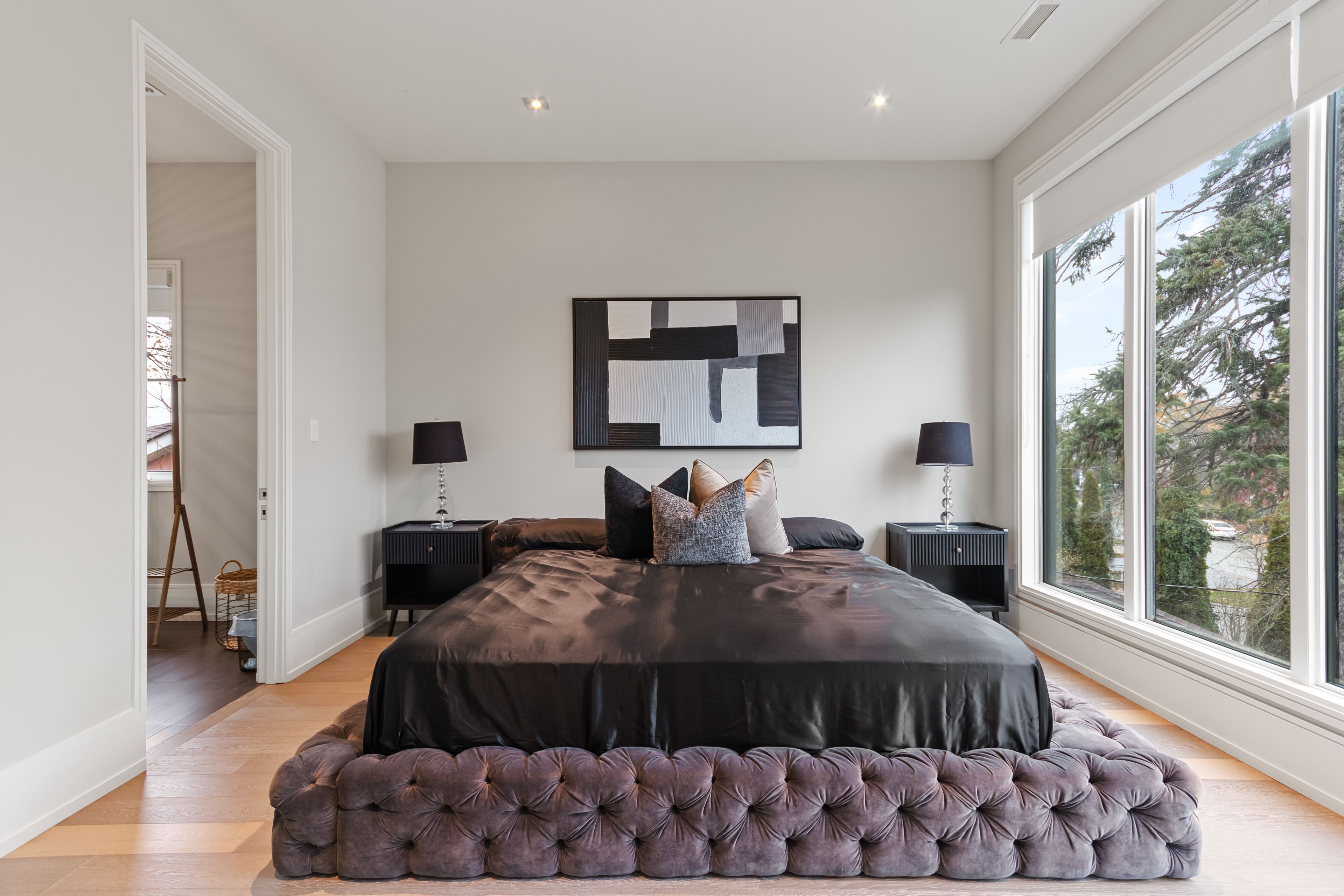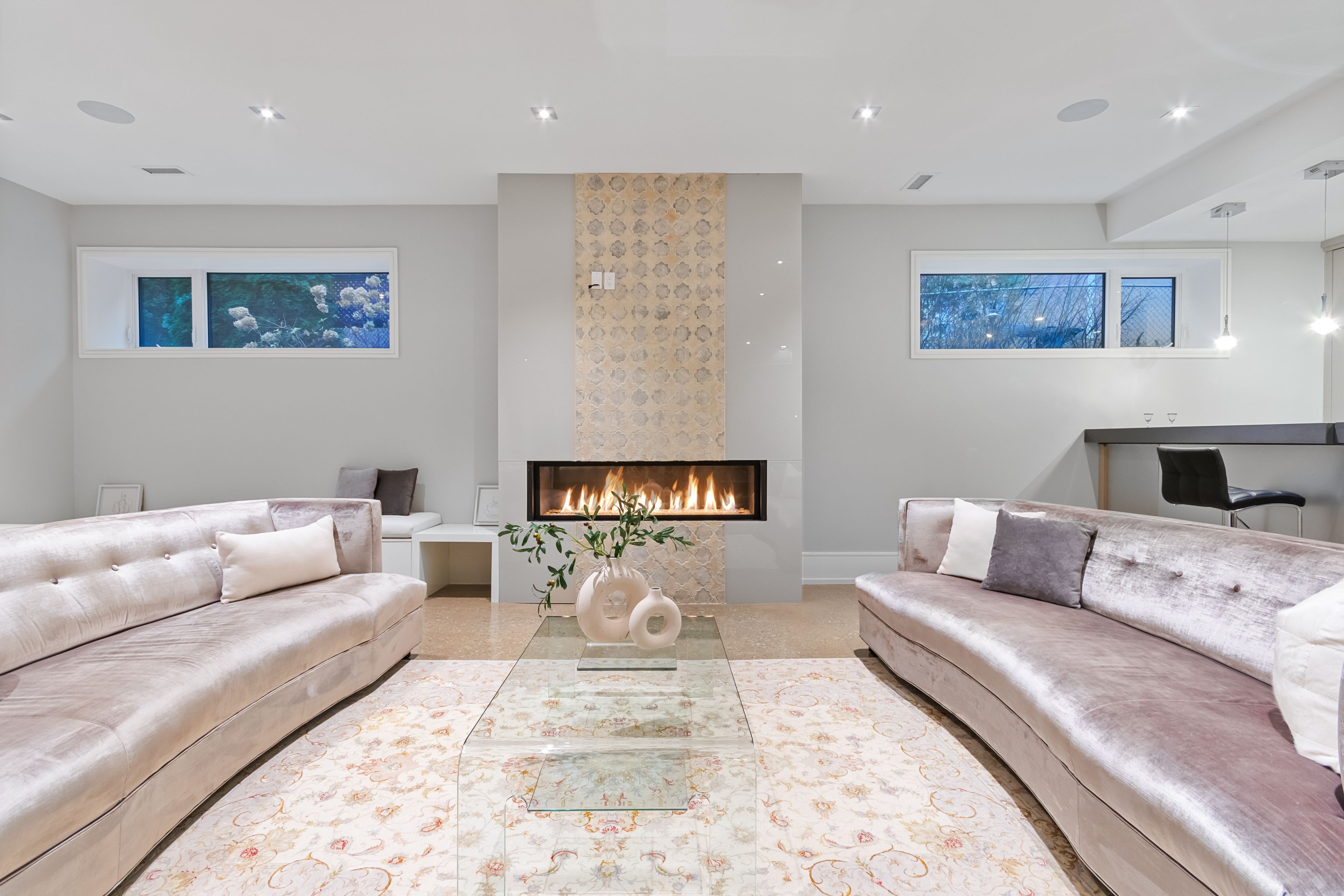 Set along South Etobicoke's prestigious lakefront corridor, this modern estate offers over 6,200 SF of refined interiors paired with resort-style amenities seldom available. Bold in presence and uncompromising in design, it sits behind mature trees with an architectural profile that frames uninterrupted Lake Ontario views. A dramatic open-to-above foyer introduces the home, featuring a floating glass staircase, overhead skylights, and a direct views of the water. The main level unfolds as a sequence of sophisticated living spaces defined by warm wood ceilings, gallery-like walls, and a sculptural double-sided linear fireplace. Near floor-to-ceiling windows wrap the home, inviting natural light and capturing the shoreline from every angle. The chef's kitchen delivers a magazine-worthy experience with Wolf and Sub-Zero appliances, bespoke cabinetry, a custom backsplash, and a striking central island. Adjacent living and dining zones create a fluid setting for elevated entertaining or intimate evenings. Above, 4 serene bedroom suites each offer a walk-in closet and ensuite. The lakefront primary retreat features a boutique dressing room, spa-calibre ensuite with heated floors and a freestanding tub overlooking the water, plus a private balcony for quiet reflections. The lower level extends the home's resort-like character with a recreation lounge, bar, gym, sauna, steam room, wine cellar, and an additional guest suite, opening seamlessly to the tiered backyard. Outdoors, multiple terraces, mature landscaping, a heated pool, a hot tub, and sweeping lake vistas create a breathtaking environment for year-round enjoyment. Additional comforts include a heated driveway, architectural millwork, integrated lighting, and a layout designed for both luxury living and effortless hosting. Moments from waterfront trails, marinas, golf, and downtown Toronto, this estate offers a rare opportunity to own an impeccably crafted lakefront home.
