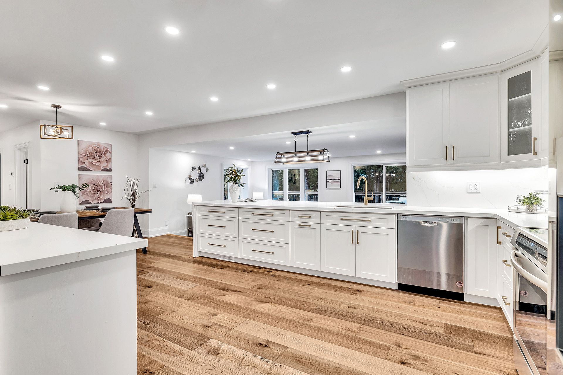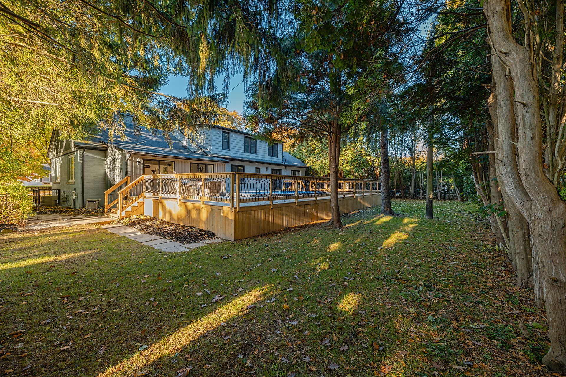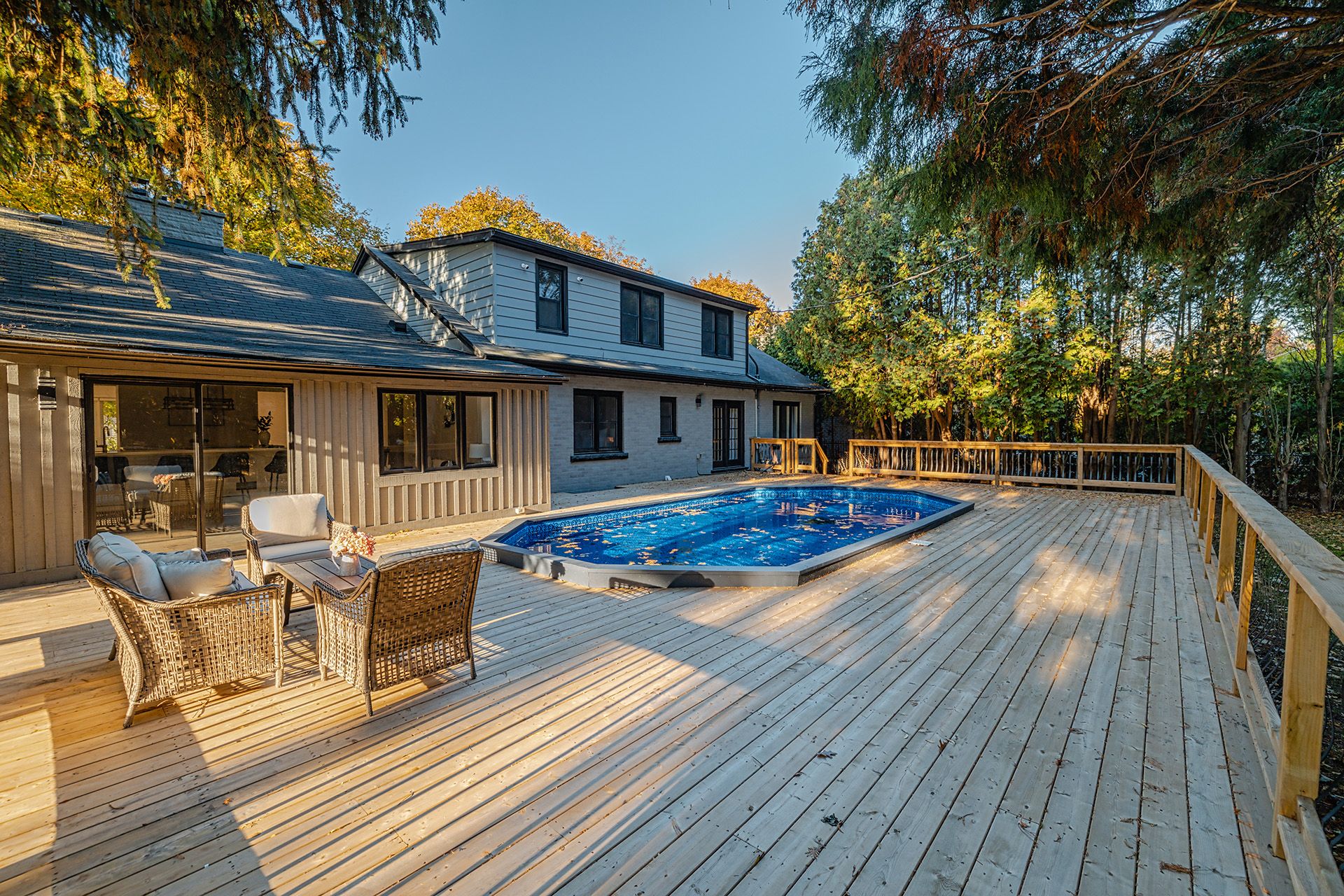 Nestled on one of South Aldershot's most serene, tree-lined streets-directly across from the Burlington Golf & Country Club-this fully reimagined luxury residence offers over 4,500 sq.ft. of refined living on an expansive 11,500+ sq.ft. lot. Every detail has been thought fully curated, showcasing exquisite craftsmanship, rich hardwood floors, and an abundance of natural light that fills the home with warmth and sophistication. The gourmet chef's dream kitchen serves as the heart of the home, featuring professional-grade appliances, quartz countertops, custom cabinetry, and a grand island overlooking the elegant family room with its 8-ft electric fireplace, large windows, and patio doors opening to the sun-soaked deck. The primary suite is a haven of serenity, complete with a custom walk-in closet and spa-inspired ensuite boasting heated floors, a freestanding soaking tub, glass shower, and dual vanities. Upstairs offers a private living area with a kitchenette, lounge, and ensuite bedroom-perfect for extended family or guests. The finished basement provides yet another private living space with two additional bedrooms, ideal for multi-generational living. Step outside to your private backyard oasis, featuring a new pool liner, sprawling 1,100 sq.ft. deck, lush professional landscaping, and mature trees offering total privacy. Enhanced with CCTV surveillance, new plumbing and electrical, heated floors in all bathrooms, and parking for 11 vehicles. Ideally located minutes from the lake, LaSalle Park, top-rated schools, shops, and major highway