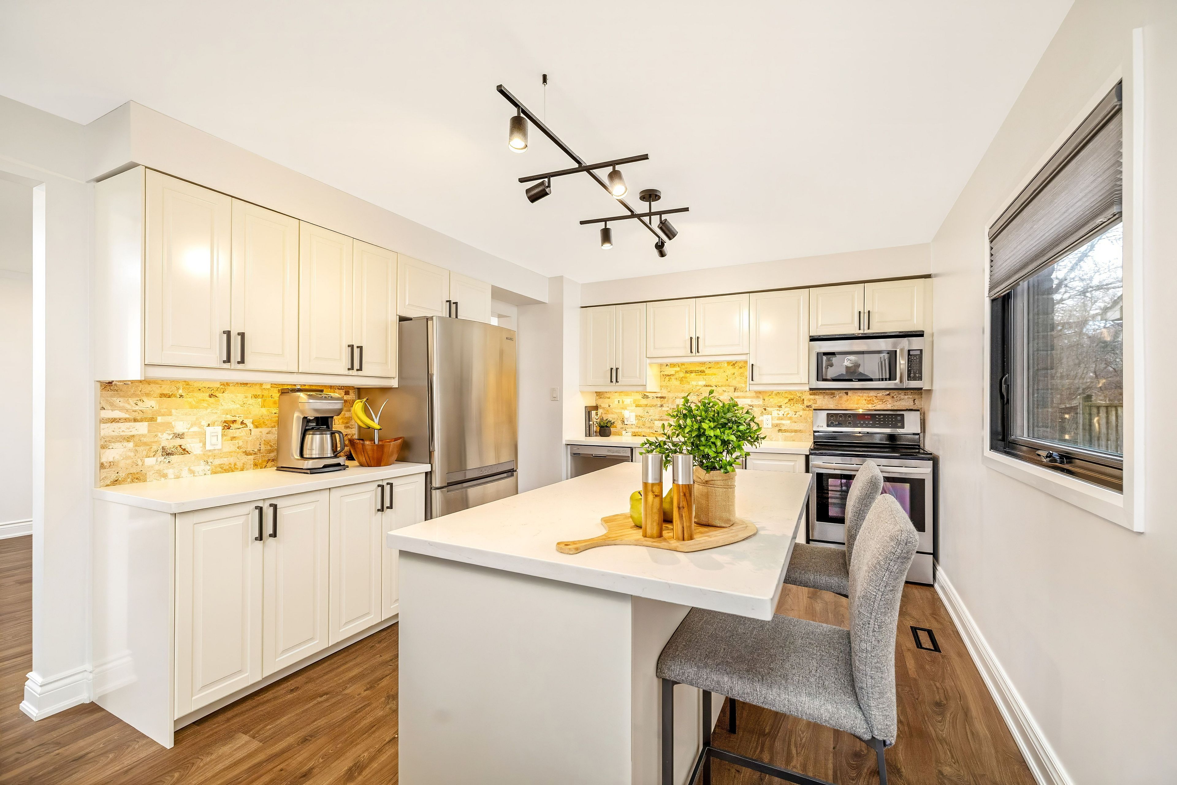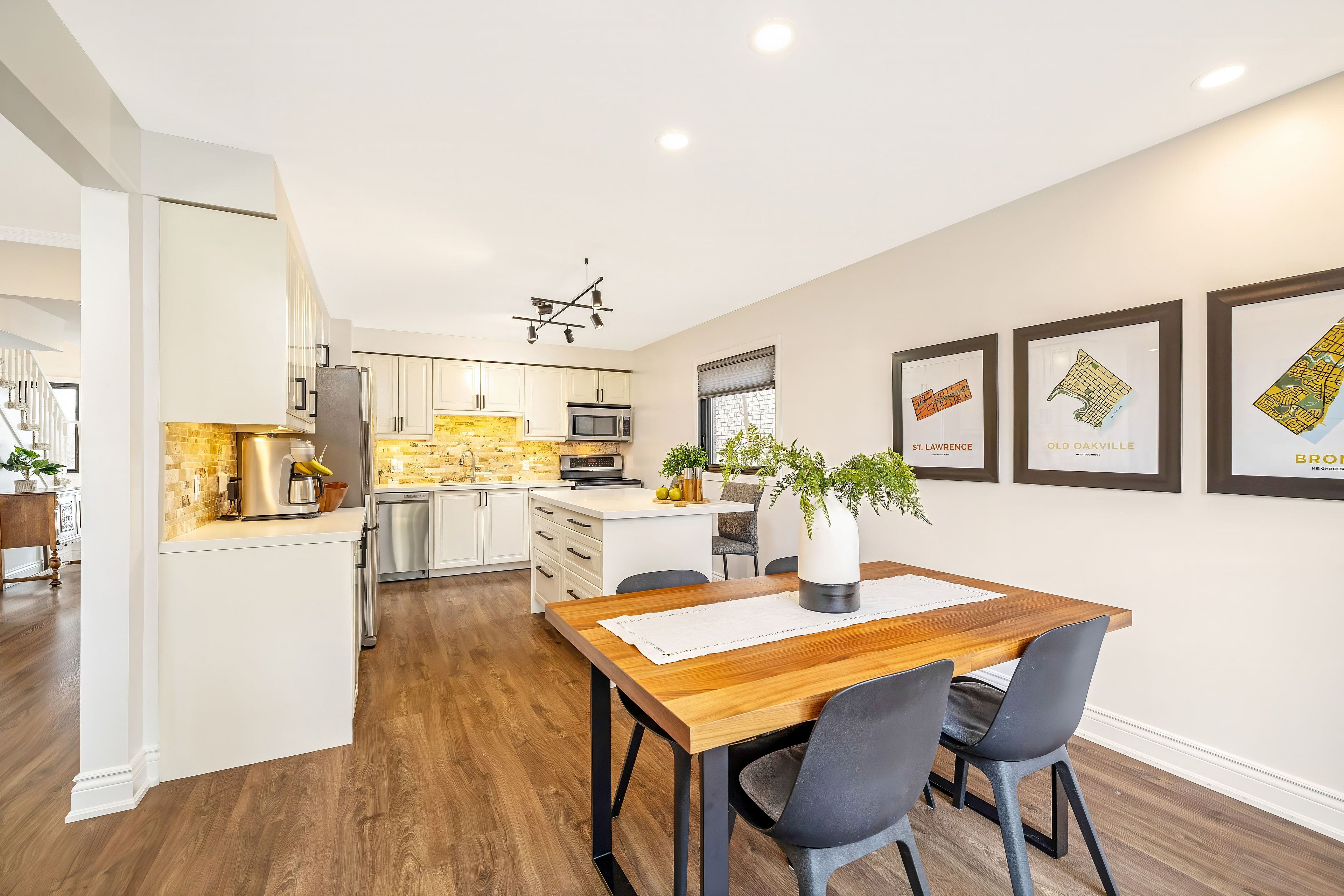 In a sought after pocket of Oakville, this beautifully maintained family home backs directly onto Bronte Creek, offering a rare ravine setting with peaceful views and exceptional privacy. Set on a premium pie shaped lot with an impressive 47 ft rear width, this home blends nature, comfort, and thoughtful upgrades in one inviting package. Enjoy direct access to a fantastic trail system right from your backyard, perfect for walking and cycling, while being just minutes to Bronte Harbour, known for its waterfront charm and great local restaurants. The updated kitchen is both stylish and functional, featuring quartz countertops, custom cabinetry, a centre island, stainless steel appliances, a stone backsplash, and double sink. It opens seamlessly into the bright family room, where hardwood flooring, pot lights, crown moulding, and a cozy wood burning fireplace create a warm and inviting space, all overlooking the landscaped backyard. The main level also offers a spacious breakfast area with hardwood flooring and an updated powder room, ideal for both everyday living and entertaining. Upstairs, the primary bedroom features a walk in closet and a 3 piece ensuite, along with peaceful views of the fully fenced yard and surrounding greenery. Two additional bedrooms plus a versatile fourth bedroom provide flexible space for a home office, nursery, or guest room. The fully refinished basement adds a bright and comfortable recreation room along with a dedicated laundry area, offering additional space for family living. Step outside to a beautifully landscaped backyard with perennial gardens, interlock patio, and gas barbecue hookup, perfect for entertaining or relaxing in a private natural setting. Freshly painted in 2023 with updates including furnace and AC (2022), windows and exterior doors including garage doors (2021), and professional landscaping from front to back. Close to Bronte Harbour, parks, shops, amenities, QEW and GO Transit.