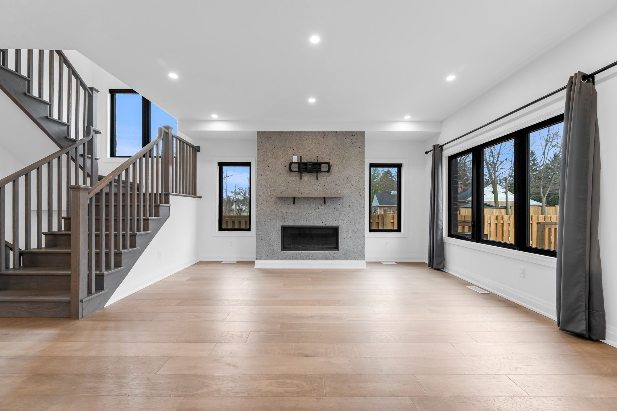 Custom-built luxury home on a large corner lot in Welland with over 3,000 sq. ft. of finished living space. Tons of upgrade hardwood floor throughtout, 200amp panel. Bright open-concept main floor featuring chef's kitchen with quartz counters, centre island, stainless steel appliances, spacious pantry, living room with fireplace, walkout to backyard, and main-floor office can be used as 4th bedroom. Spacious primary bedroom with double doors, 5-pc ensuite, and oversized walk-in closet. Two additional bedrooms share a 5-pc bath. Fully finished basement with open layout and 4-pc bath, offering potential for an extra bedroom etc. A perfect blend of style, space, and functionality-this home truly has it all.